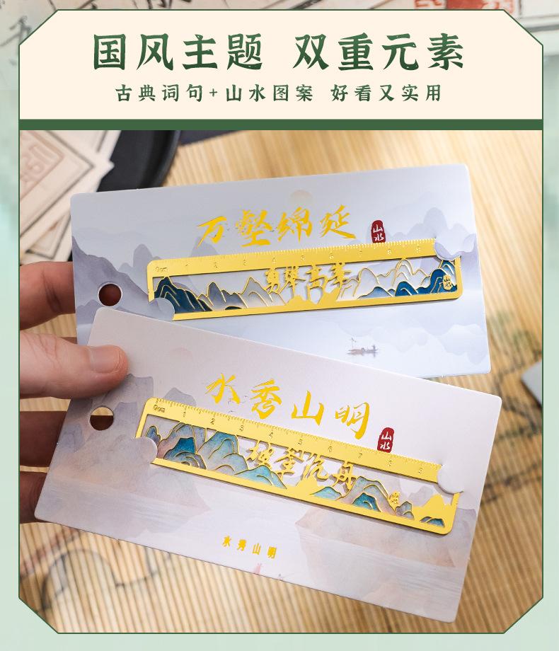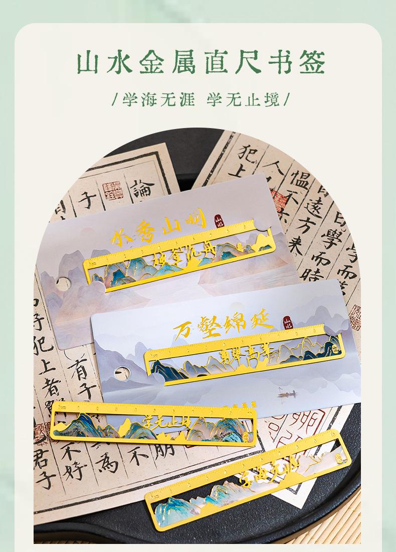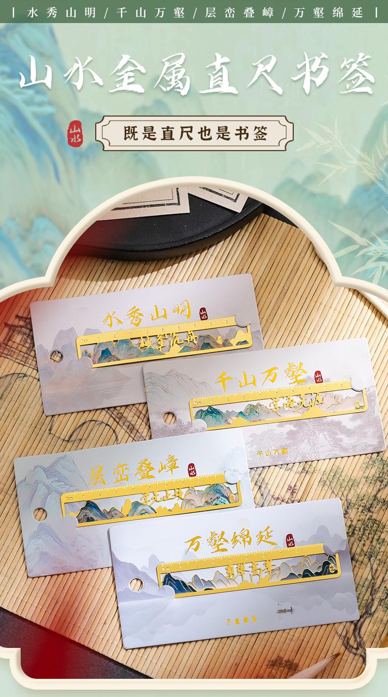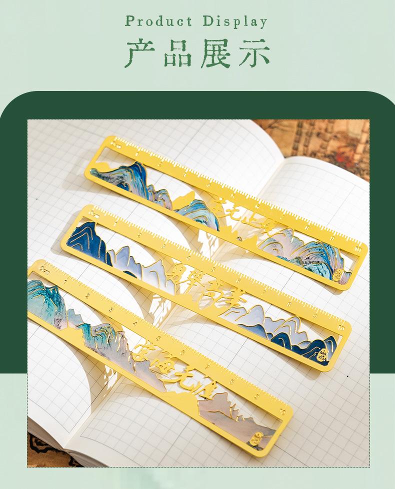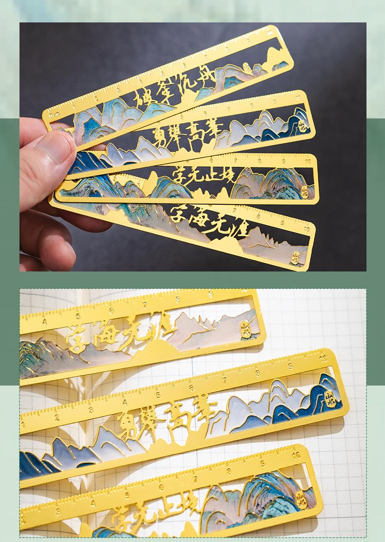 Qianli Jiangshan Pintura al Óleo Marcador de Metal Hueco Regalo de Apertura Escolar para Estudiantes Cumpleaños Regalo Marcador de Regla de Latón Wenchuang