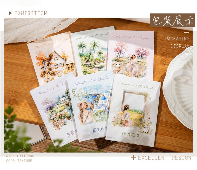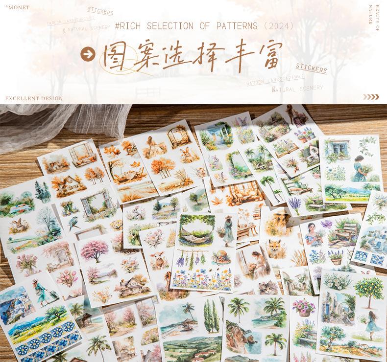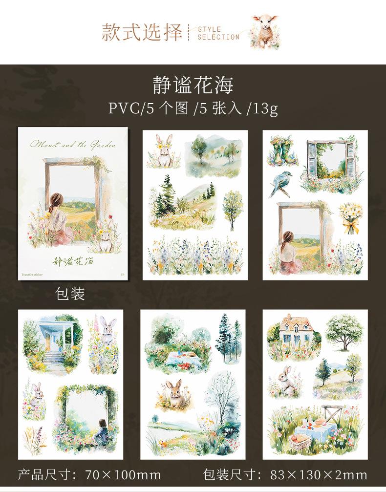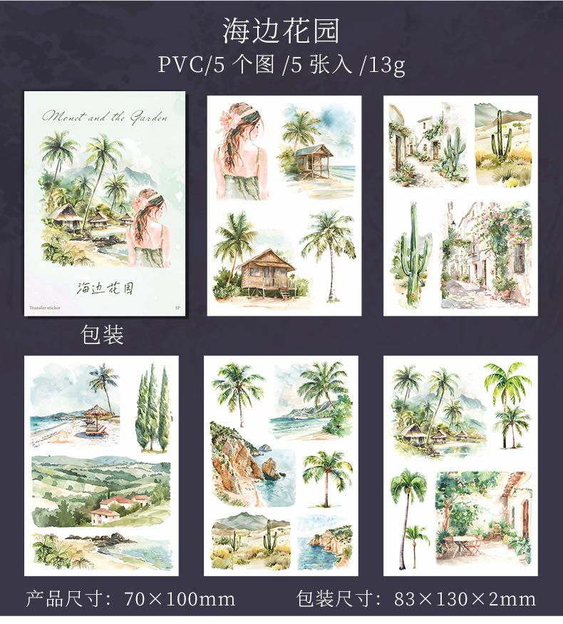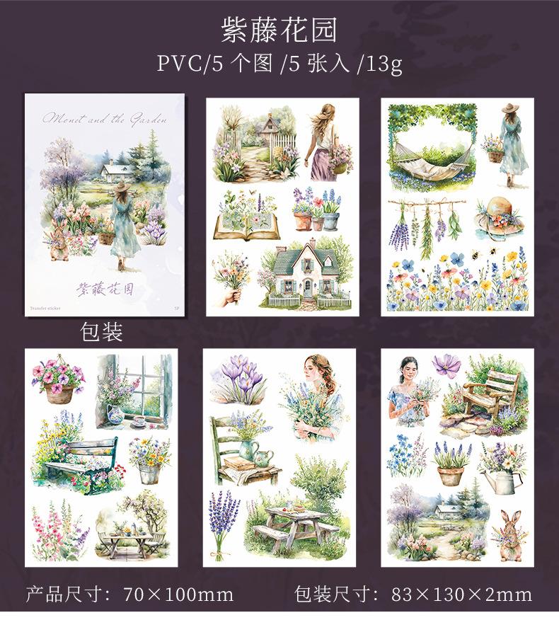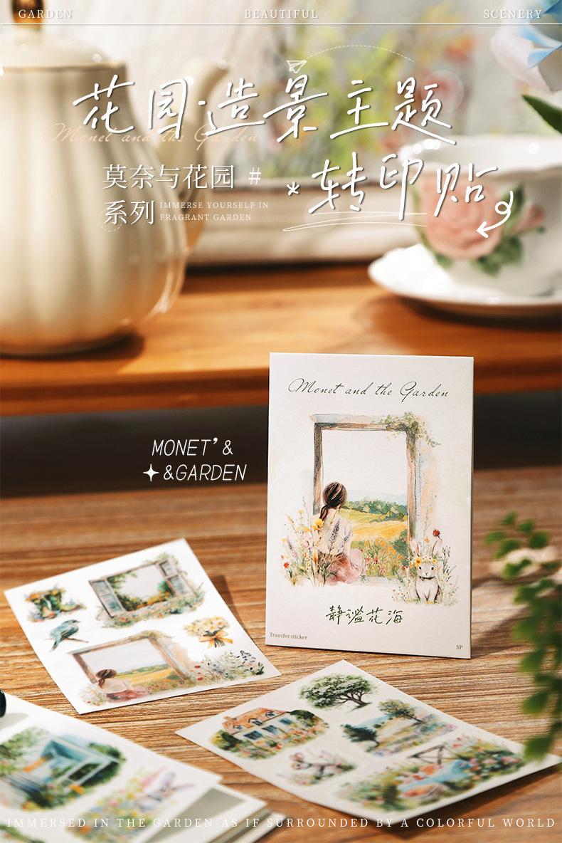 Pasta de transferencia con tema de paisaje de jardín de un hermoso día, serie Monet y jardín, material de collage de decoración de cuentas a mano