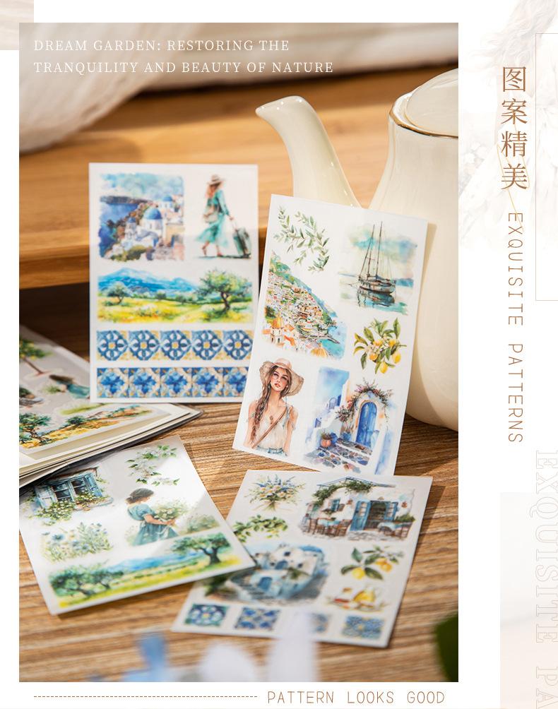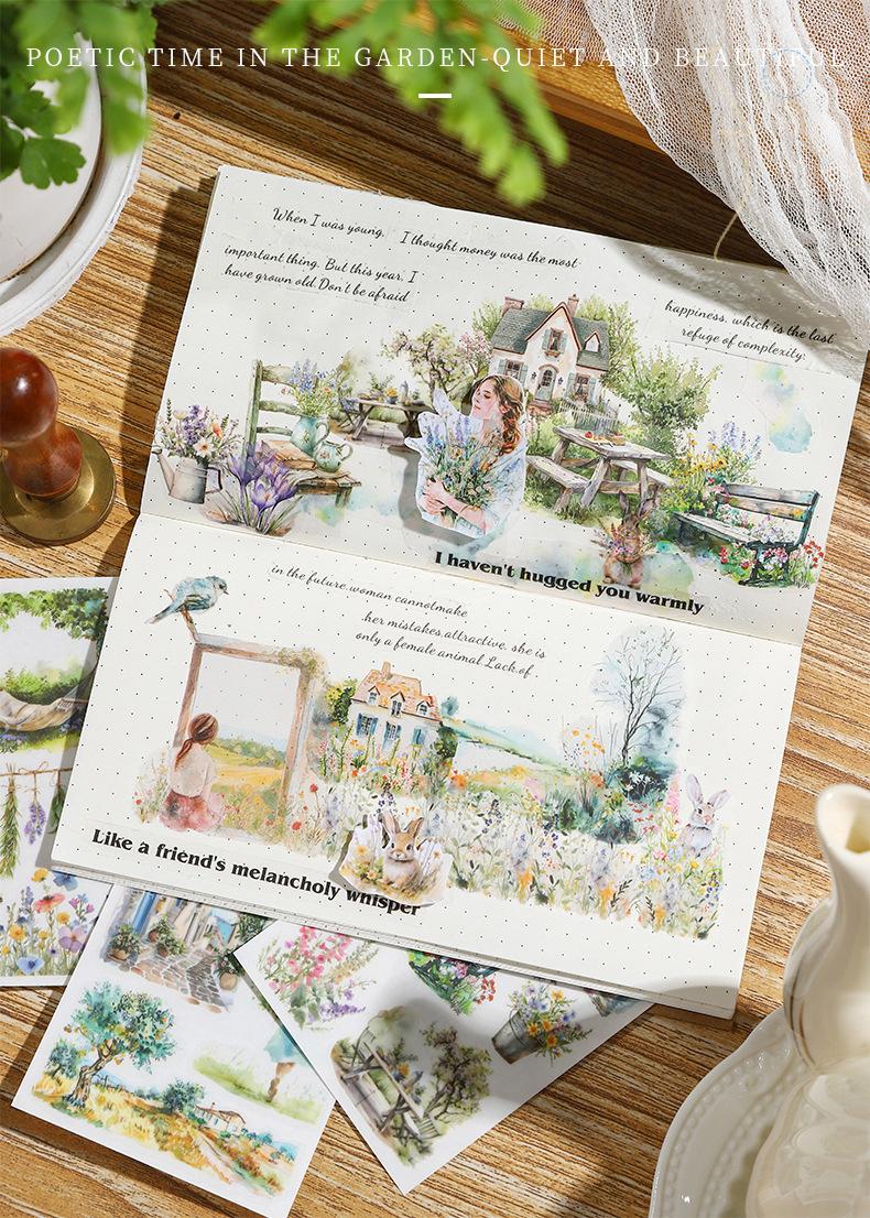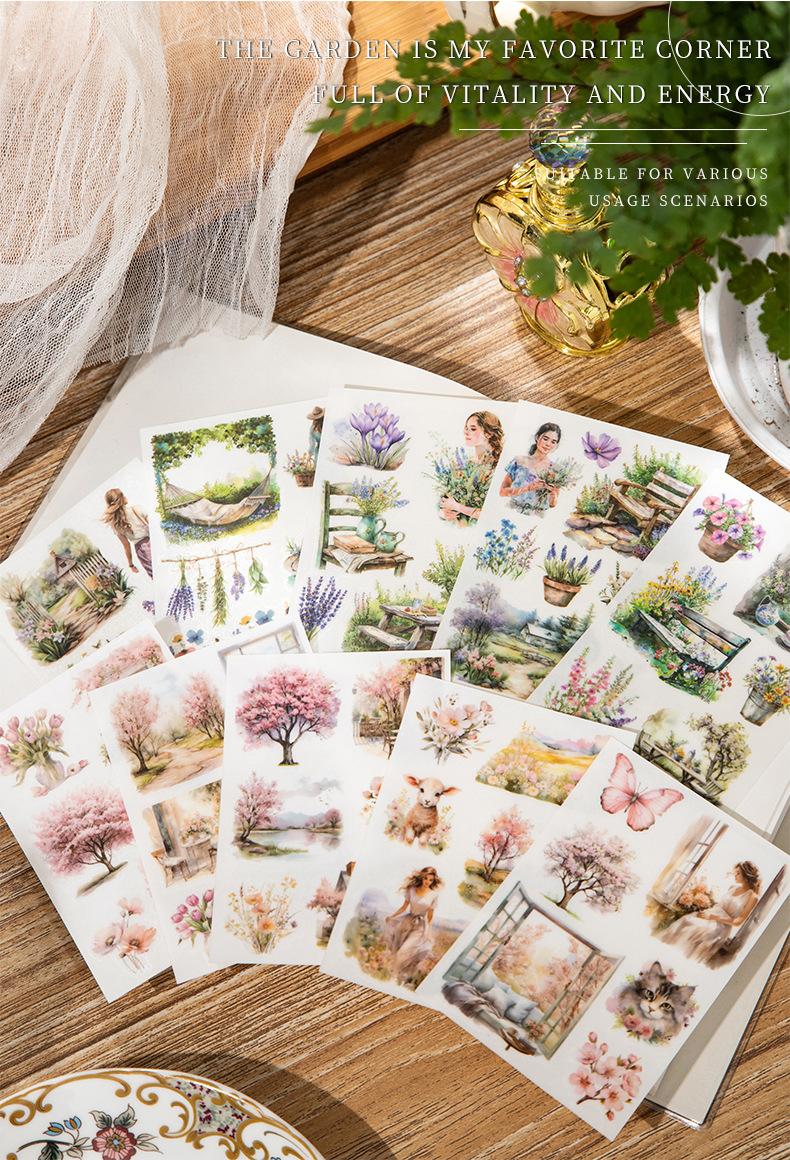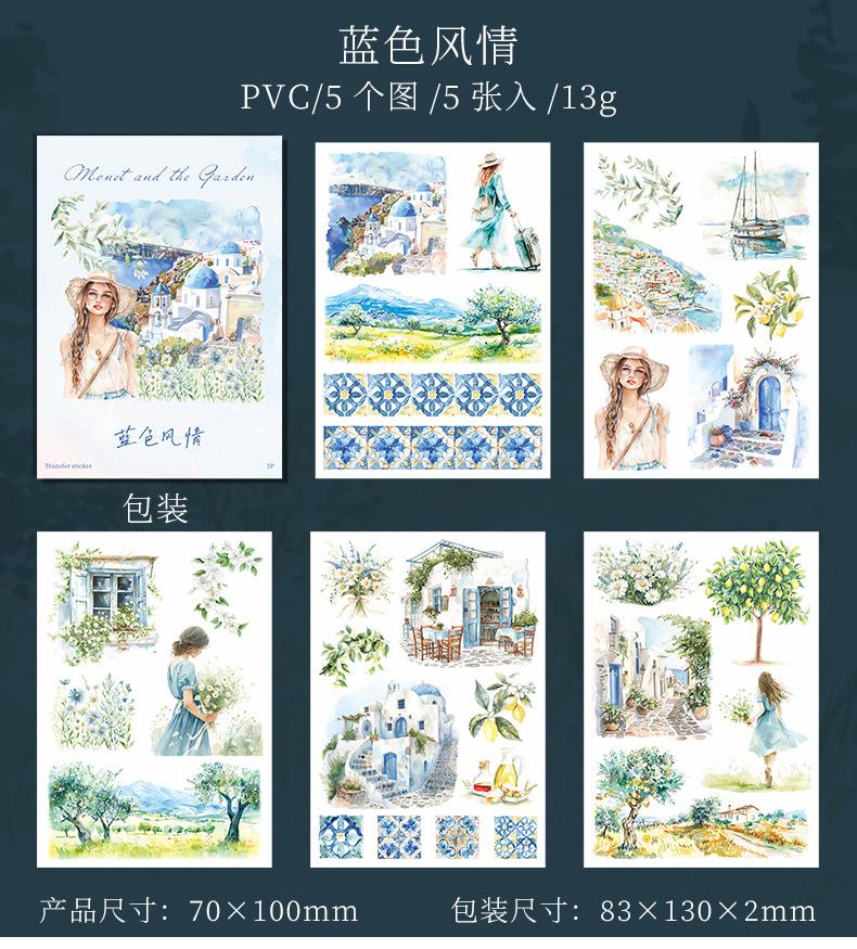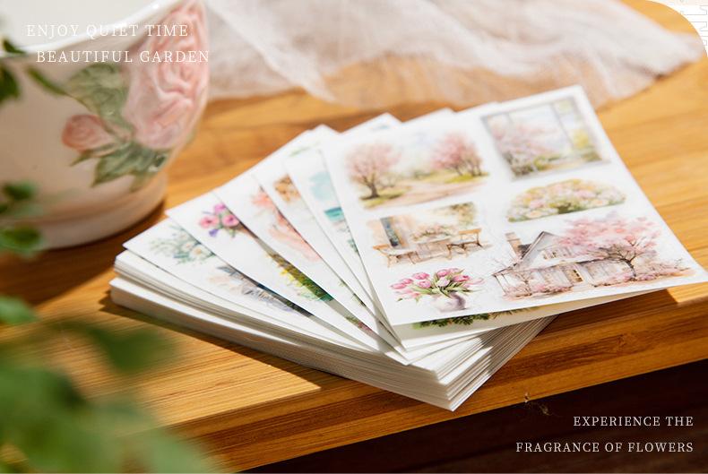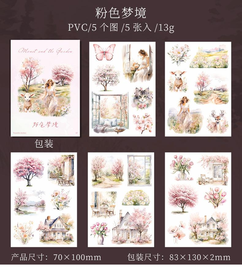 Pasta de transferencia con tema de paisaje de jardín de un hermoso día, serie Monet y jardín, material de collage de decoración de cuentas a mano