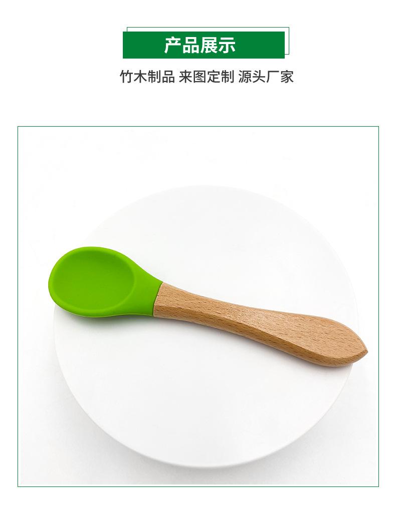 Cuchara de silicona para niños, cuchara con mango de madera, cuchara suave de silicona, cuchara para comida de bebé, cuchara para niños, cuchara con mango de madera