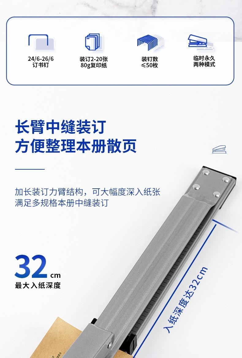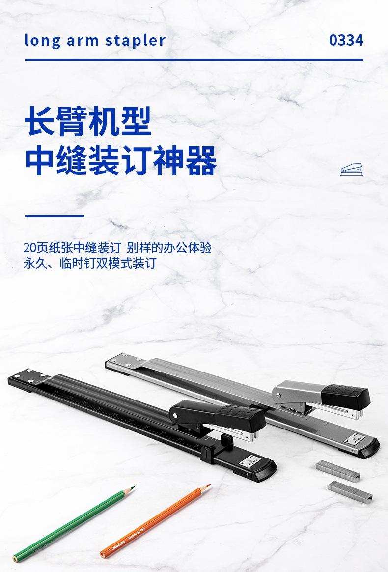 Deli 0334 grapadora estándar de brazo largo grapadora especial para grapado central A3 grapadora grande extendida de caballete