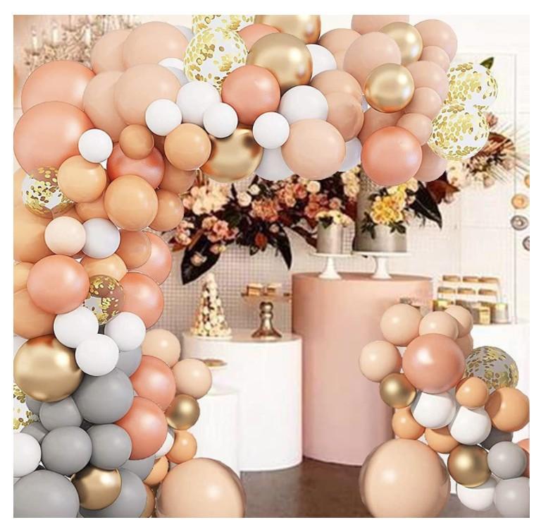 Kit de arco de guirnalda de globos de flor de durazno - 129 piezas Kit de arco de globos Globos de látex de confeti color durazno y gris para decoración de baby shower Cumpleaños Boda Fiesta