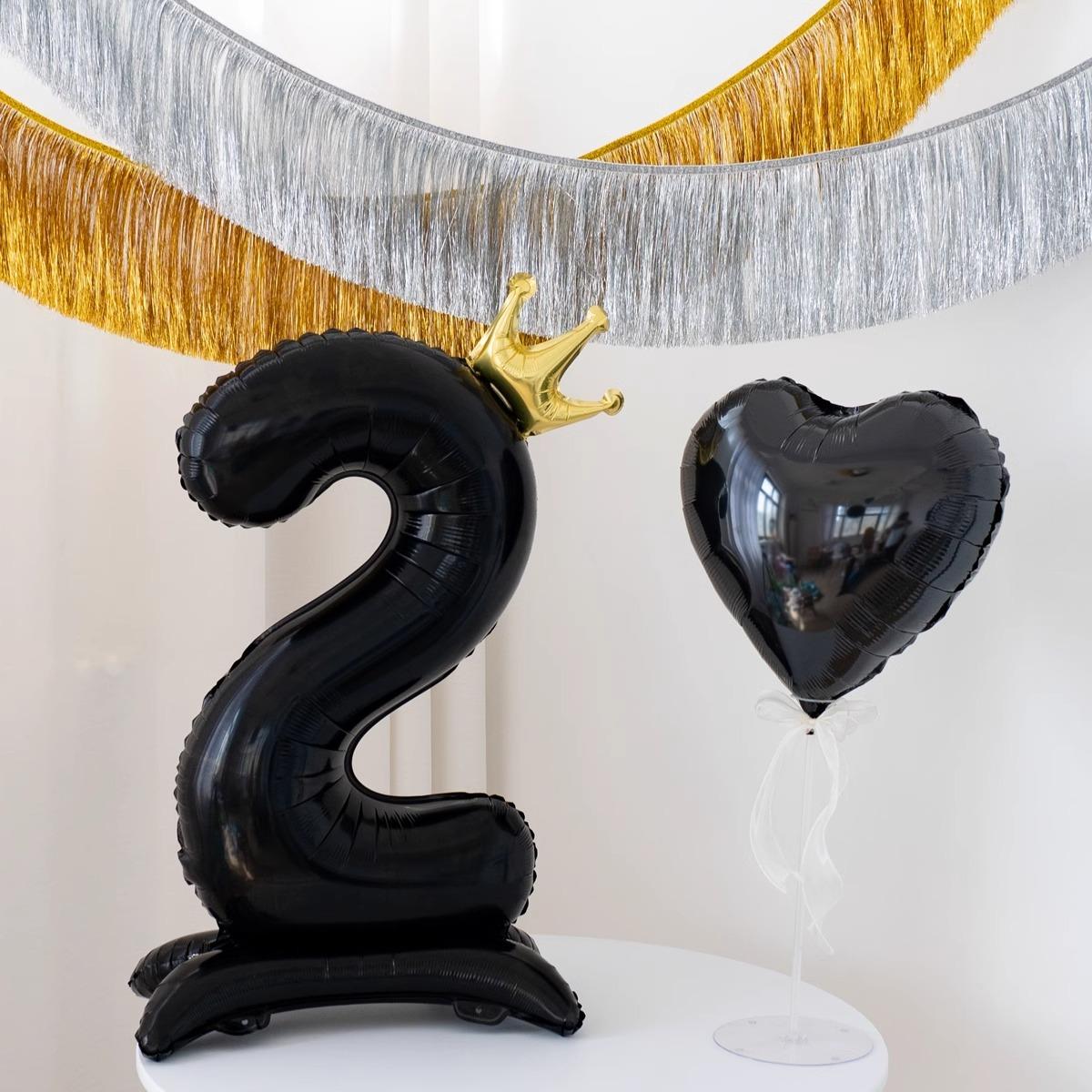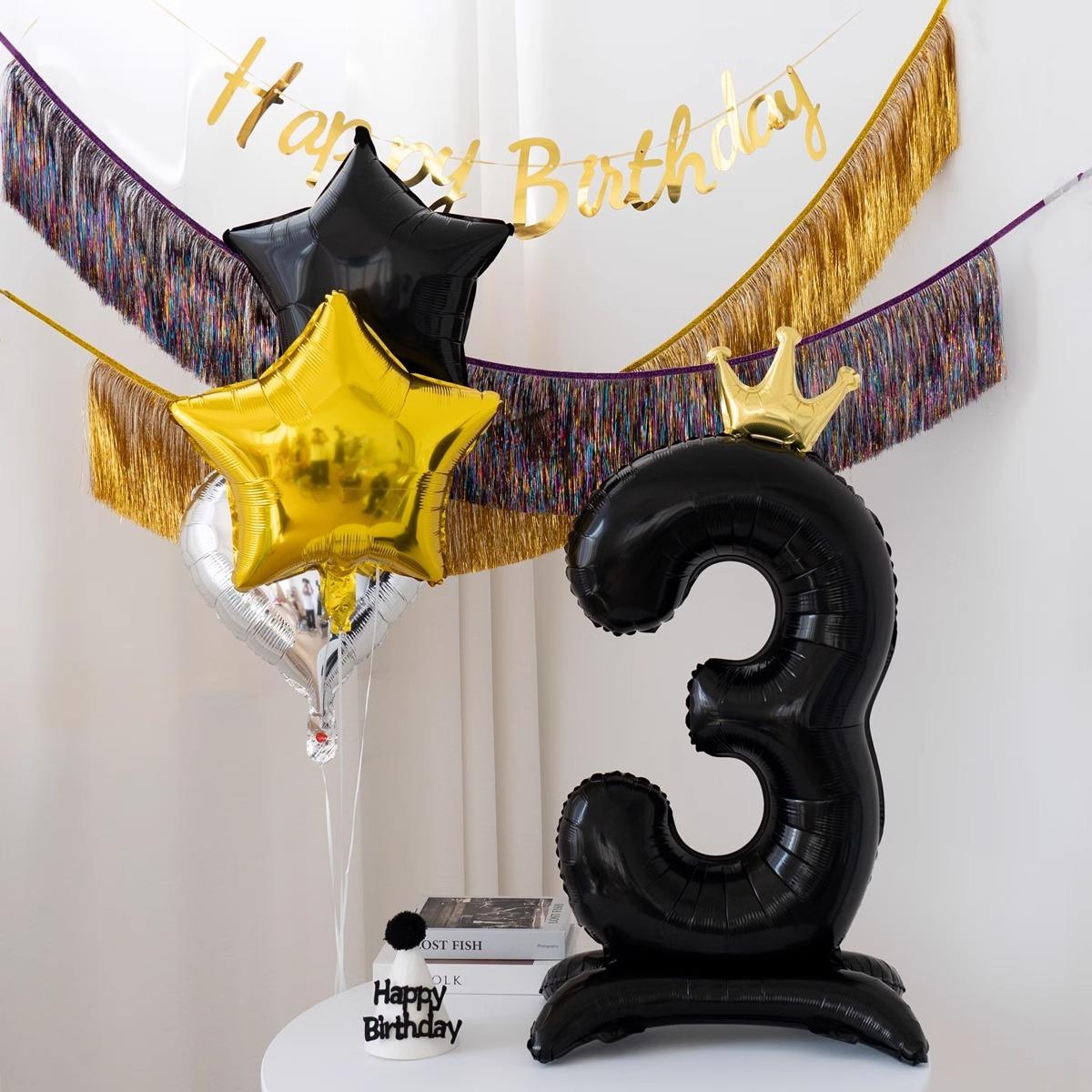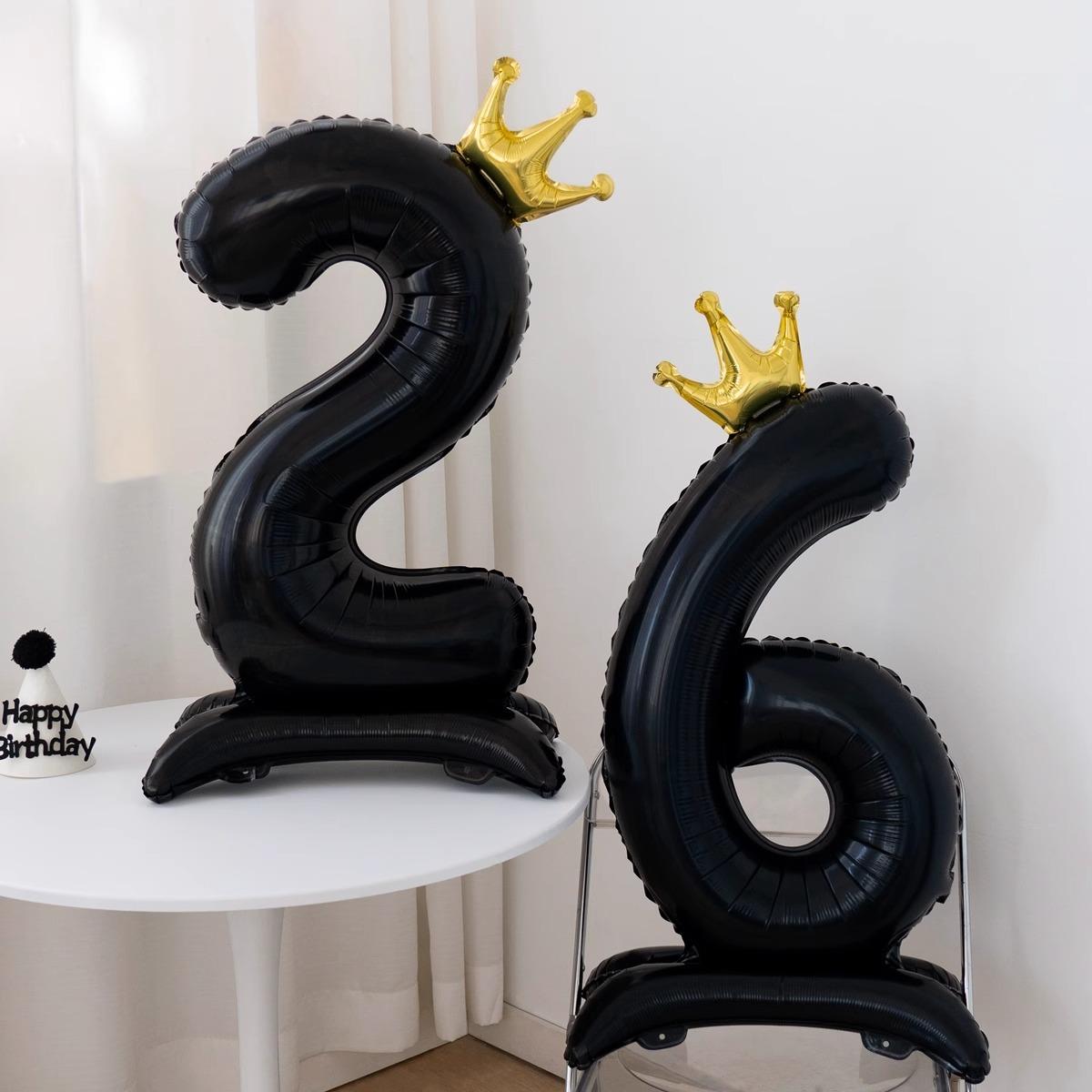 Globo digital de aluminio negro base de 40 pulgadas decoración de cumpleaños diseño de escena niños y niñas foto globo de un año