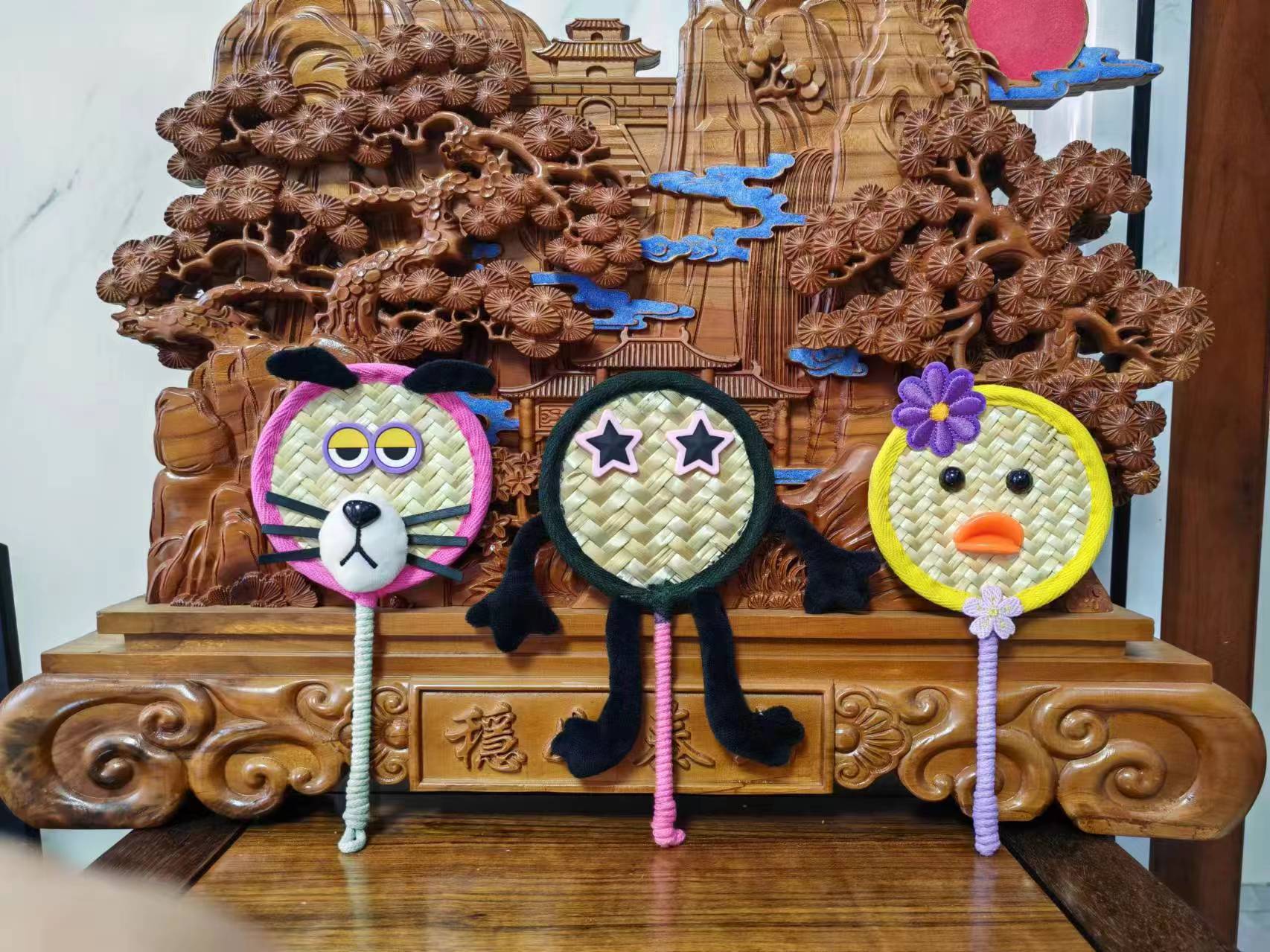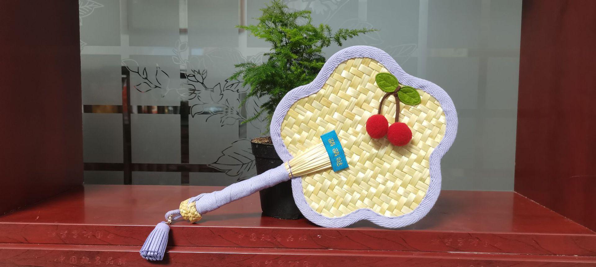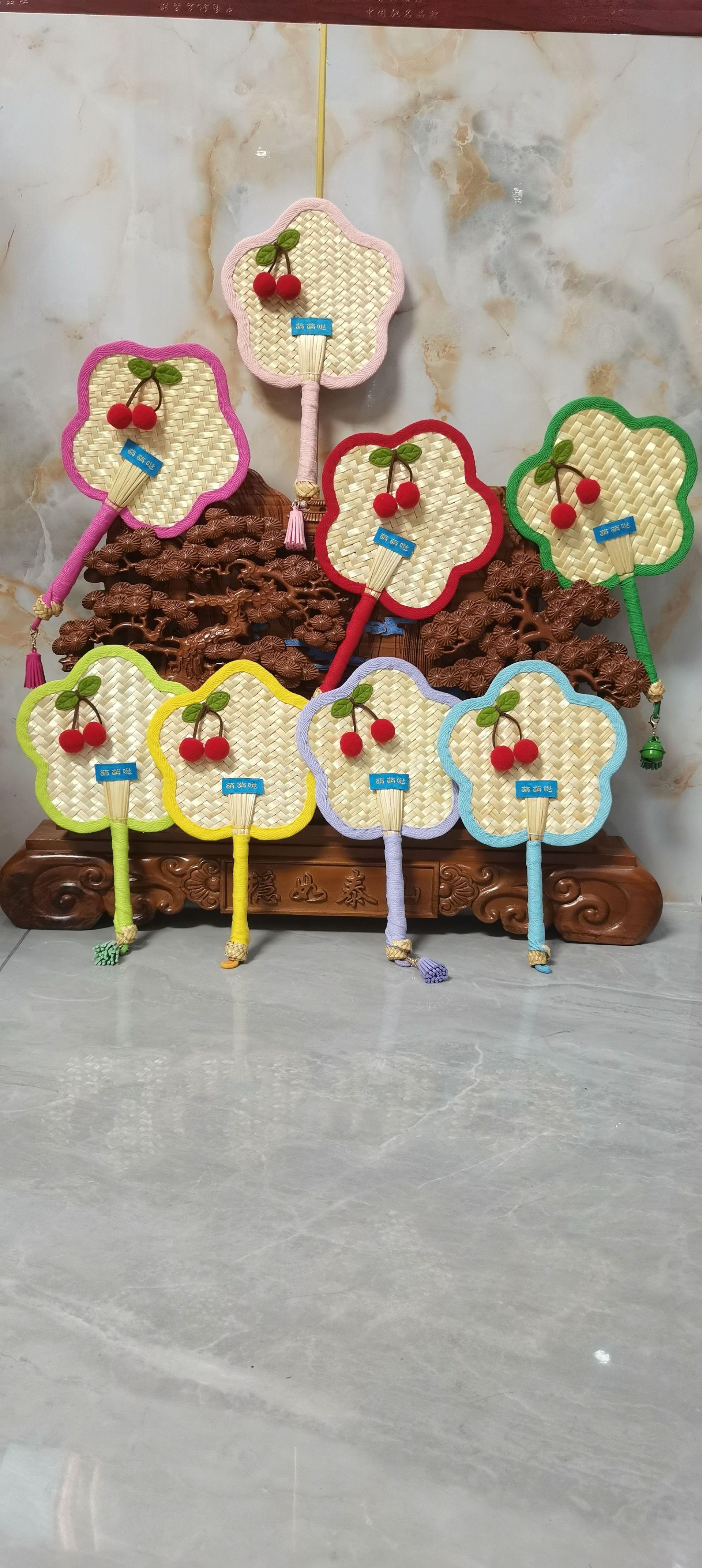 Abanico pequeño mini de paja de trigo hecho a mano tejido de paja de trigo abanico de mano abanico de cereza abanico para bebé verano lindo