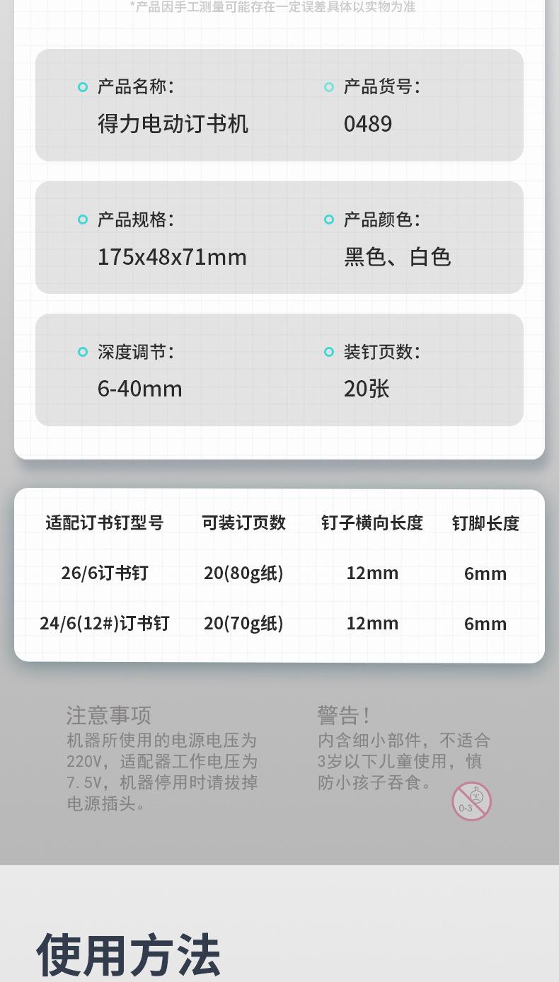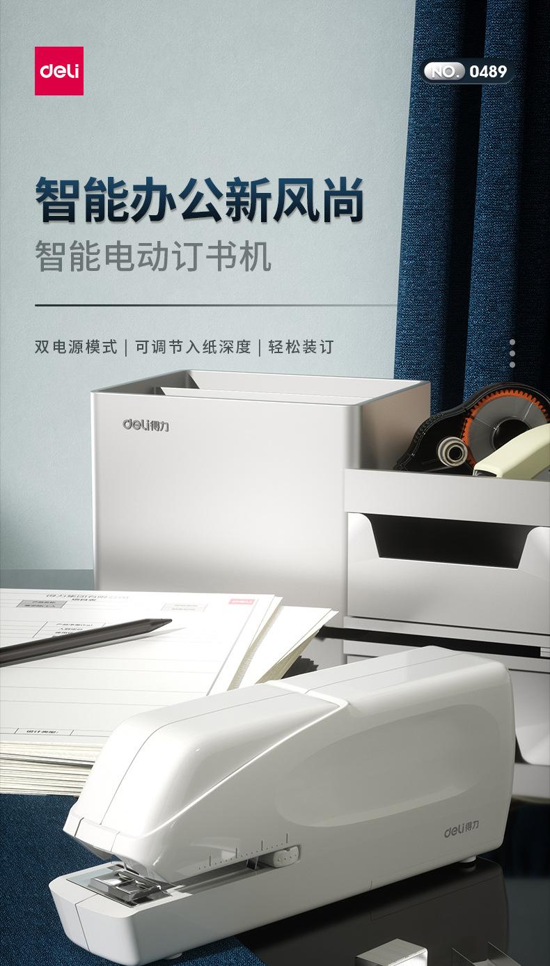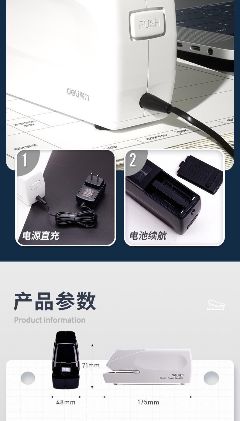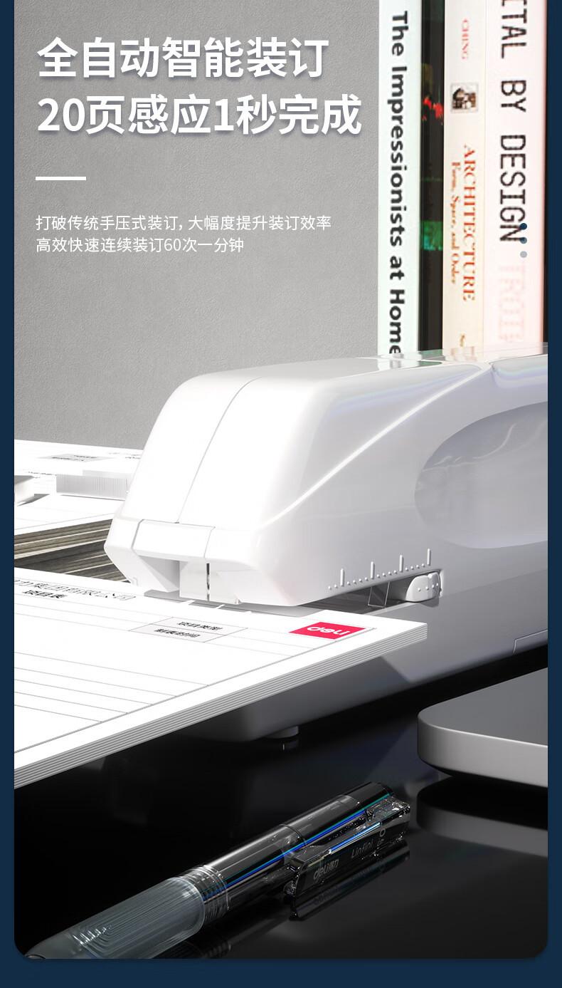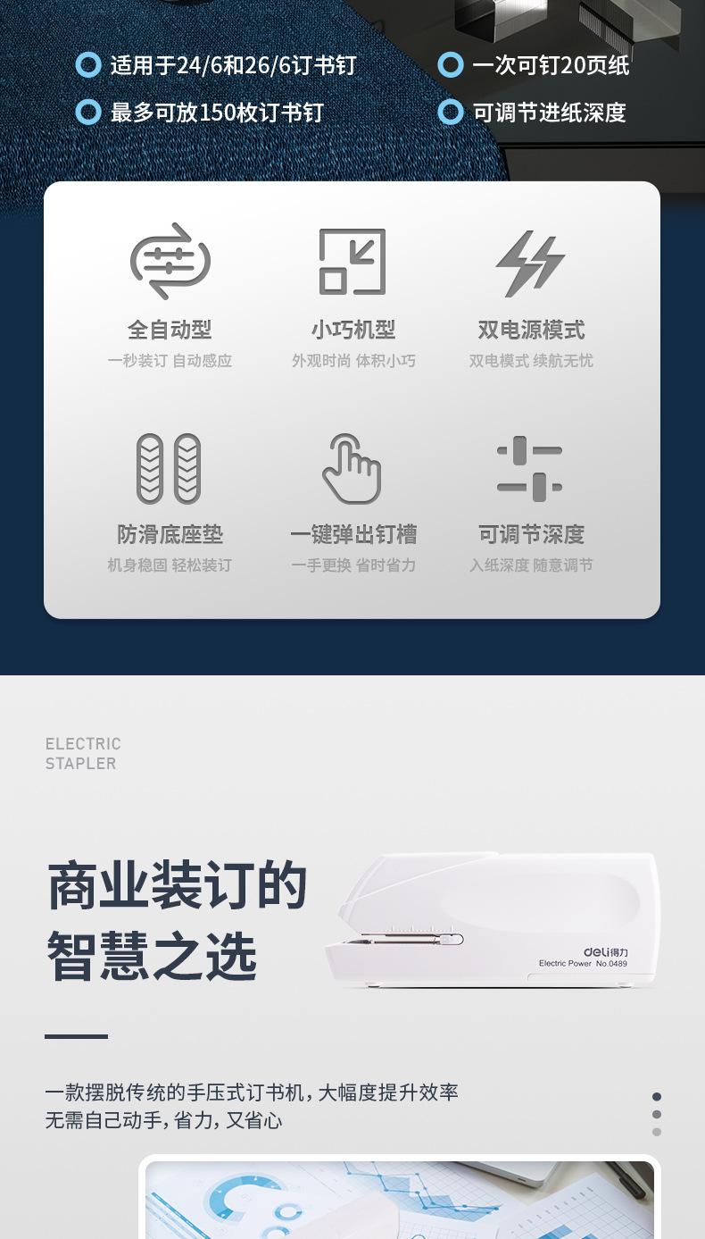 Deli 0489 Grapadora Eléctrica de Doble Fuente de Alimentación Grapadora de Encuadernación Automática Adaptada a Grapas 24/6