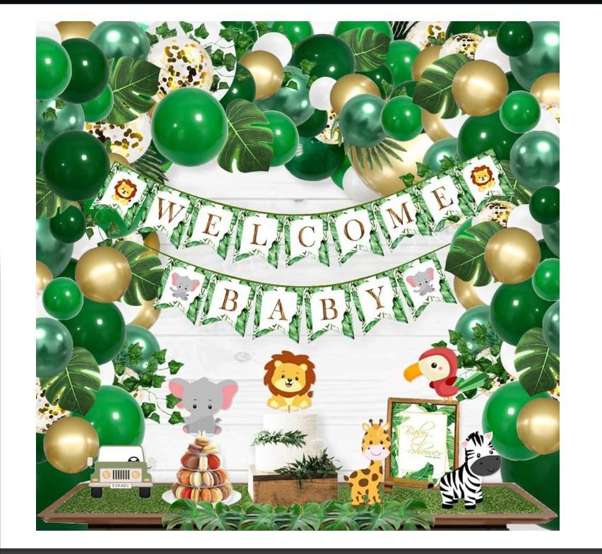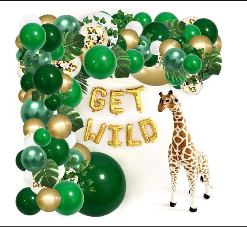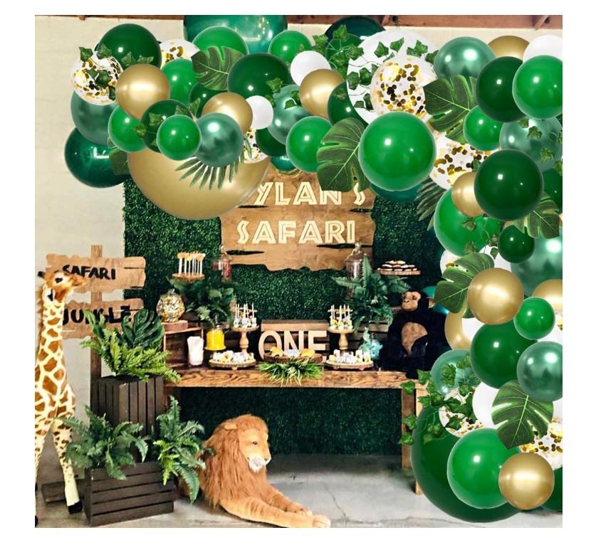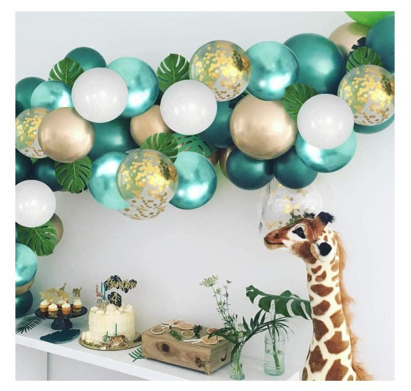 Una gran fiesta en la jungla está a punto de comenzar, ¡por eso diseñamos nuestras decoraciones para fiestas en la jungla para que puedas celebrar tu fiesta de forma mágica! Con una combinación de globos de látex blanco y verde, globos dorados metalizados y hojas de palma, tendrás justo lo que necesitas para crear un look completo y fabuloso para tu fiesta en la jungla.