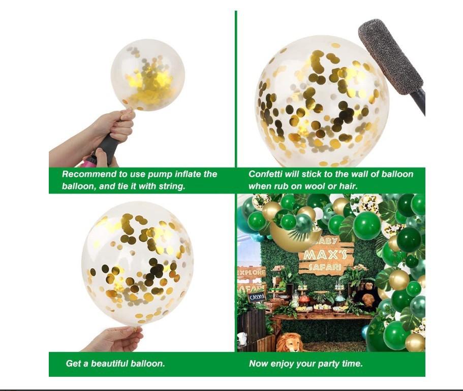 Globos de 30 x 12 pulgadas (aprox. 76,2 x 30,5 cm) (5 globos de confeti dorados, 5 dorados metálicos, 5 verdes, 10 verdes oscuros, 5 blancos);