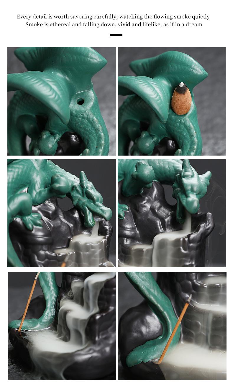 Quemador de aromaterapia con reflujo de cerámica transfronterizo, adornos artesanales de Amazon, quemador de incienso con reflujo de sándalo de pterosaurio creativo europeo y americano.