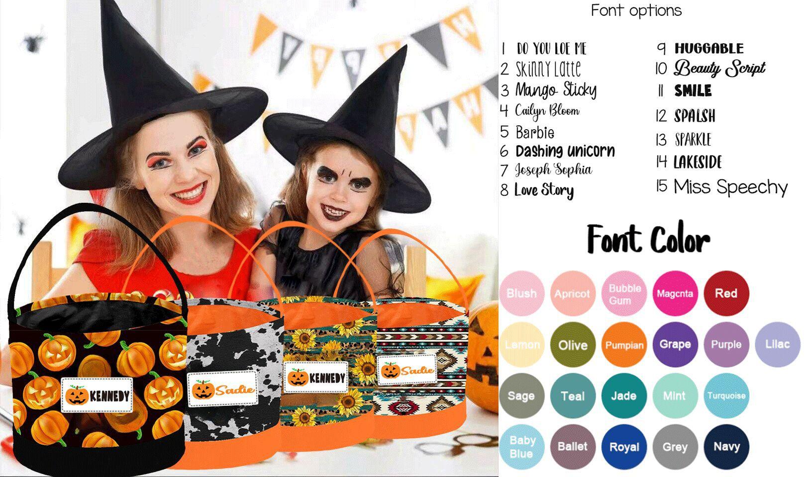 One Piece Personalizado Transfronterizo Nueva Decoración de Halloween Suministros para Fiesta Bolsa de Barril Estampada Lona Cesta de Dulces Halloween
