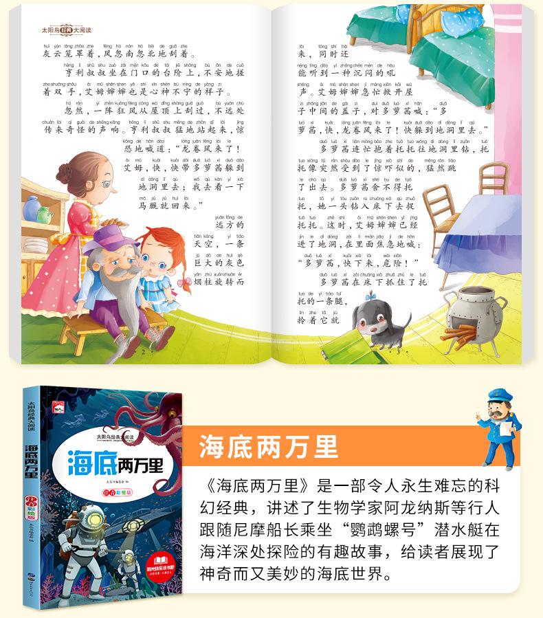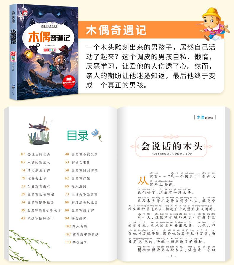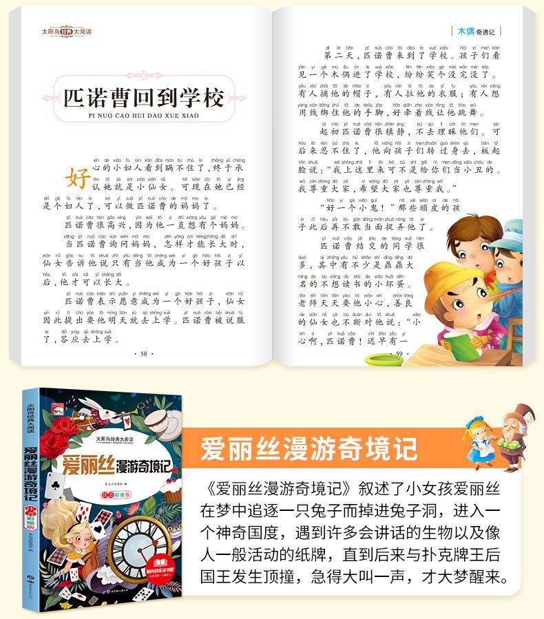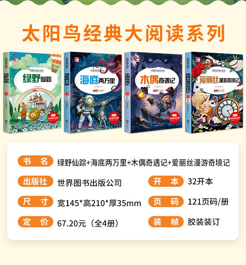 Wizard of Oz, Alice's Adventures in Wonderland, 20,000 miles under the sea, Pinocchio