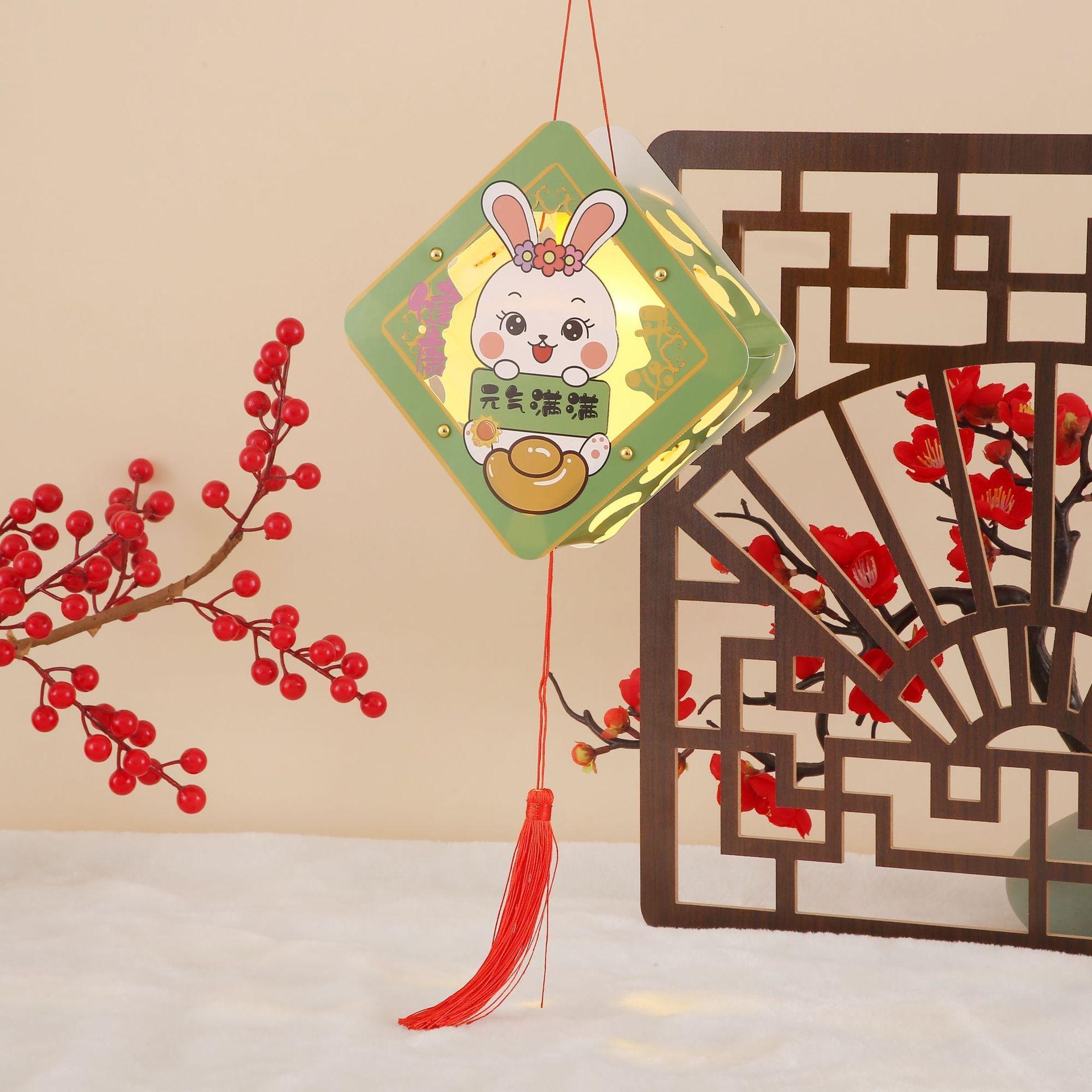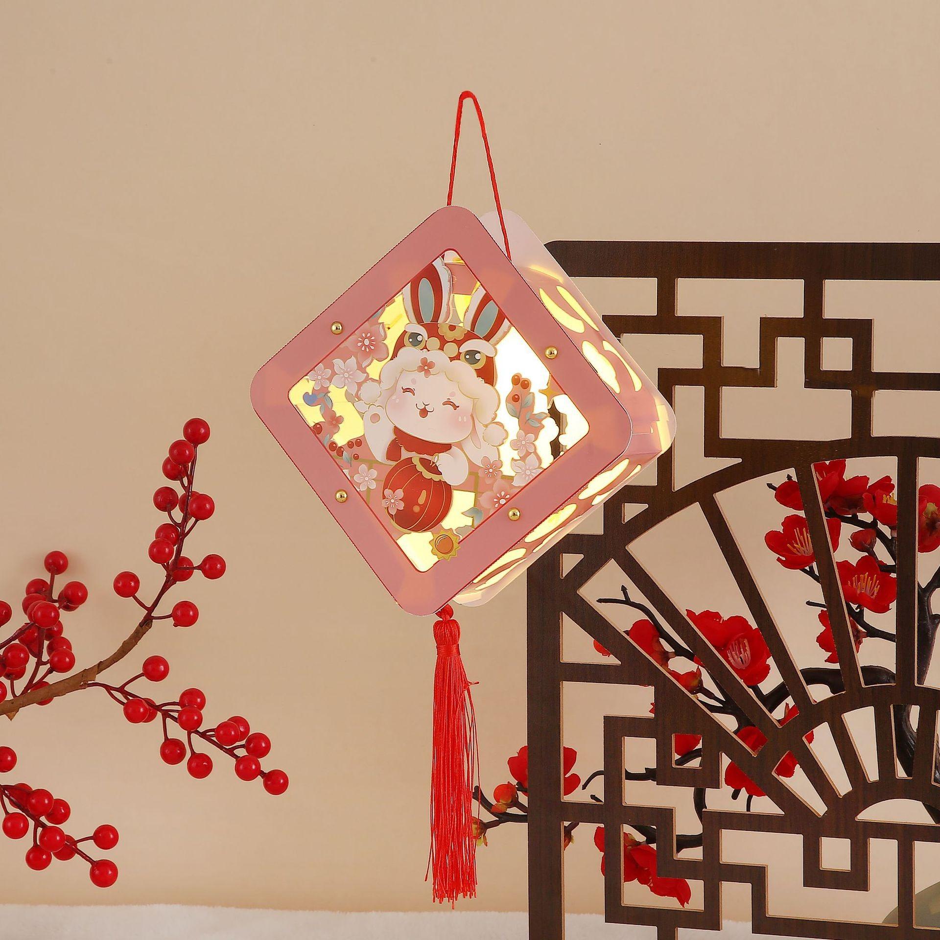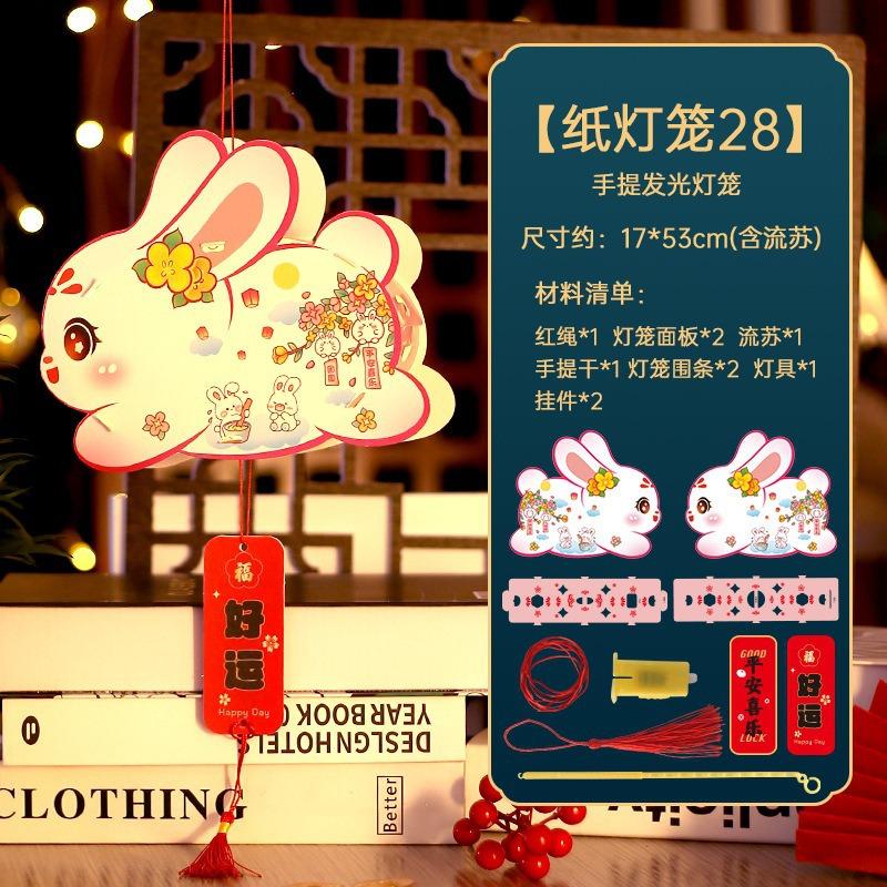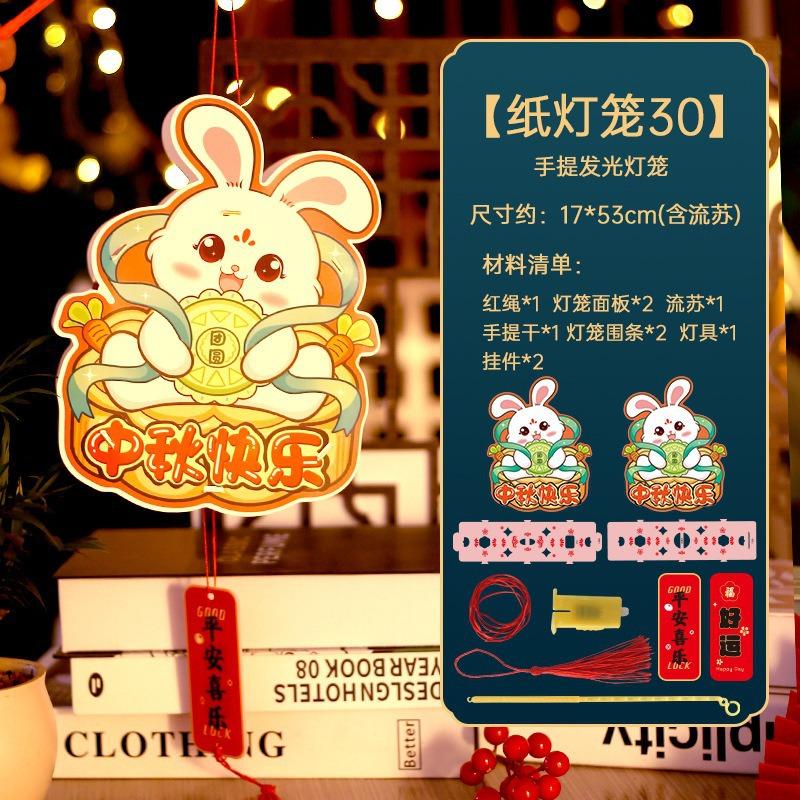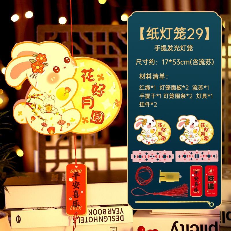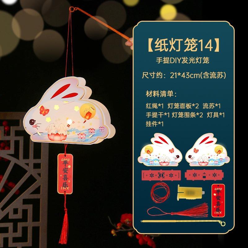 Linterna del Festival del Medio Otoño 2024, linterna de conejo de dibujos animados, portátil para niños, hecha a mano, bolsa de material de bricolaje para jardín de infantes