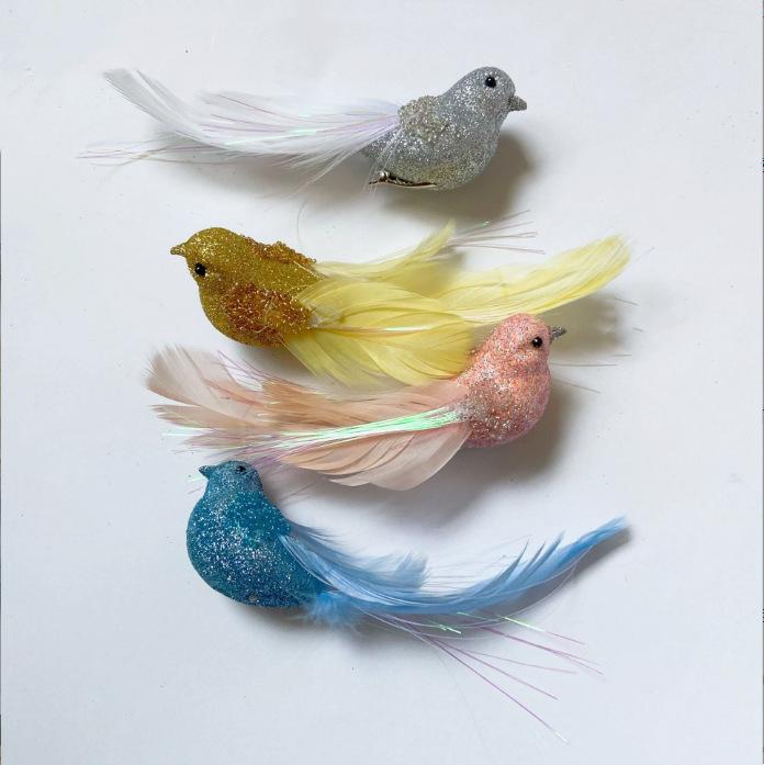 Adornos navideños con plumas de colores transfronterizos, simulación de aves, decoración para árboles de Navidad