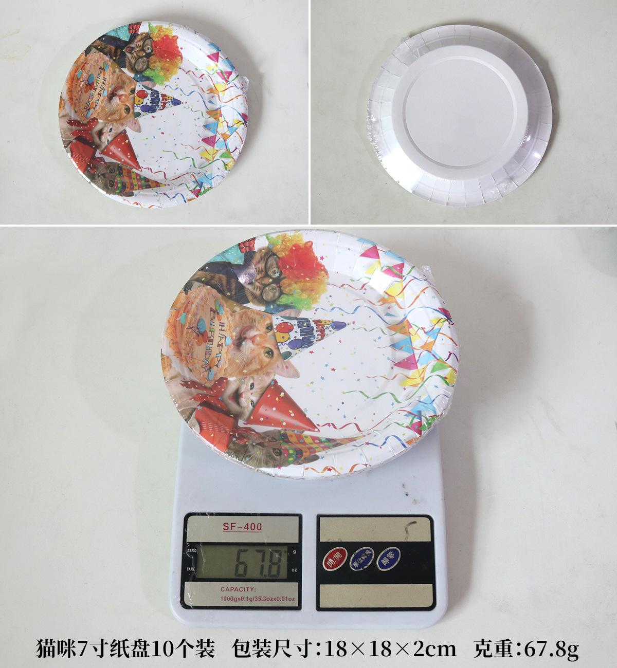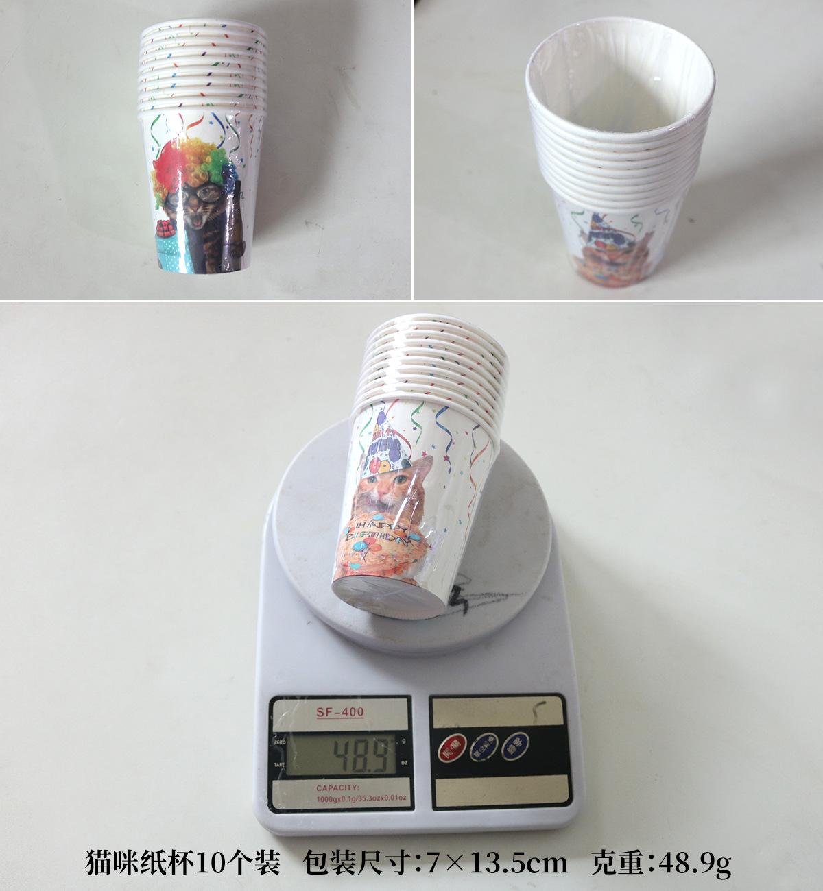 peso:10 vasos de papel, aproximadamente 50g 10 platos de papel de 7 pulgadas, aproximadamente 70gpapel de 9 pulgadaslámina10 piezas, alrededor de 110g; 10 piezas de cuchillos, alrededor de 30g; 10 piezas de tenedores, alrededor de 35g; 10 piezas de cucharas, alrededor de 35g