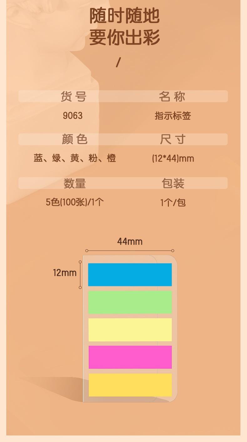 Etiqueta indicadora de película fluorescente Deli 9063 (5 a todo color) Pasta de clasificación de conveniencia Post