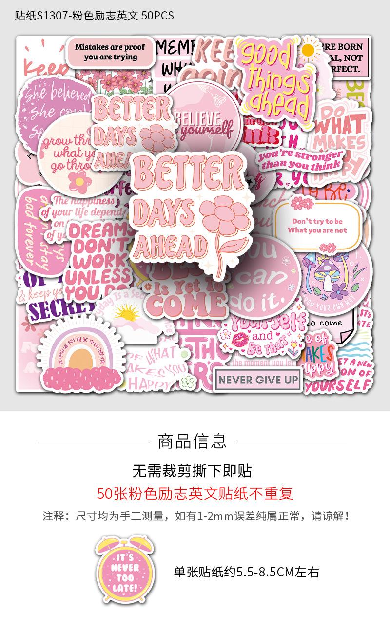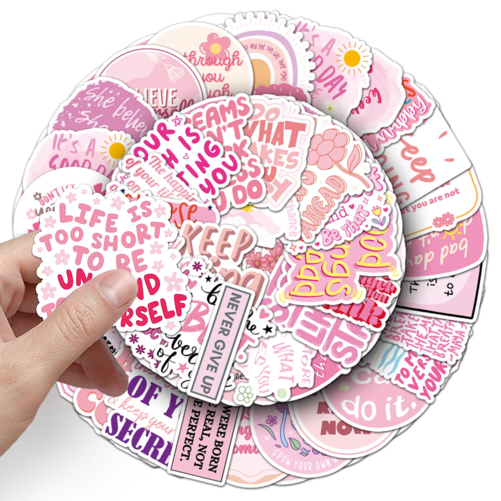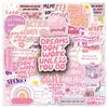 50 pegatinas rosas inspiradoras de grafiti inglés, frases personalizadas de dibujos animados transfronterizos, pegatinas decorativas para maletas y fundas de teléfono.