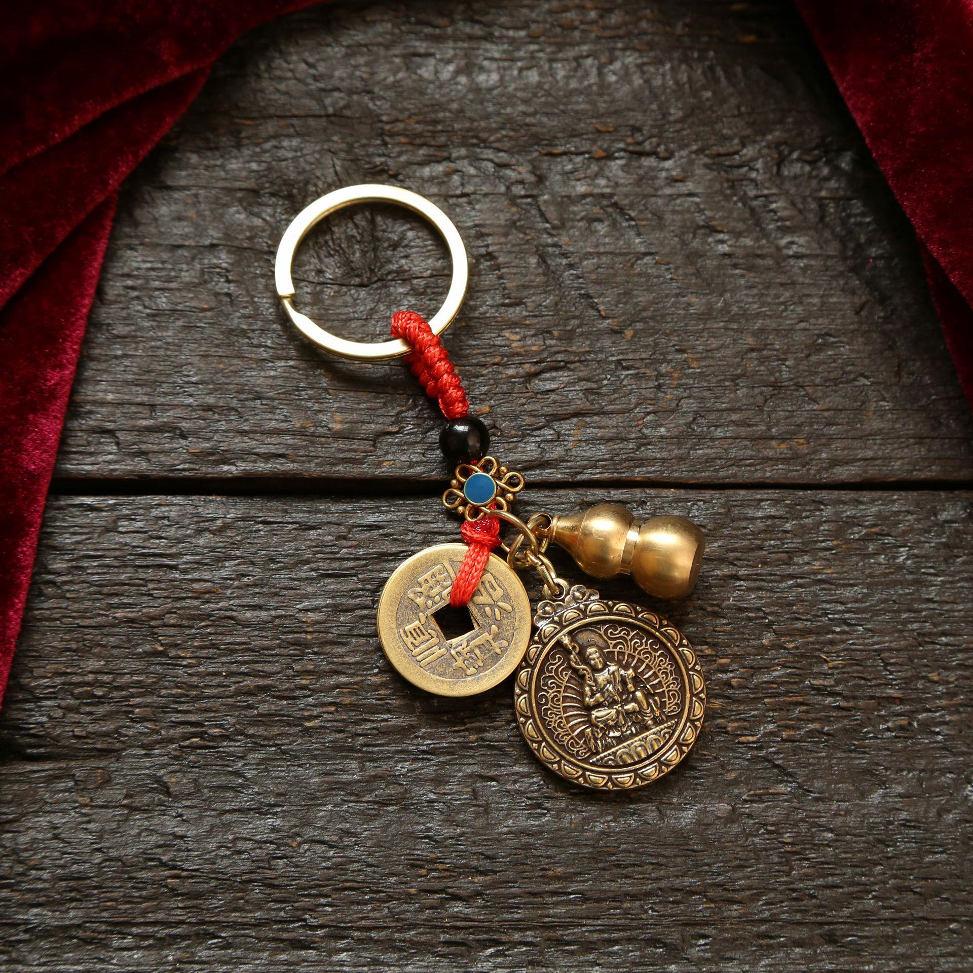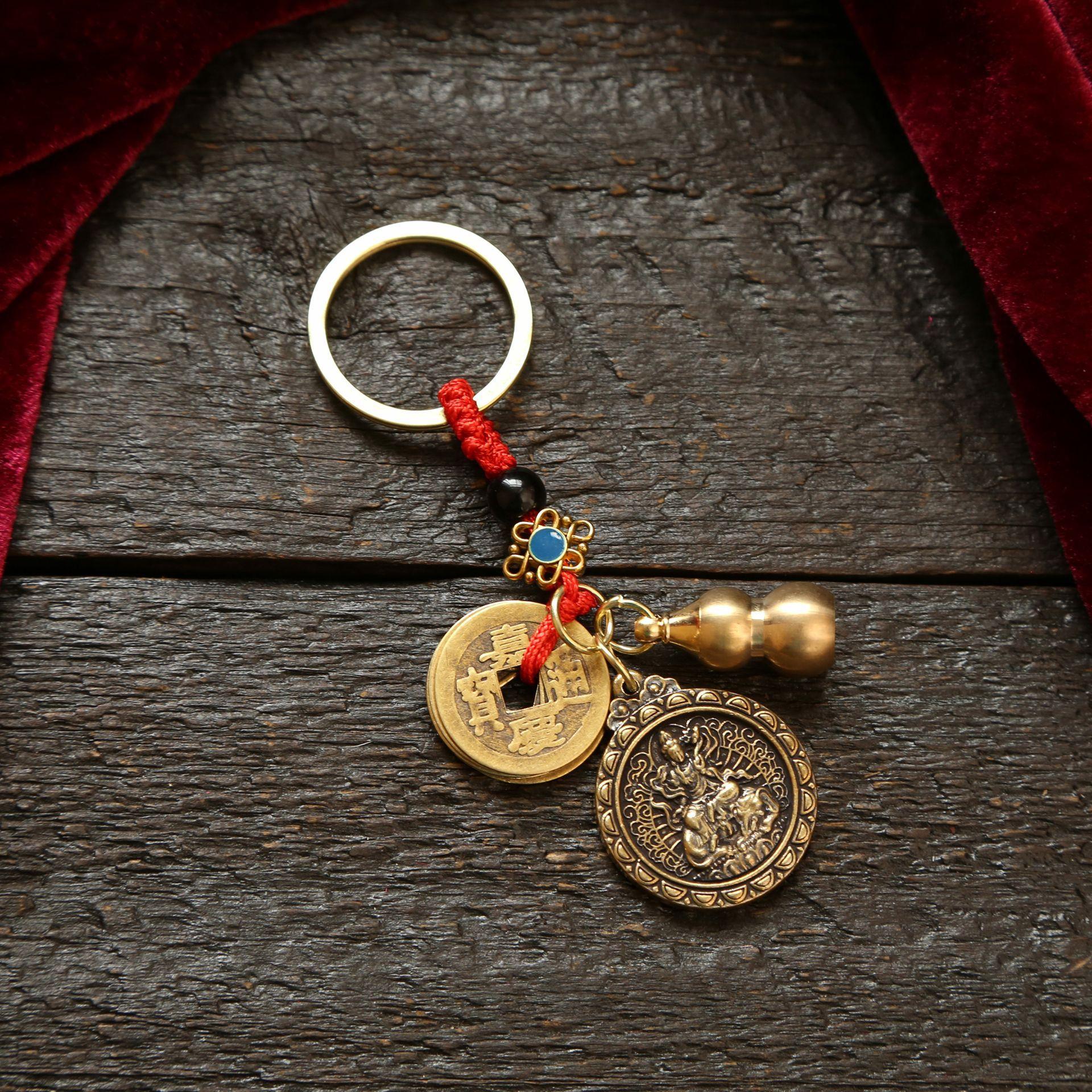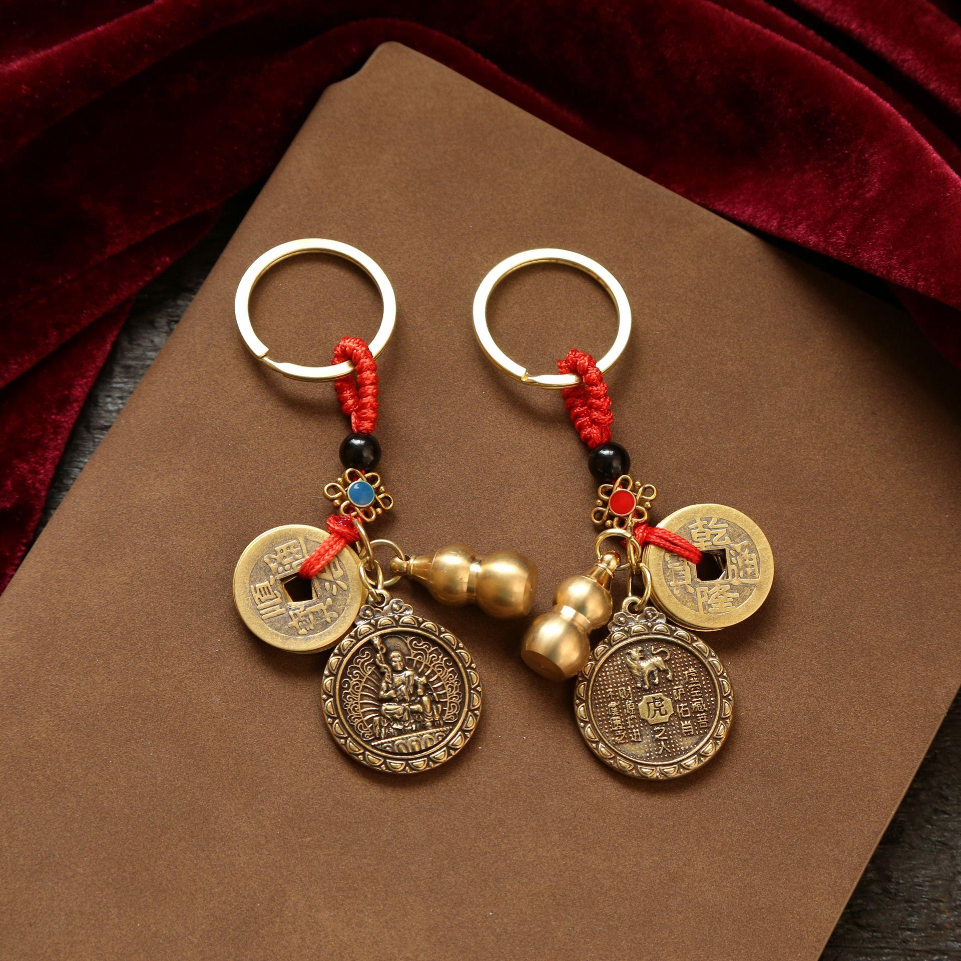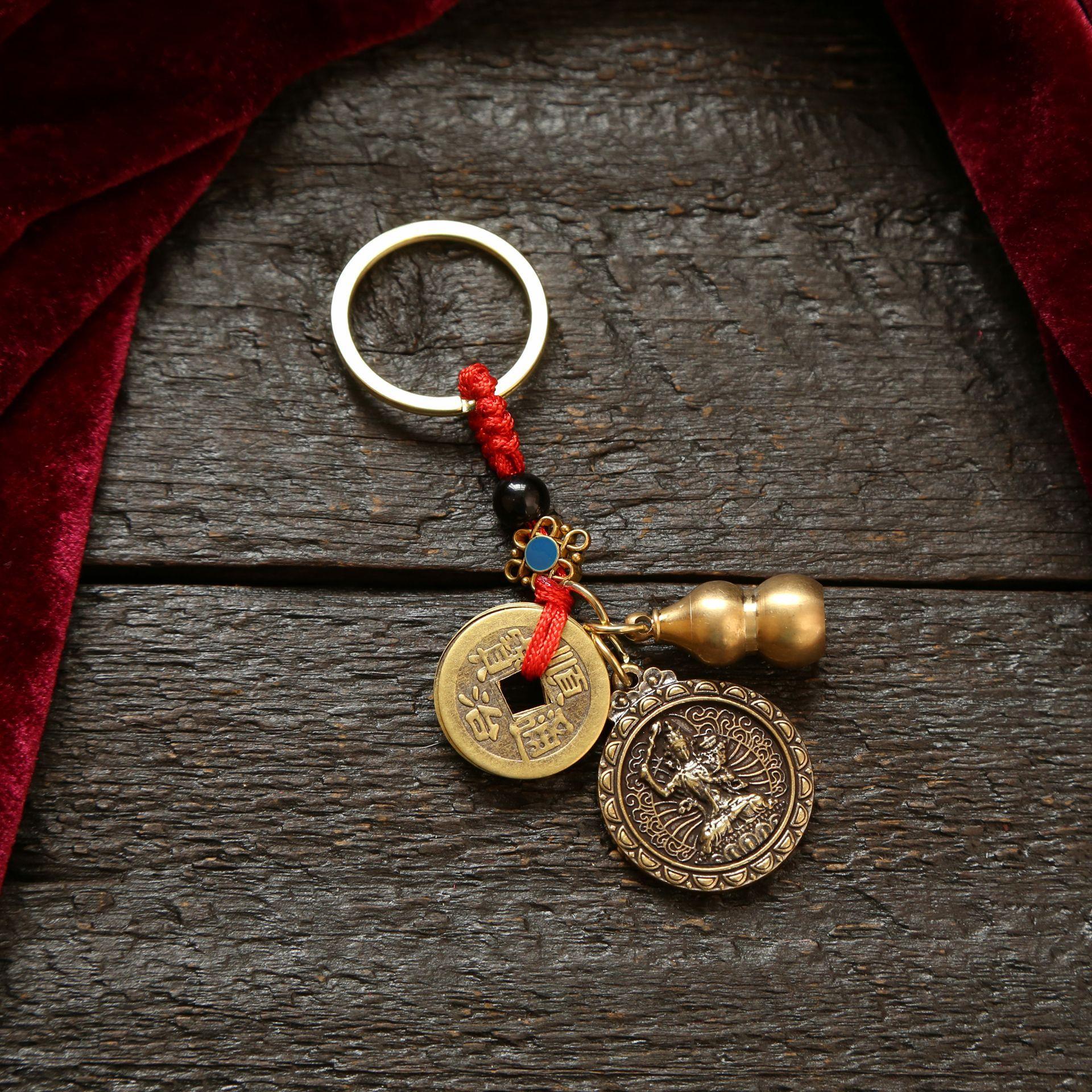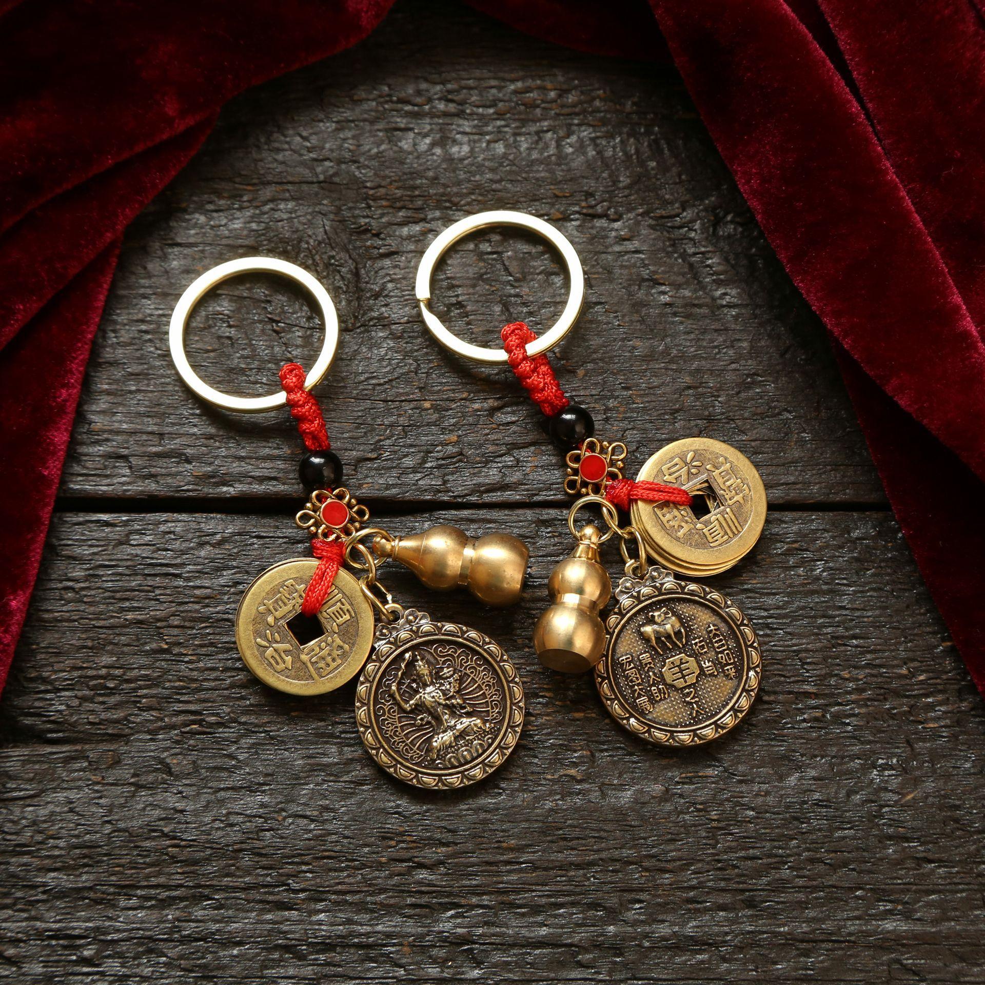 Compra Llavero con colgante de latón con doce signos del zodiaco, ocho guardianes, cuerda roja, cinco emperadores, dinero, llave de coche, bolso, colgante al por mayor en Joom.pro