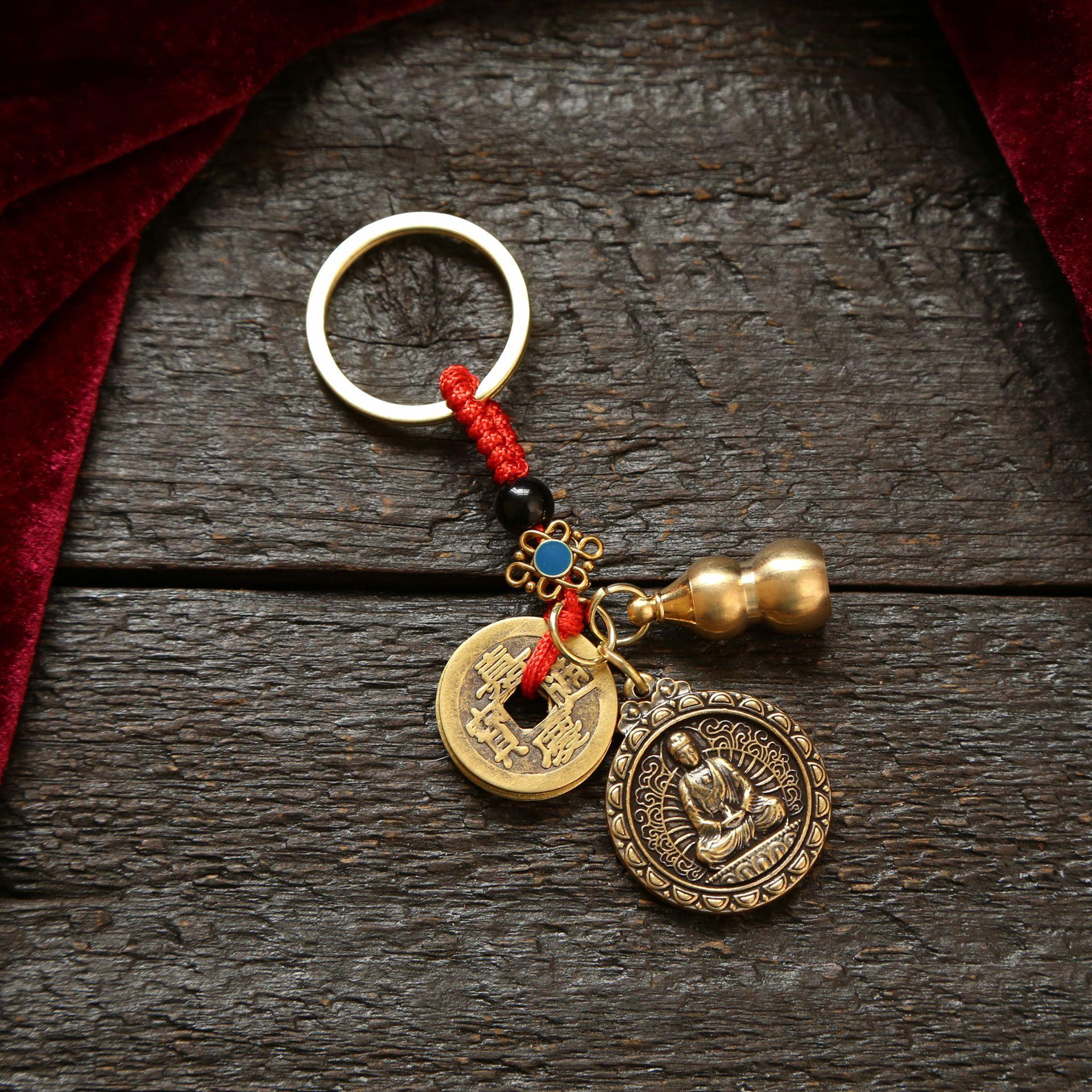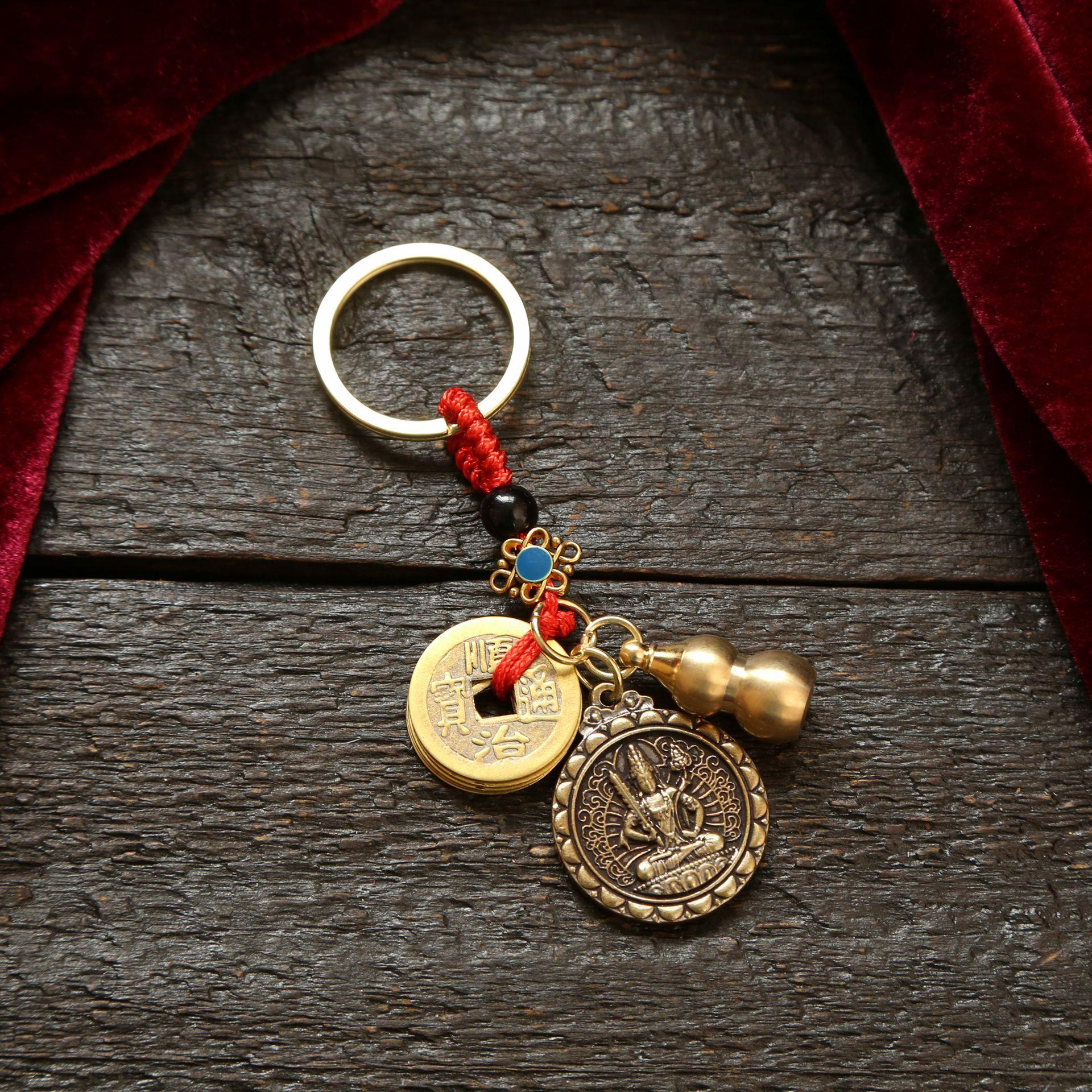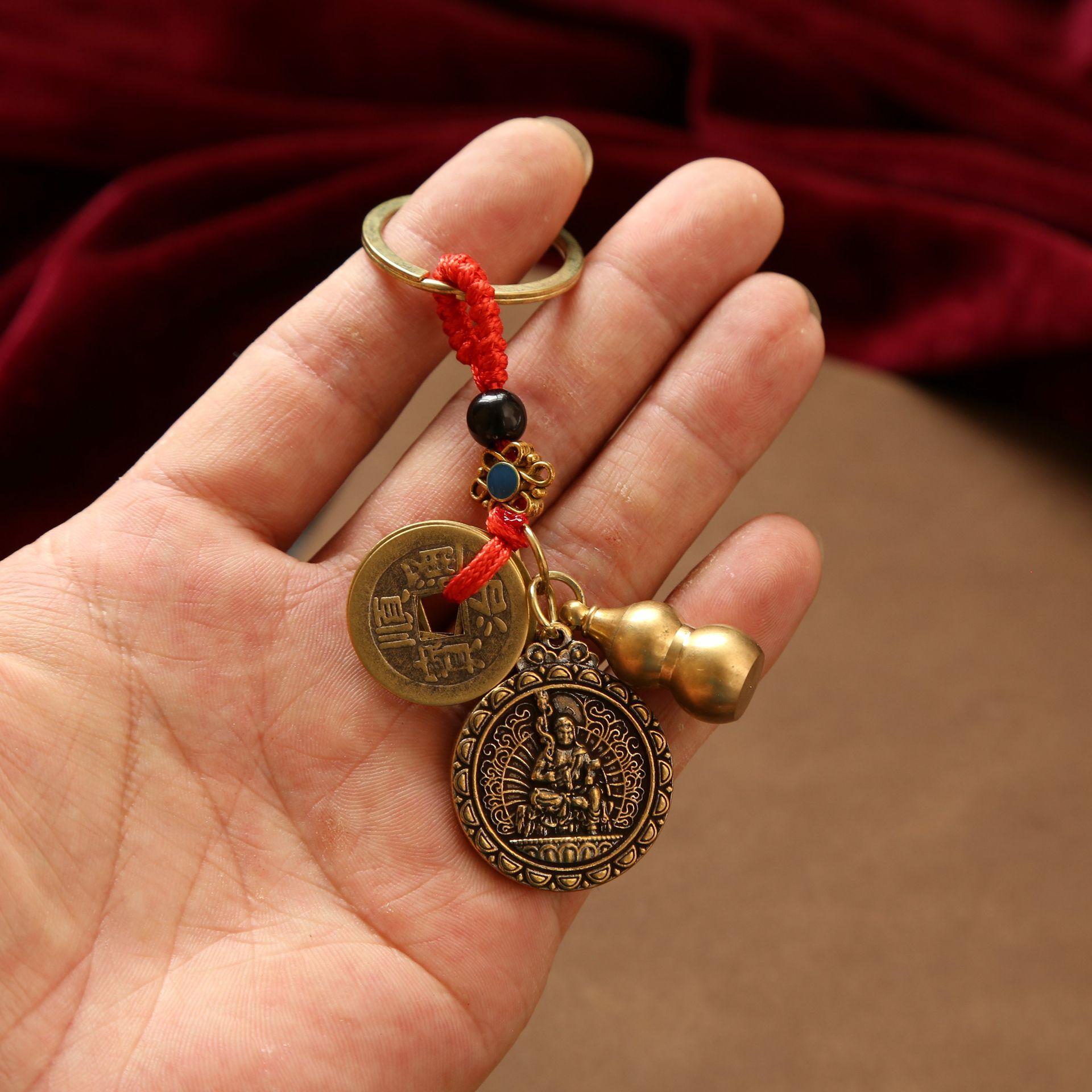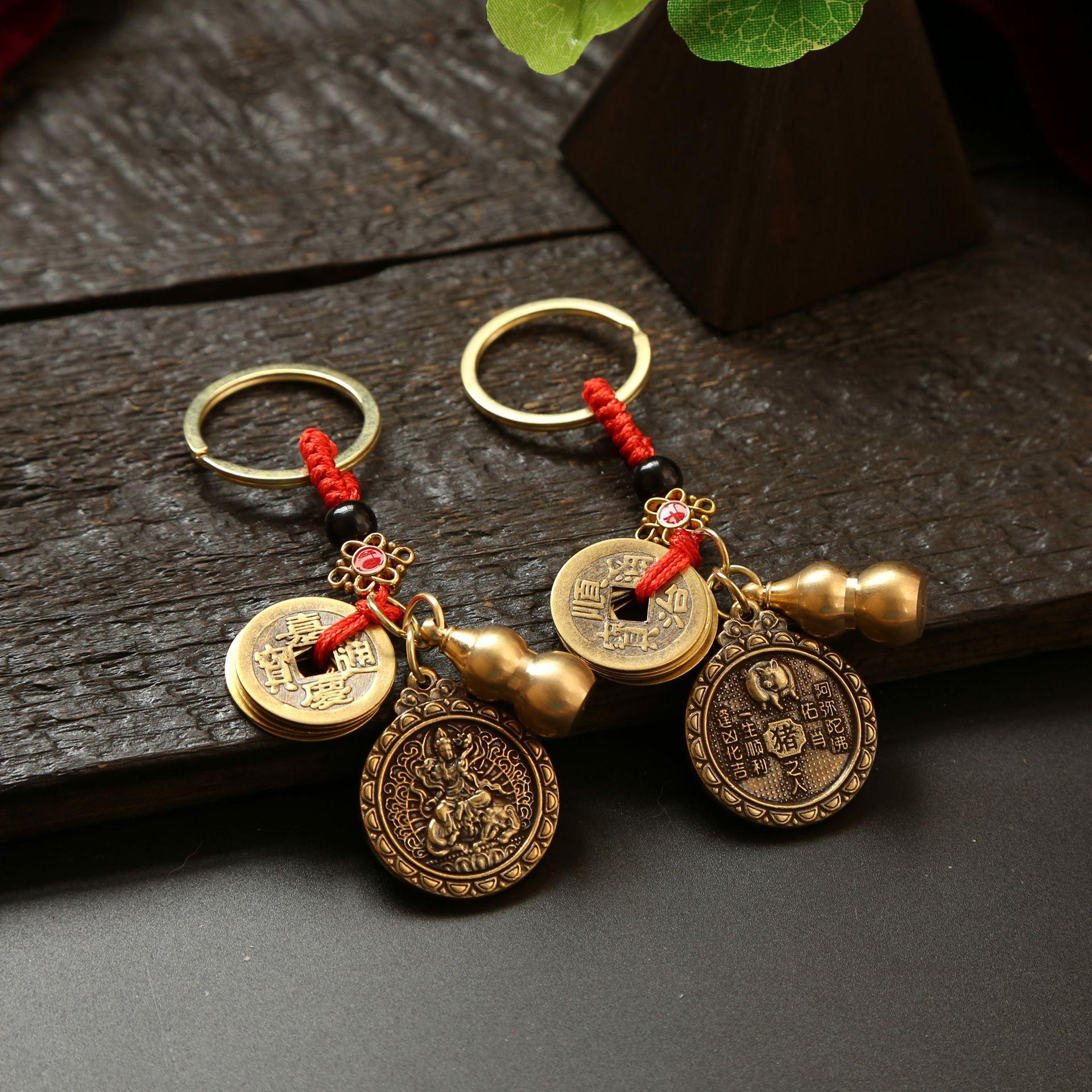 Compra Llavero con colgante de latón con doce signos del zodiaco, ocho guardianes, cuerda roja, cinco emperadores, dinero, llave de coche, bolso, colgante al por mayor en Joom.pro