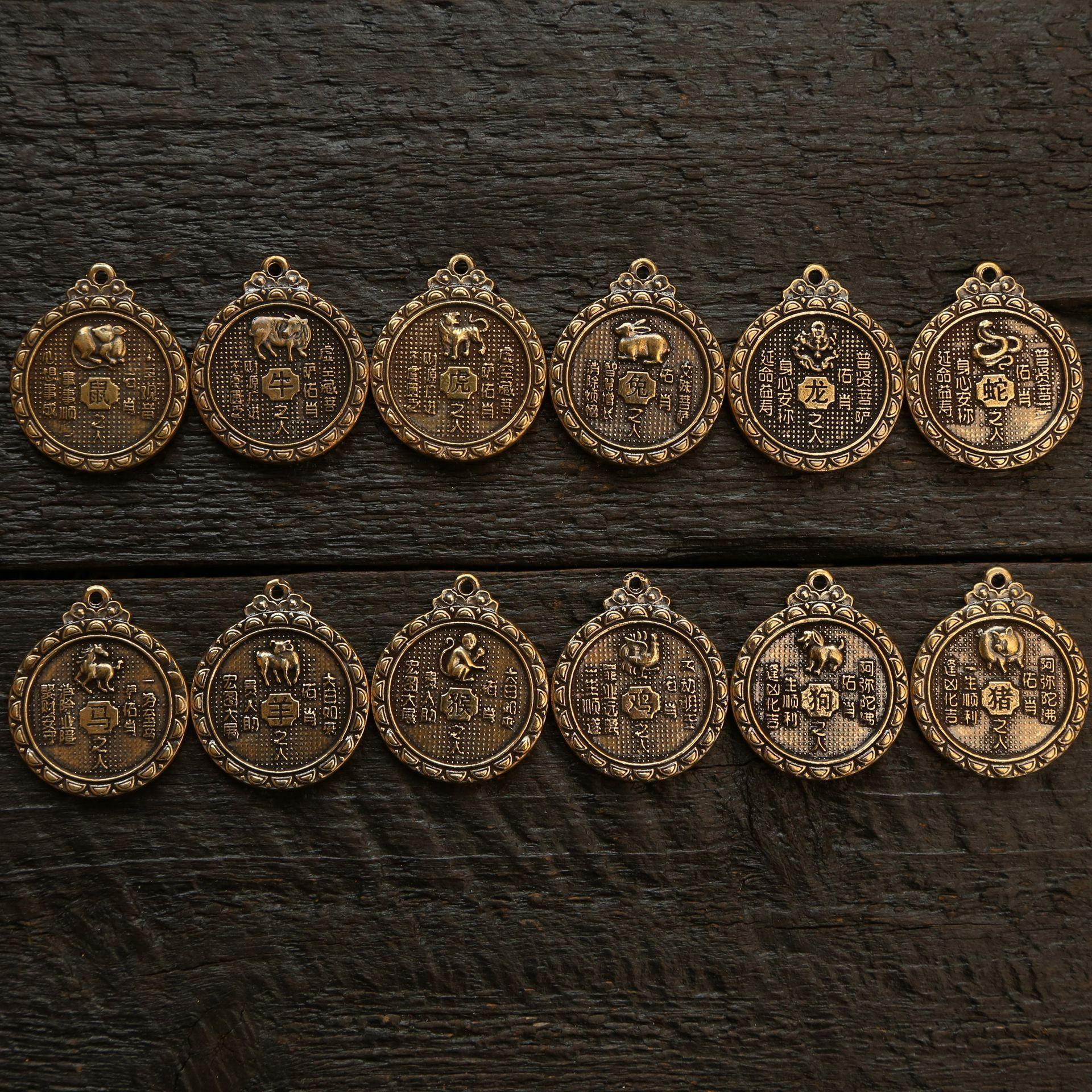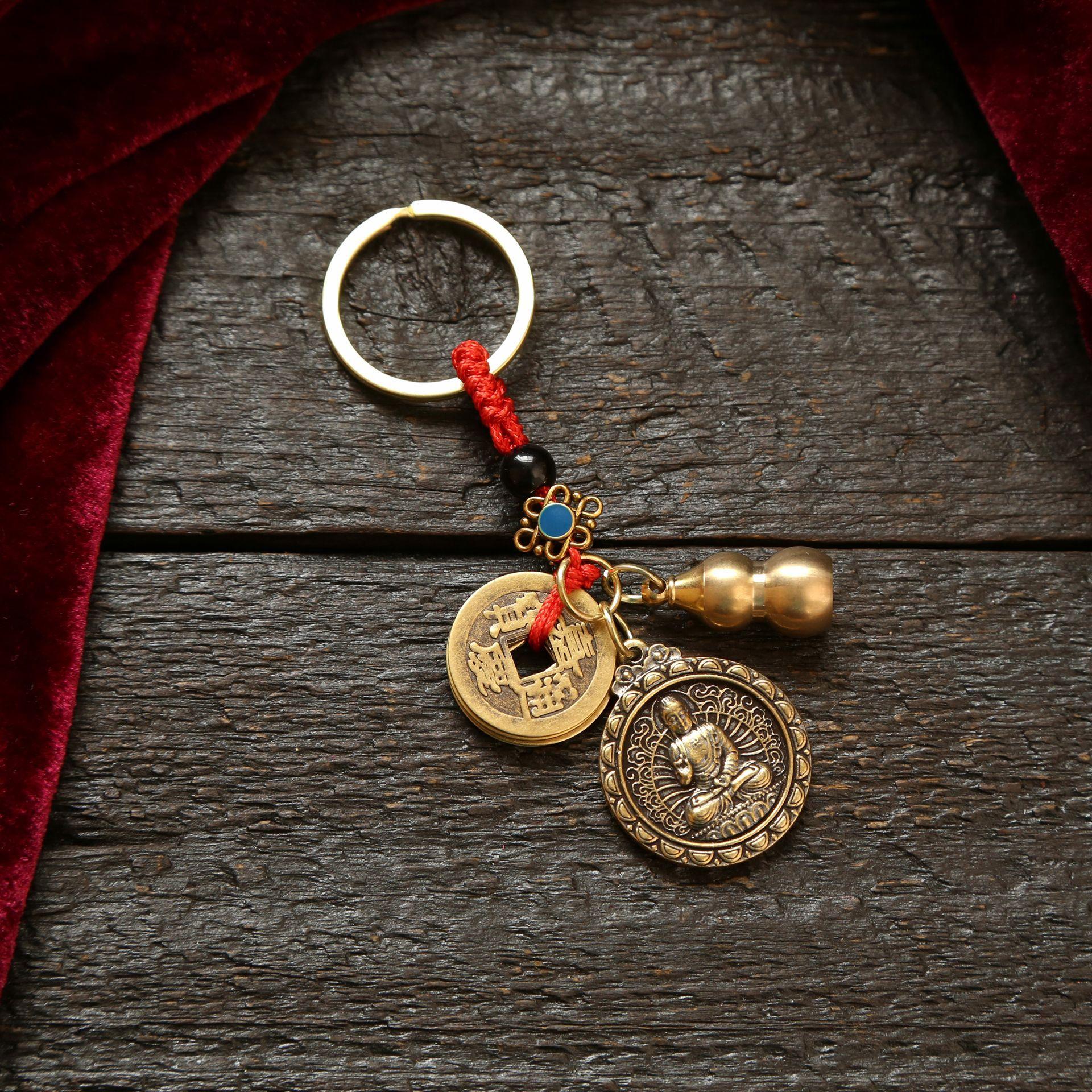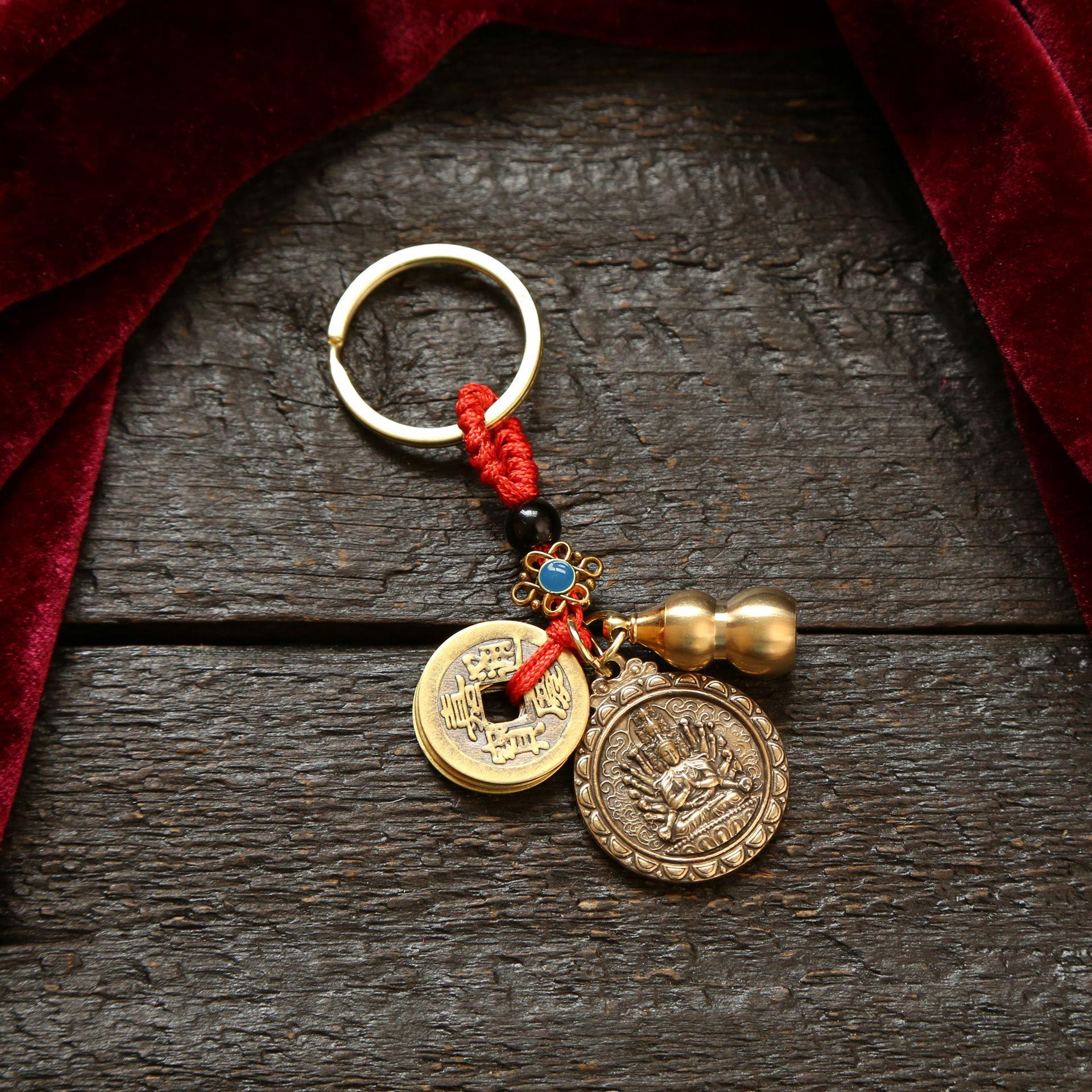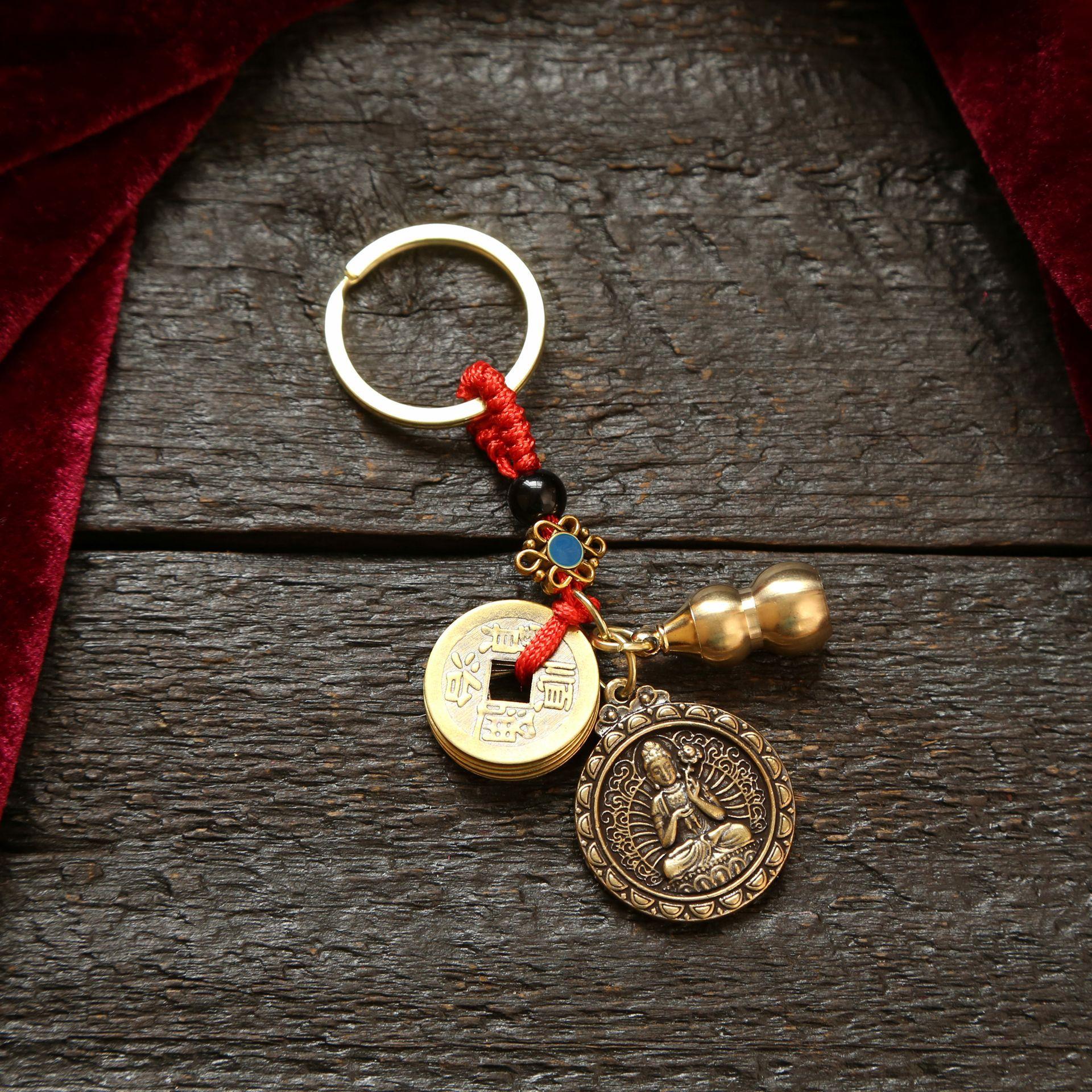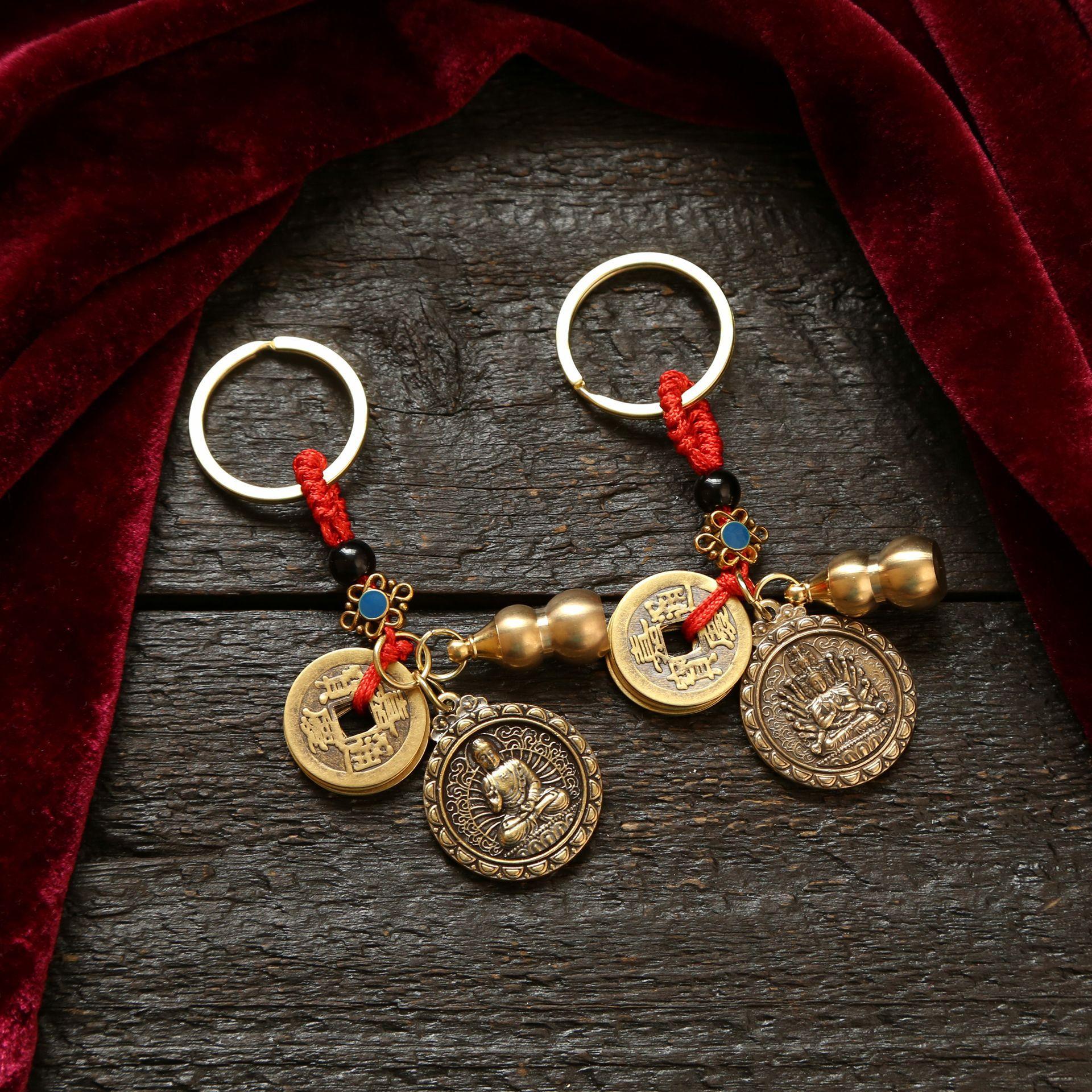 Compra Llavero con colgante de latón con doce signos del zodiaco, ocho guardianes, cuerda roja, cinco emperadores, dinero, llave de coche, bolso, colgante al por mayor en Joom.pro