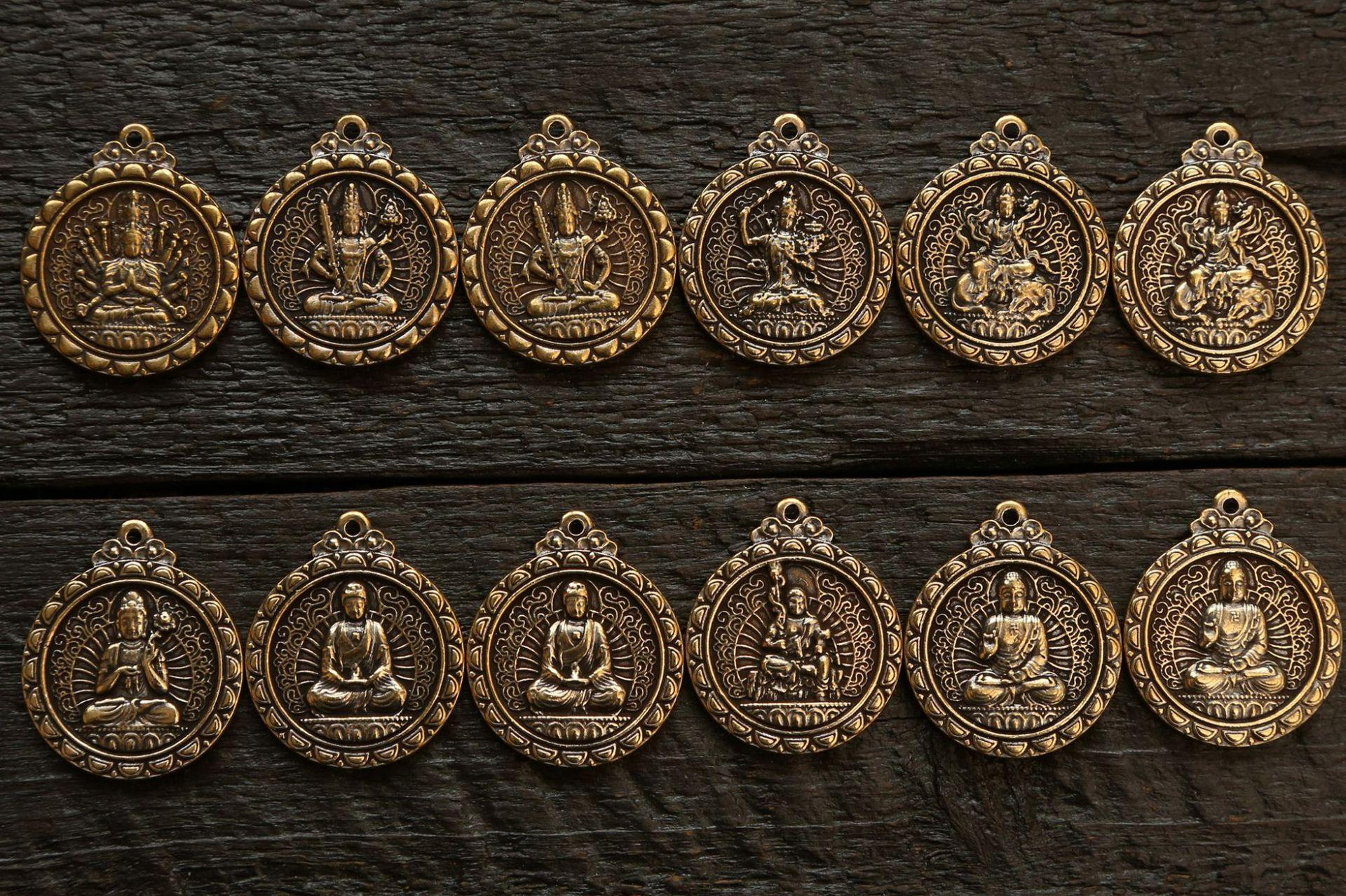 [Zodiac mouse Thousand-Hand Guanyin] brass + red rope five Emperor money + gourd, [Zodiac cattle empty bodhisa...