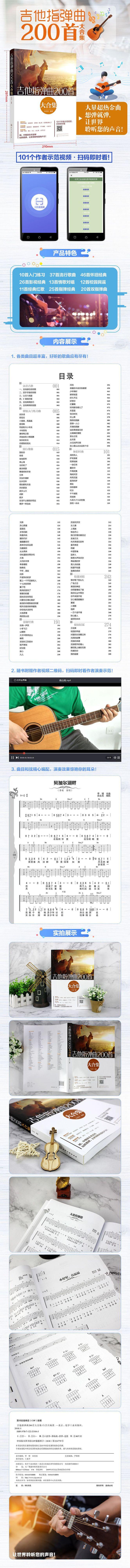 El editor ha adaptado 200 de las canciones más populares y ampliamente difundidas entre los guitarristas en los últimos años en una colección de canciones adecuadas para guitarra fingerstyle en un estilo nostálgico. Cada canción está acompañada de notación de seis líneas, notación simple y letra, y el intérprete puede cantar al hermoso acompañamiento de la guitarra. Esta colección tiene las características de contenido clásico, alta relación calidad-precio, anotaciones claras, edición exquisita y arreglo humanizado.