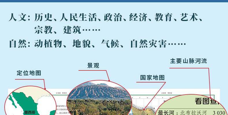 Cada paisaje natural, característica geográfica, vida de las personas, evento político, industria, agricultura, economía, ciudad, vegetación animal, comida especial, arte local e incluso creencias se presentan en este libro.
