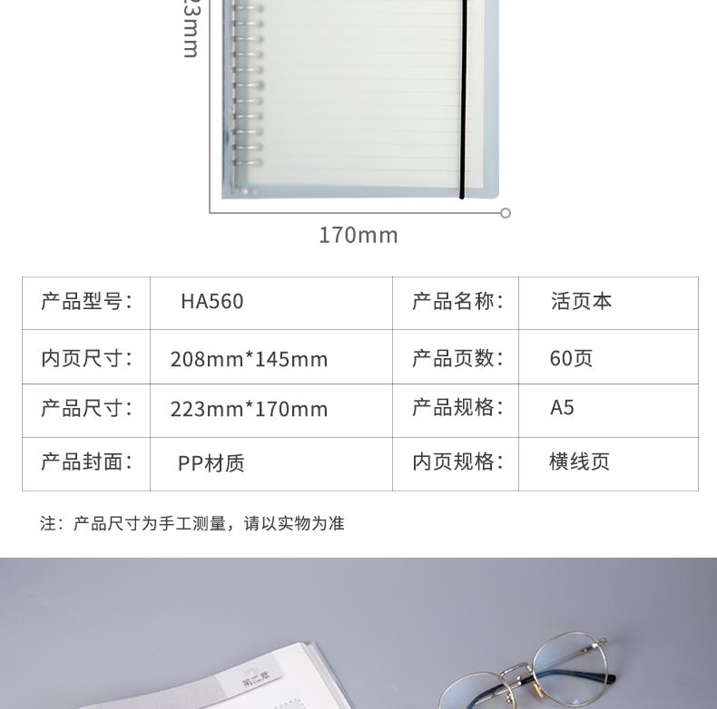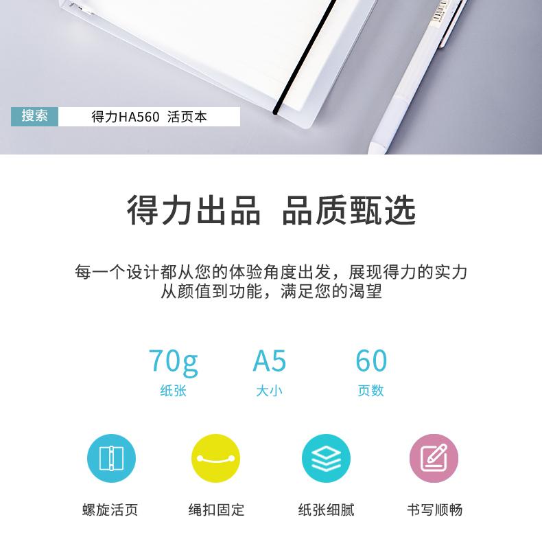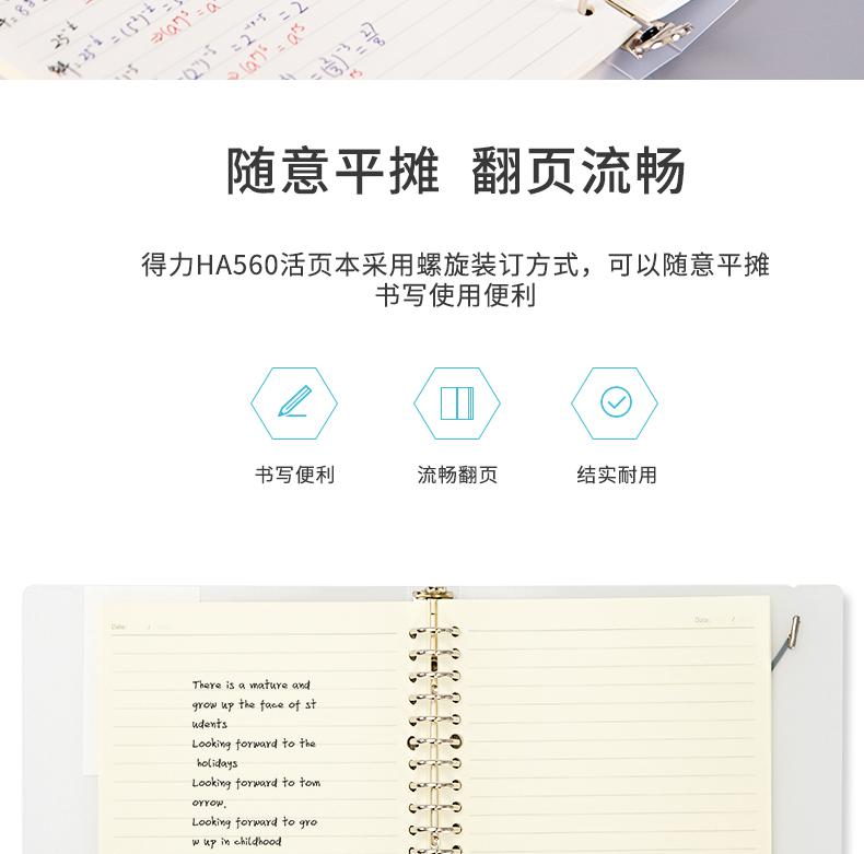 Cuaderno de hojas sueltas Deli HA560 para estudiantes universitarios, simple, de literatura y arte, exquisito y creativo, engrosado.