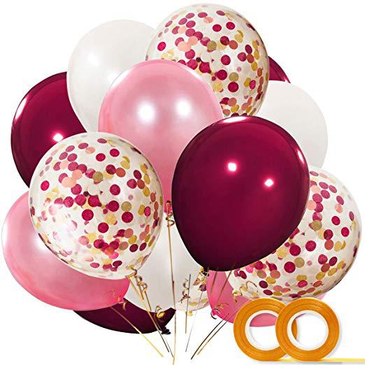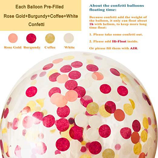 Set de Guirnalda de Globos Borgoña, Guirnalda de Globos de 12 Pulgadas, Incluye Globos Surtidos Borgoña, Oro Rosa, Melocotón Perla y Confeti Oro Rosa, Fondo de Decoración Perfecto para Fiesta de Cumpleaños o Baby Shower