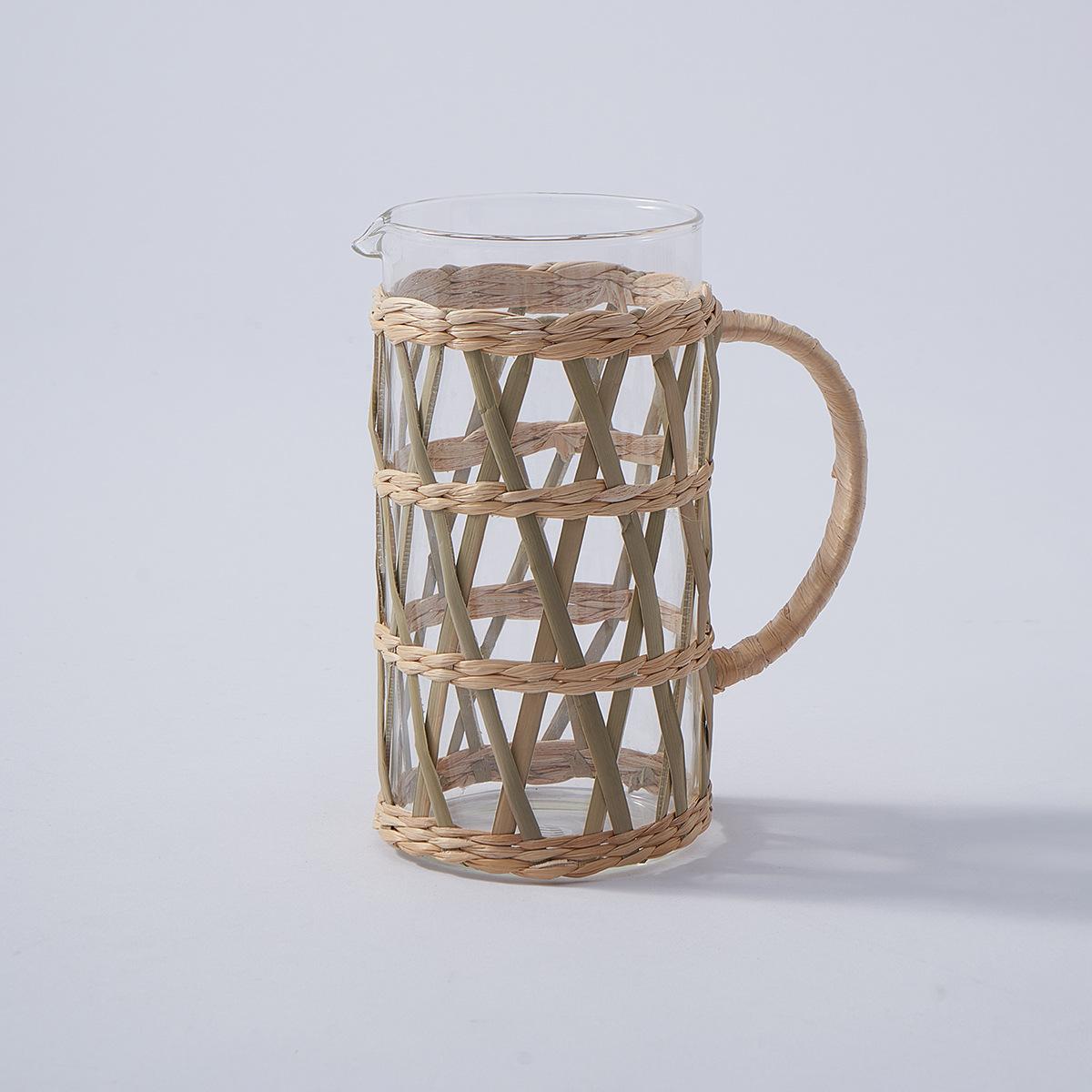 Funda protectora para vaso de vidrio tejido a mano de Amazon, resistente a altas temperaturas, con asa, de paja tejida para botella de agua.