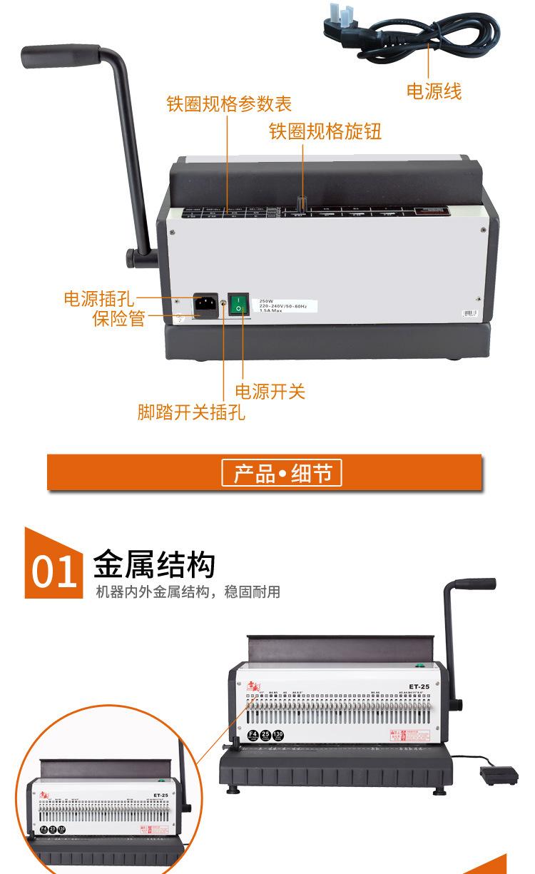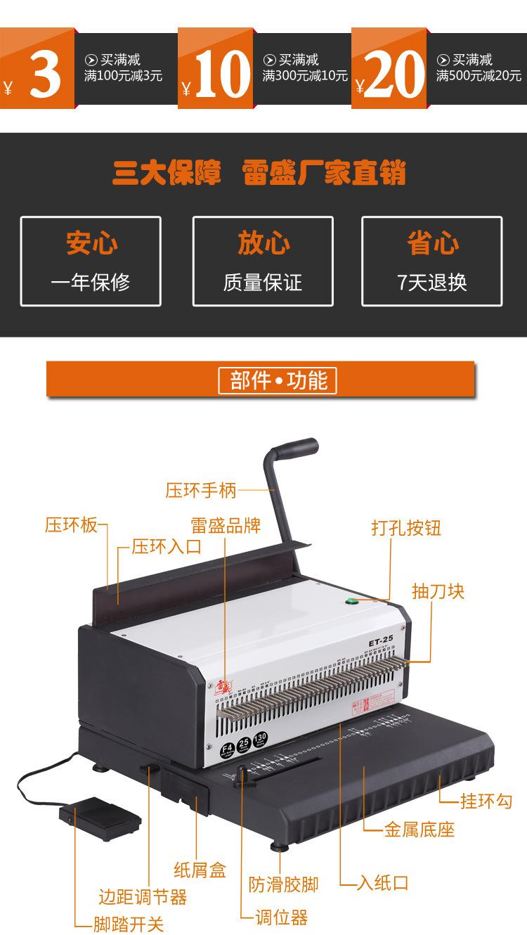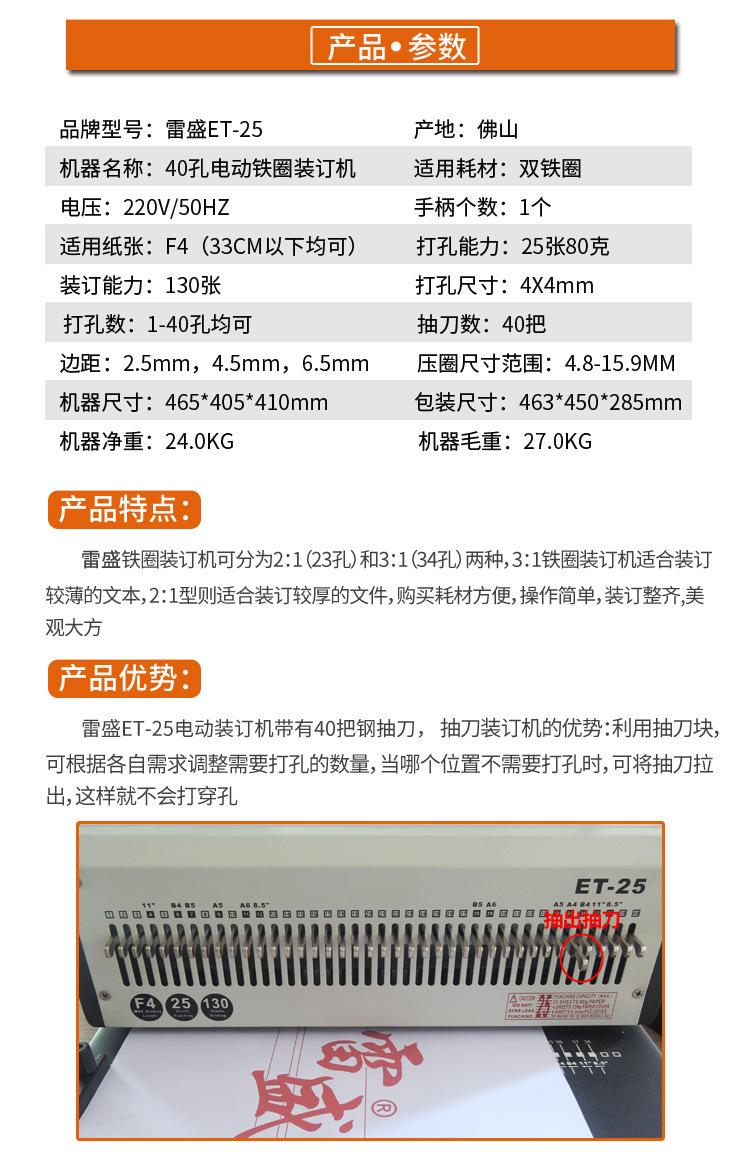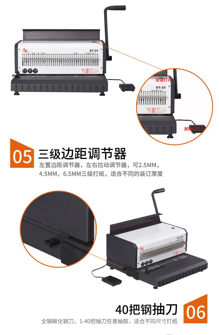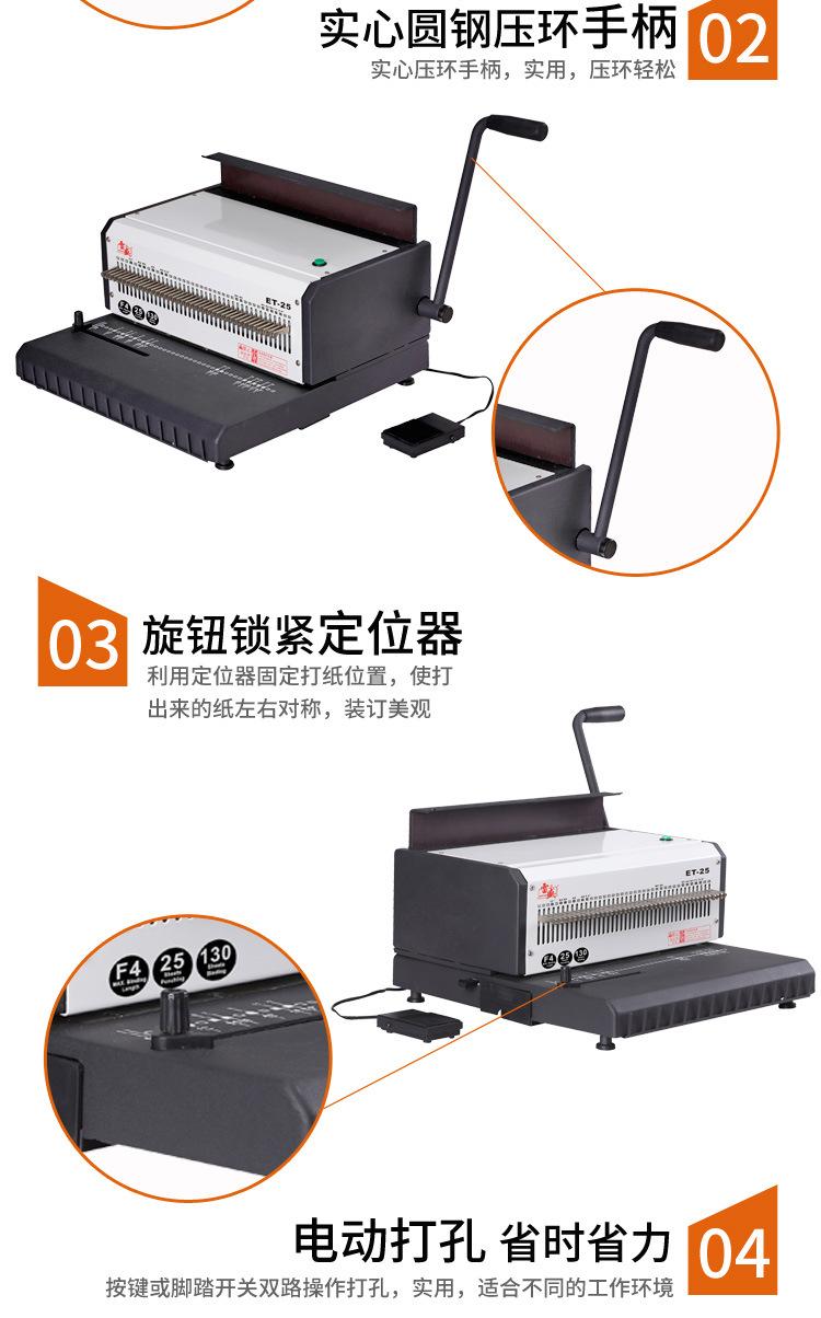 Reisheng ET-25 Máquina Encuadernadora de Anillo de Hierro Eléctrica Vale Anillo de Hierro Doble Calendario de Escritorio Calendario de Pared Texto Perforadora de 40 Agujeros Máquina Encuadernadora