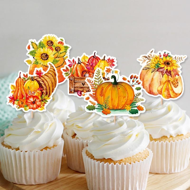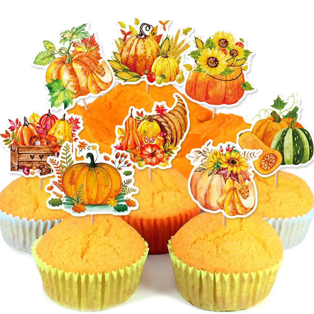Nueva tarjeta de decoración para tarta de fiesta de Acción de Gracias transfronteriza, complemento de decoración para repostería de fiesta de cumpleaños de otoño