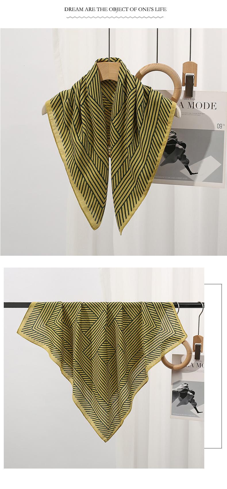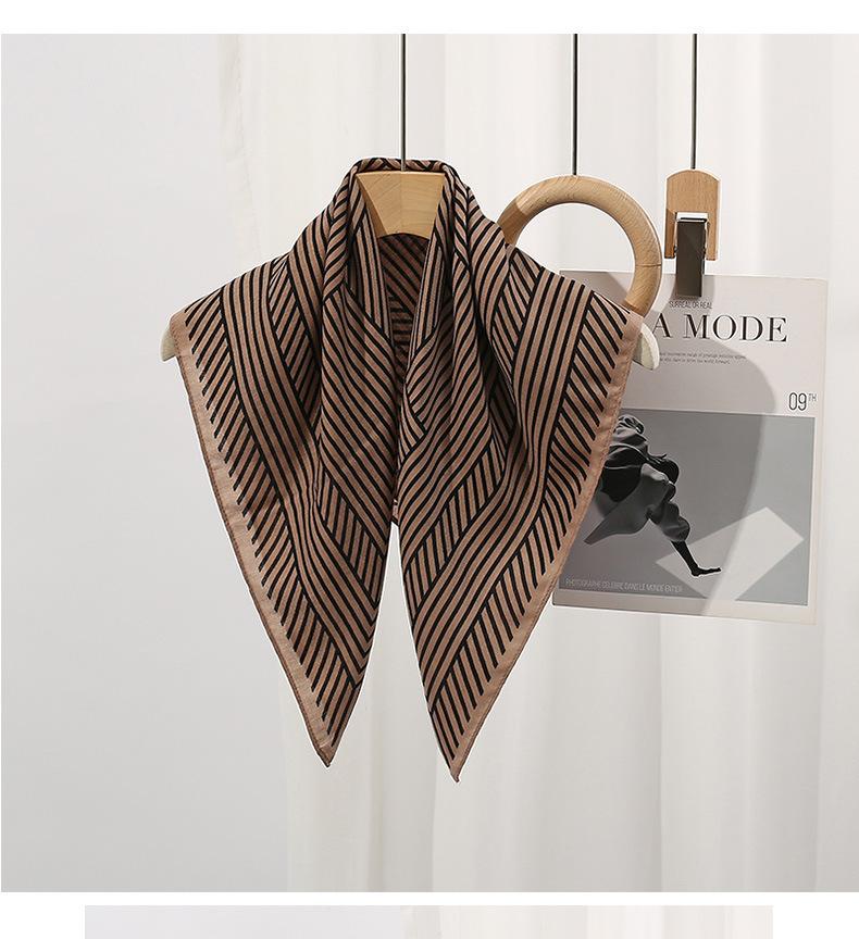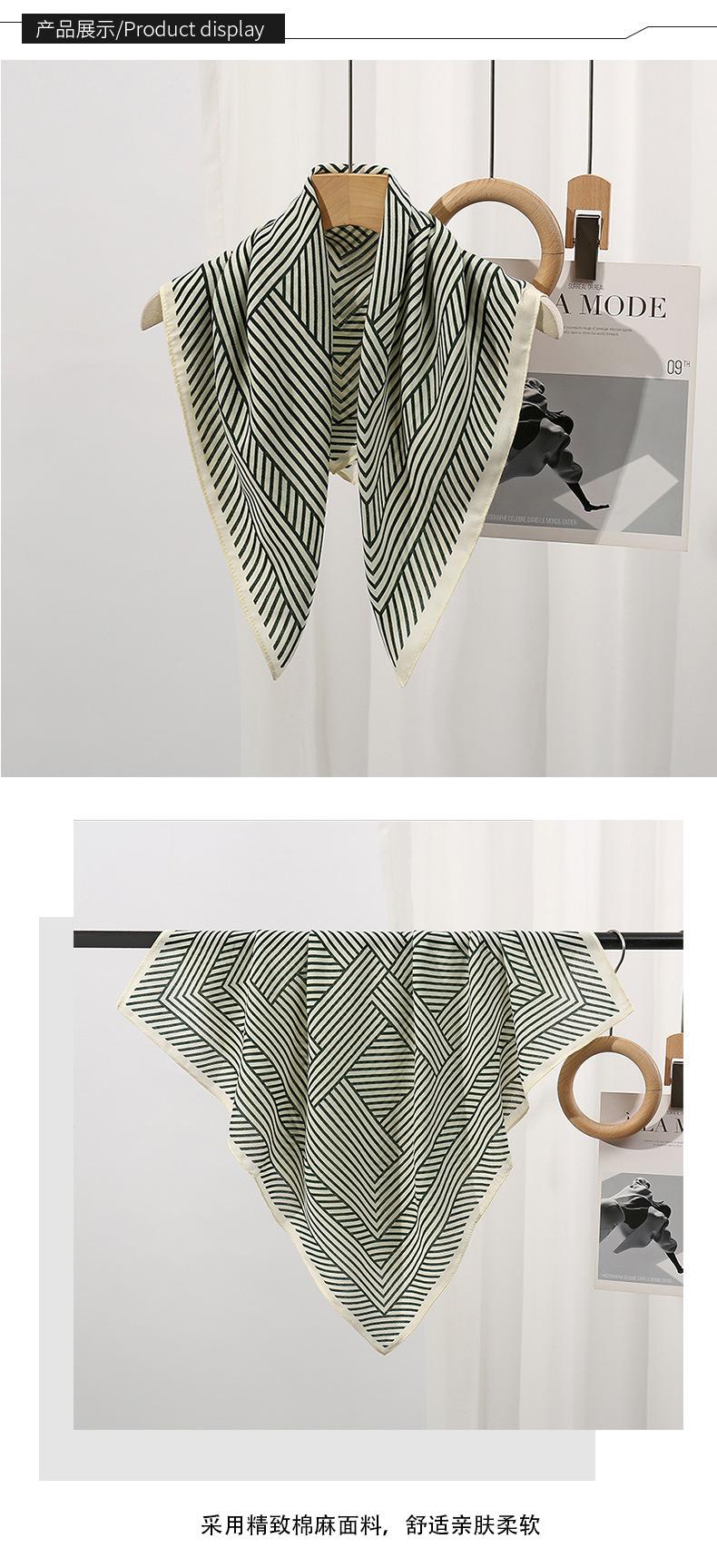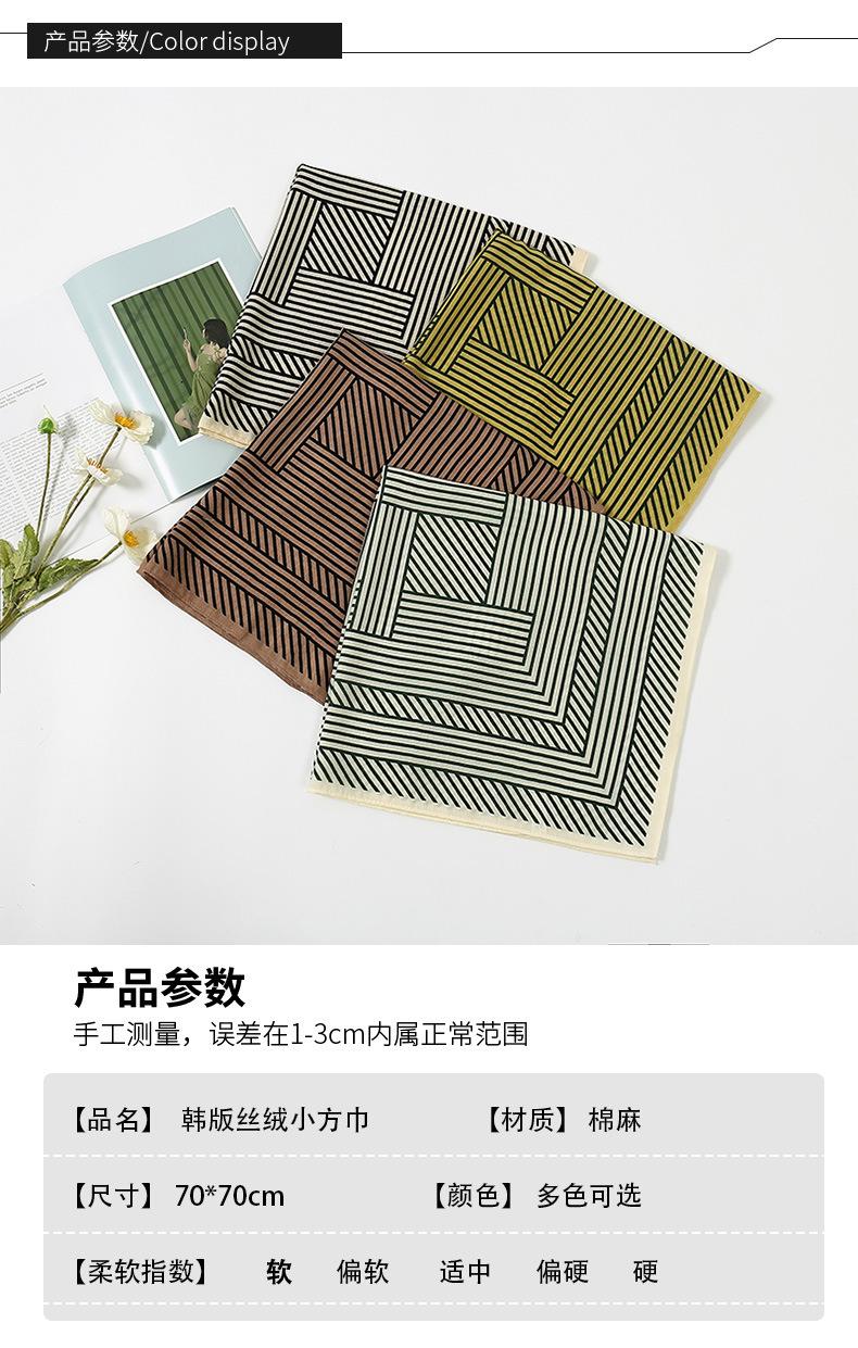 Pañuelo pequeño cuadrado a rayas minimalista nórdico para mujer, pañuelo cálido de invierno de algodón y lino, pañuelo elegante, banda para el cabello, bufanda protectora para el cuello