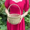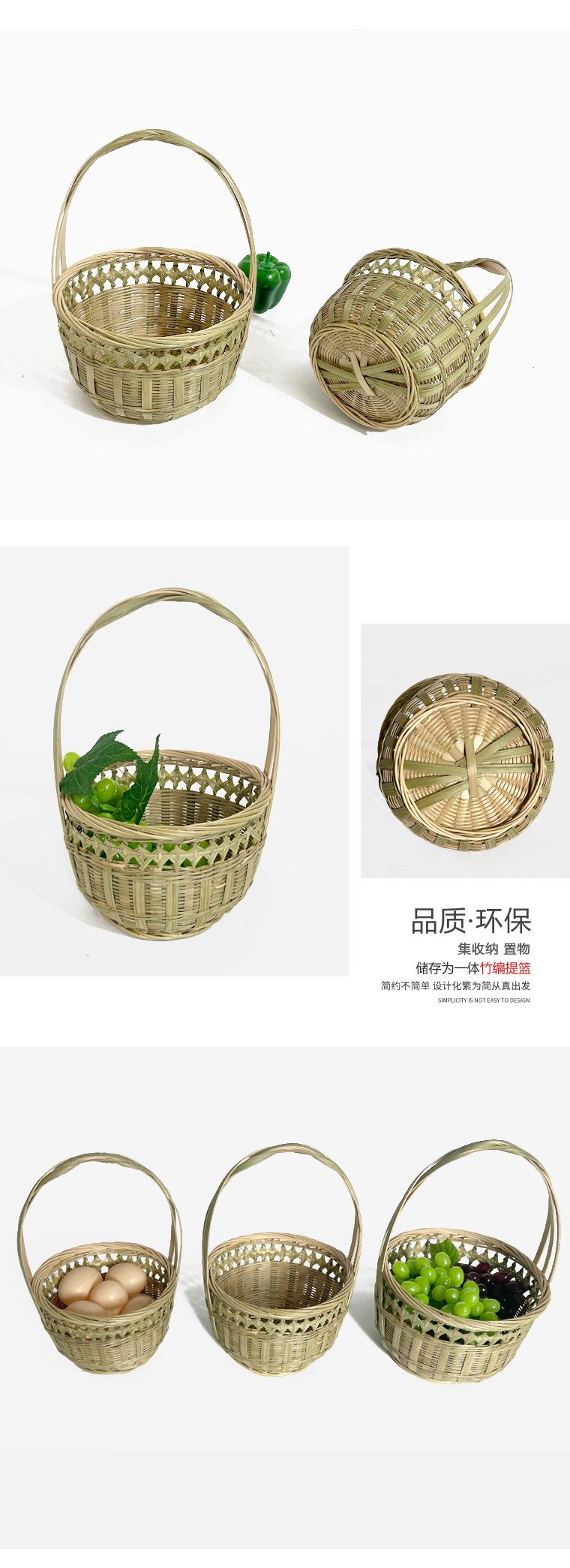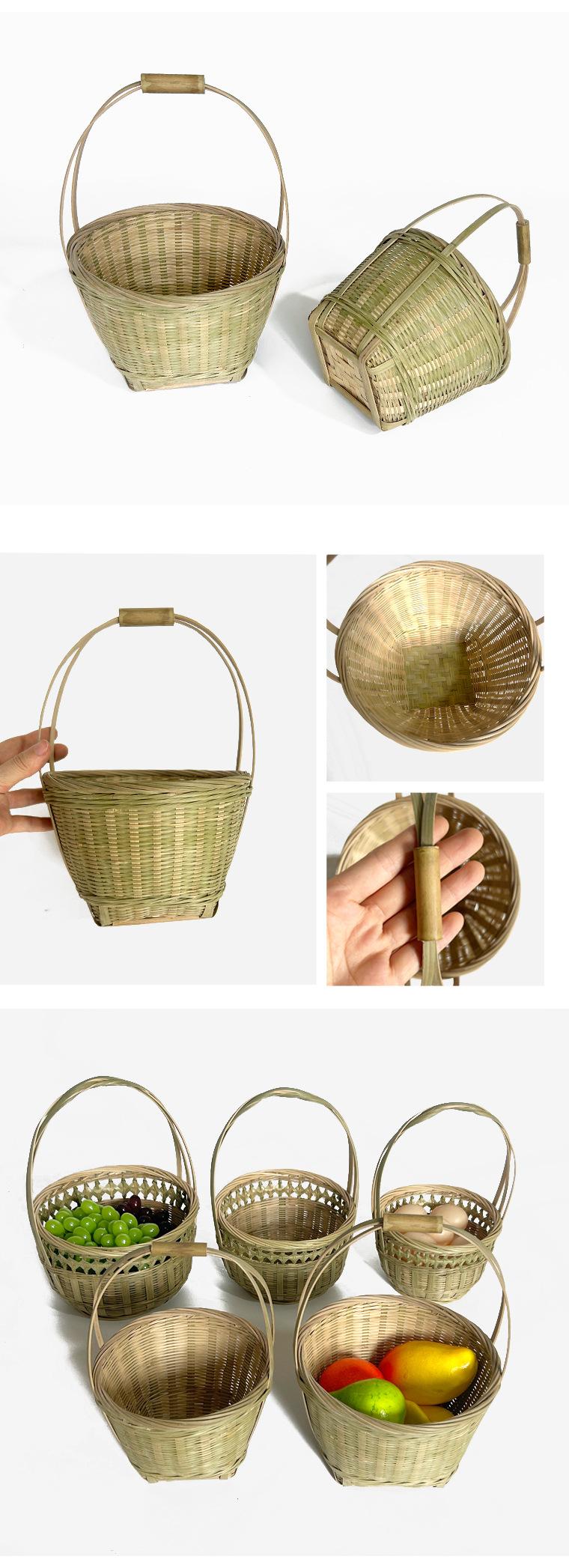 Cesta de bambú tejida a mano antigua, cesta redonda de bambú verde para recoger huevos, cesta para bocadillos de frutas, cesta de bambú, cesta colgante