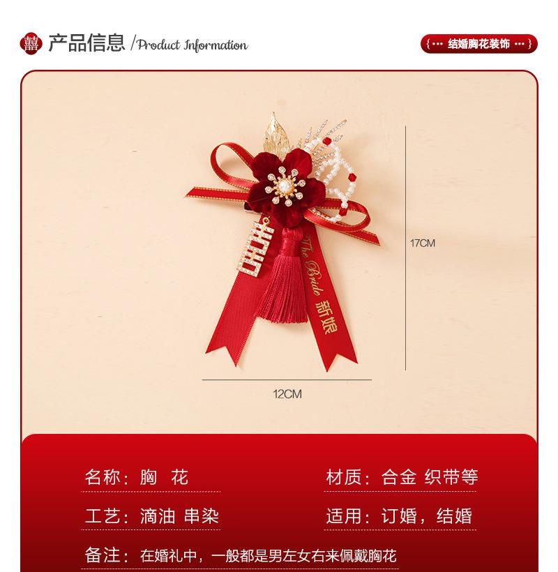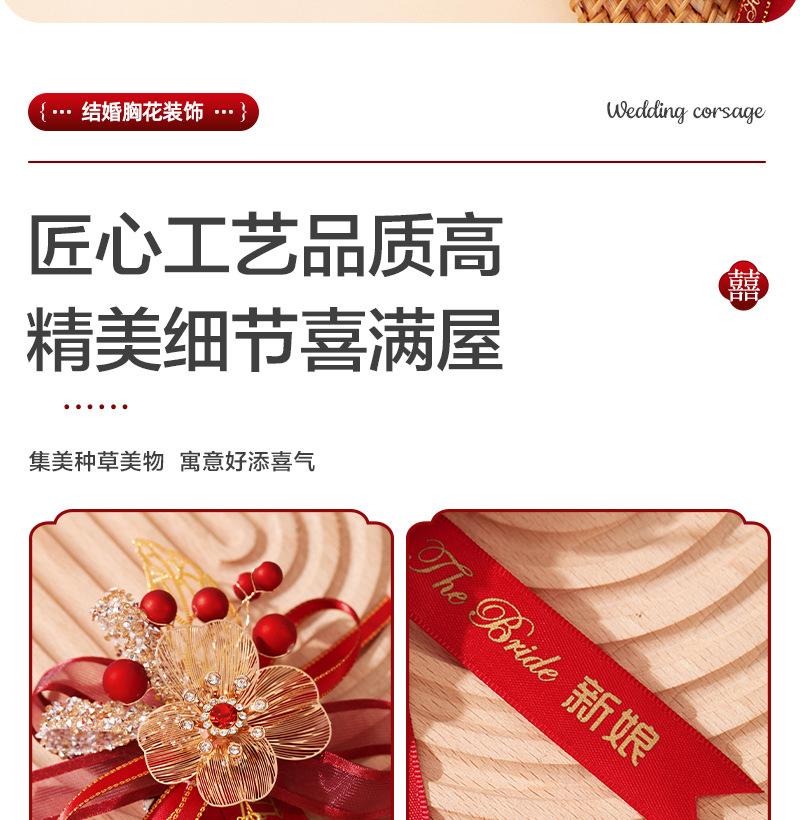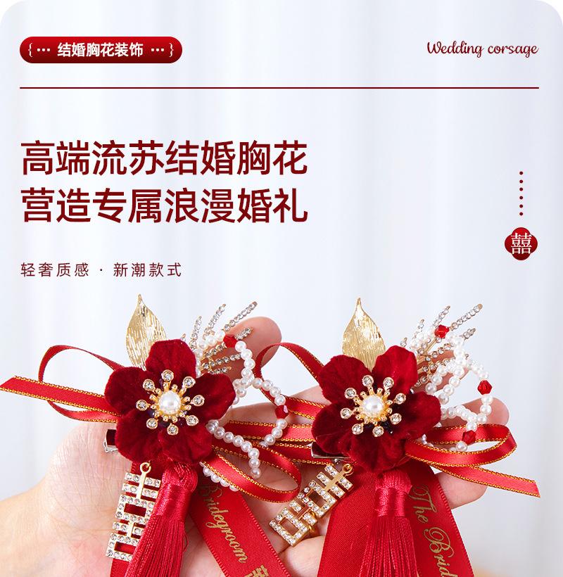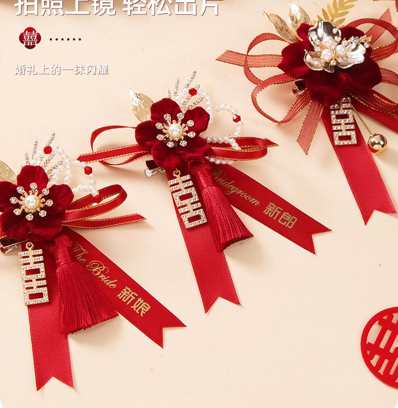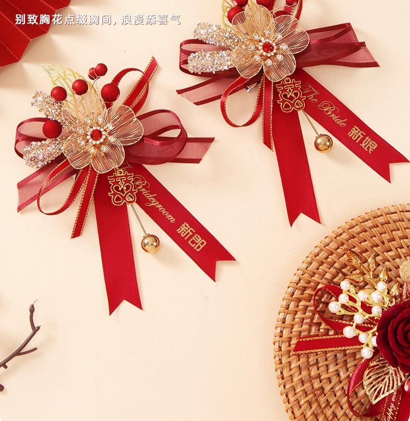 Boda de novia y novio con flores brillantes, nuevos padres chinos, conjunto completo de ramillete de alto sentido, boda, conjunto completo de broche familiar