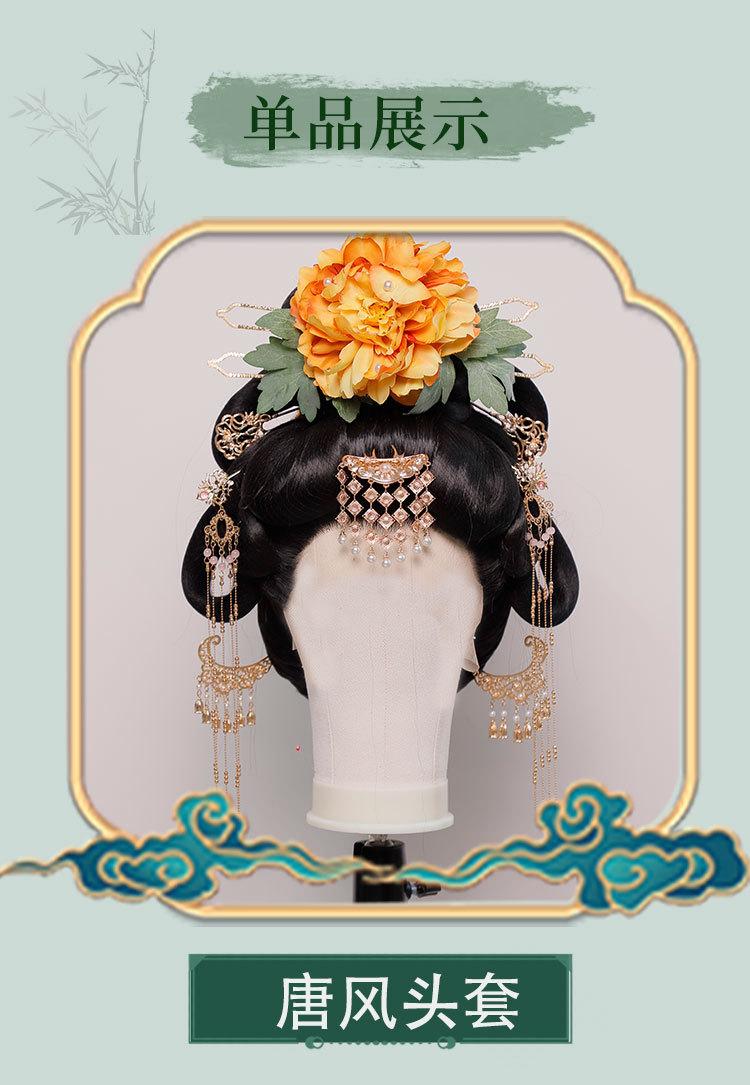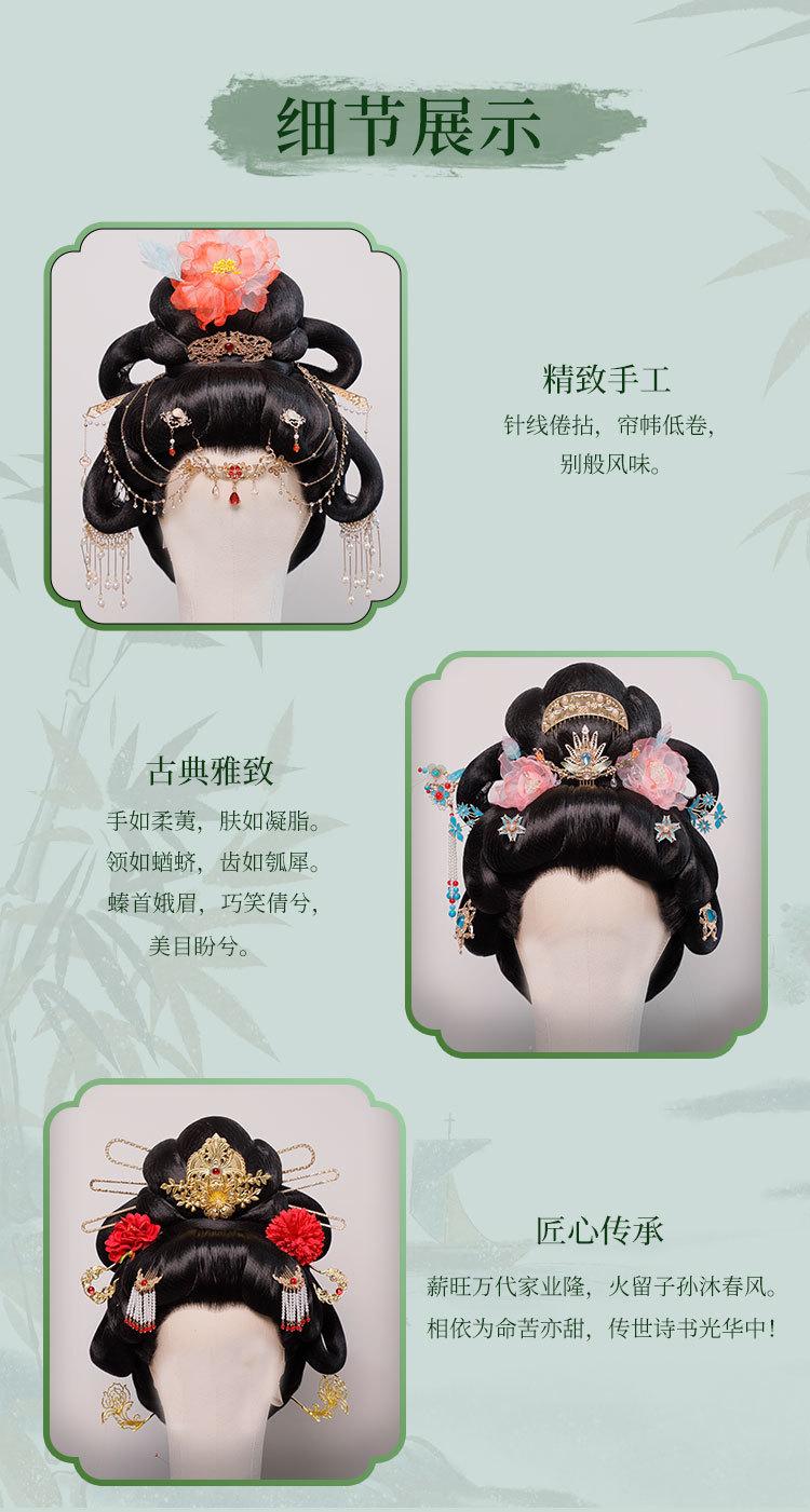 Tocado Hanfu, ropa antigua, conjunto de cabello de una pieza, peluca, estilo antiguo para mujer, accesorios para el cabello estilo Tang, conjunto de accesorios para el cabello
