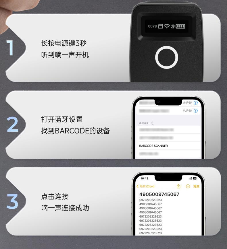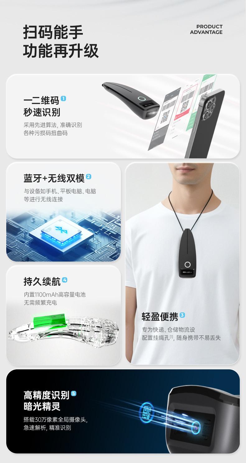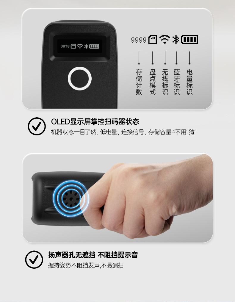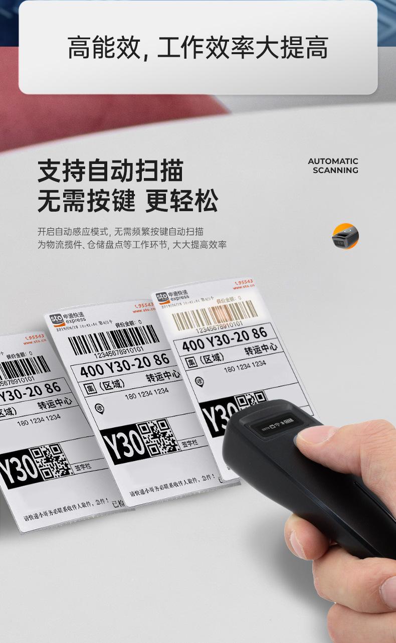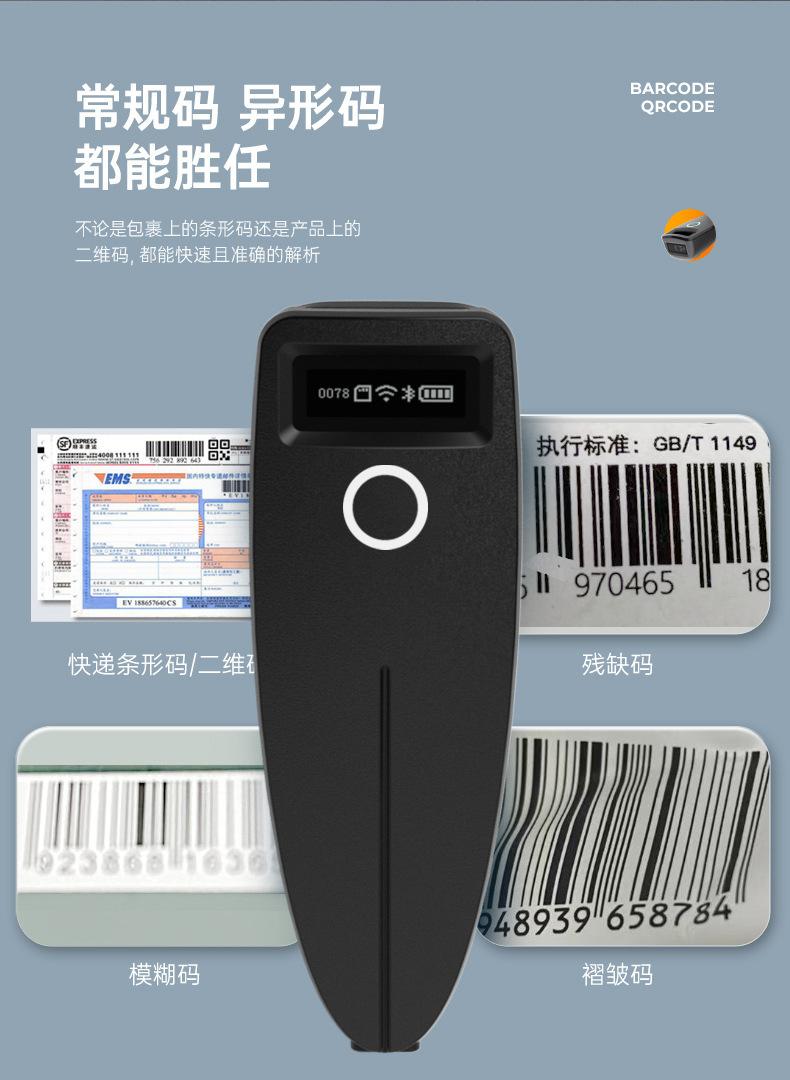 Escáner de código de barras portátil, mini, inalámbrico, Bluetooth, lector de código QR unidimensional con voz en pantalla