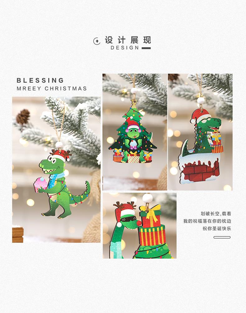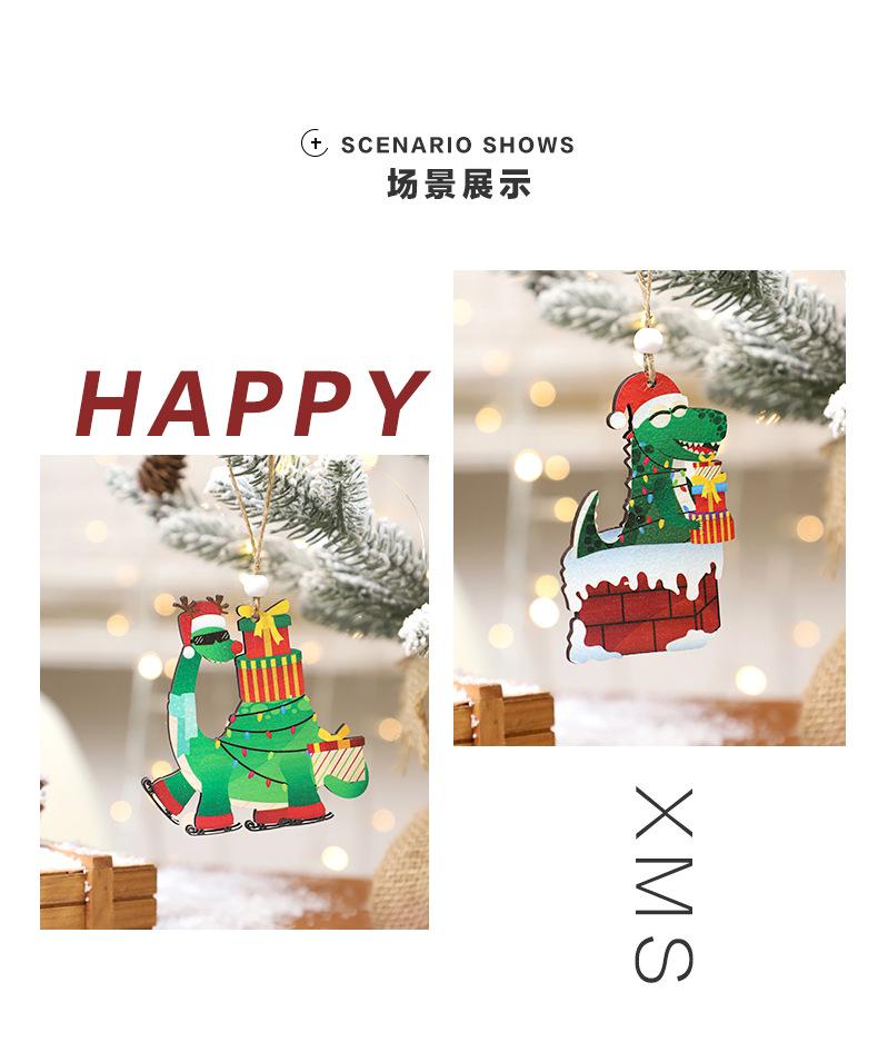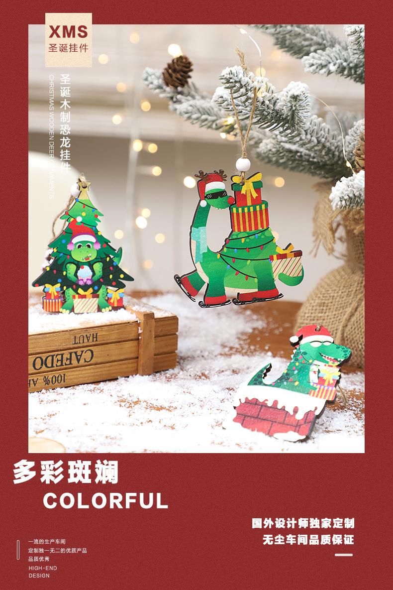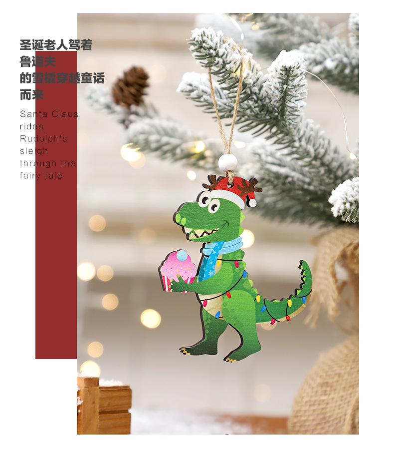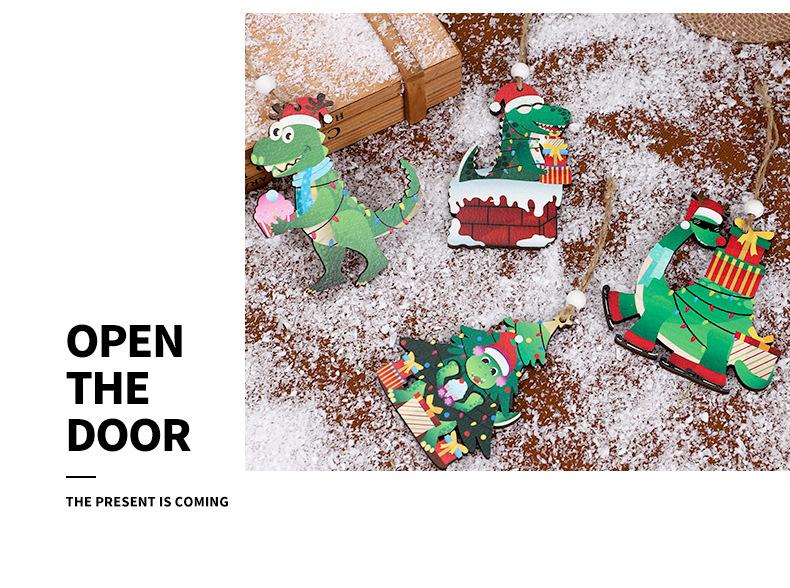 Nuevas decoraciones navideñas transfronterizas: muñecos navideños de dinosaurio, artesanías de madera, colgantes para árbol de Navidad.