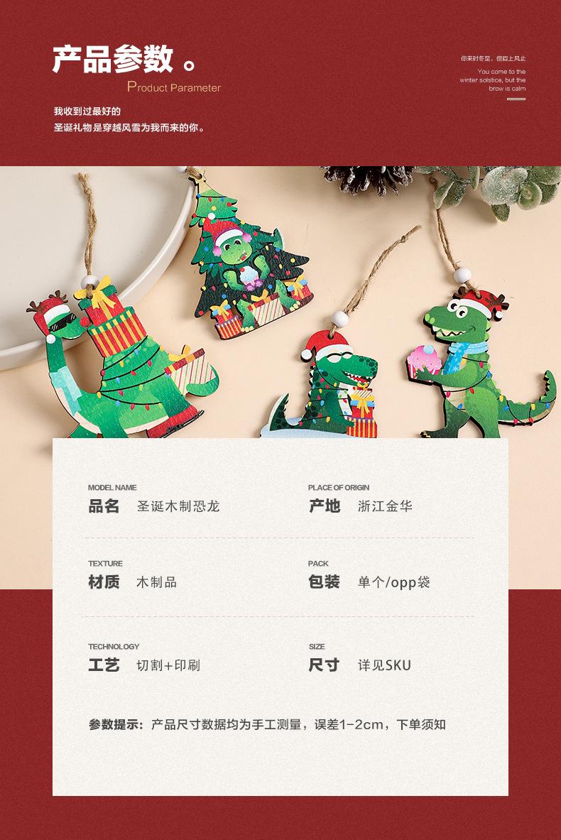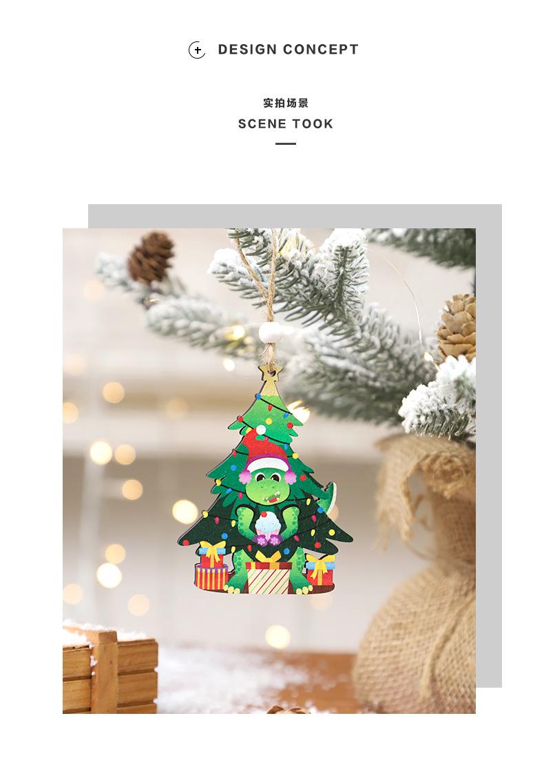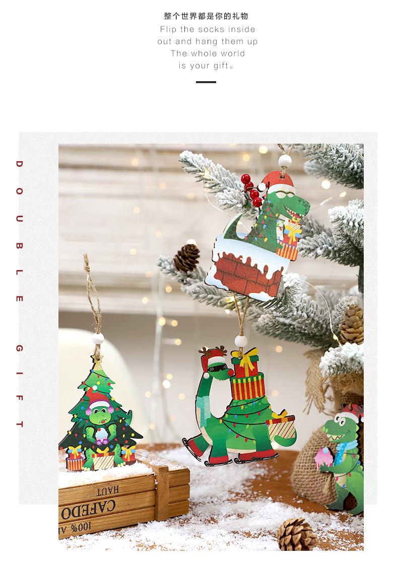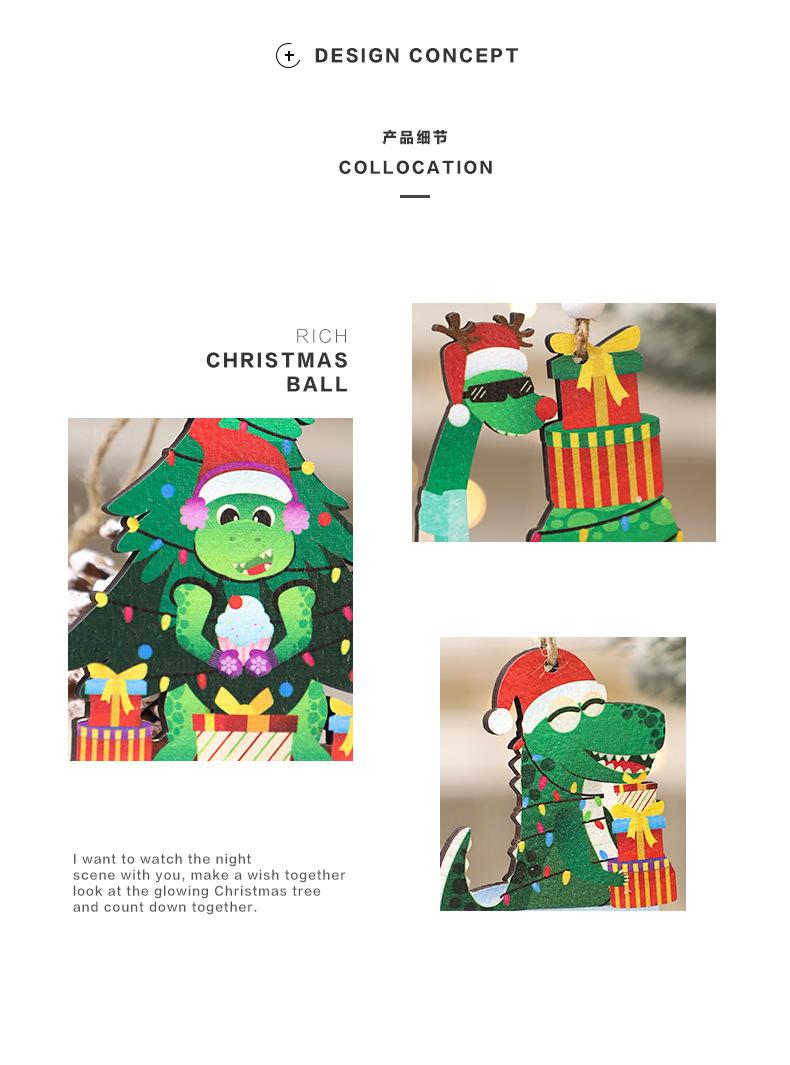 Nuevas decoraciones navideñas transfronterizas: muñecos navideños de dinosaurio, artesanías de madera, colgantes para árbol de Navidad.