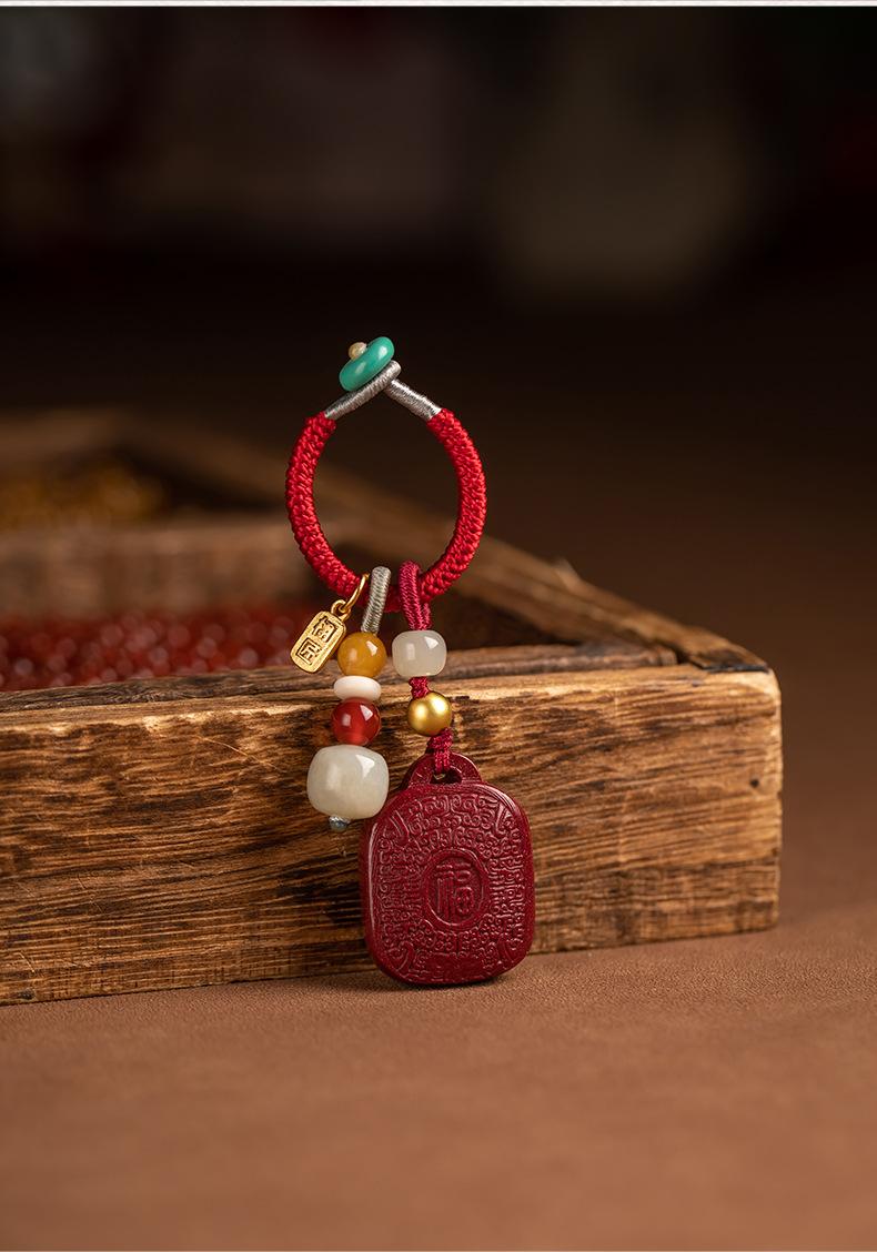 Amuleto de oración de Xu Carpenter No importa la marca Llavero de coche Marca Ping An Pequeño colgante Colgante Decoración Este año Cinabrio