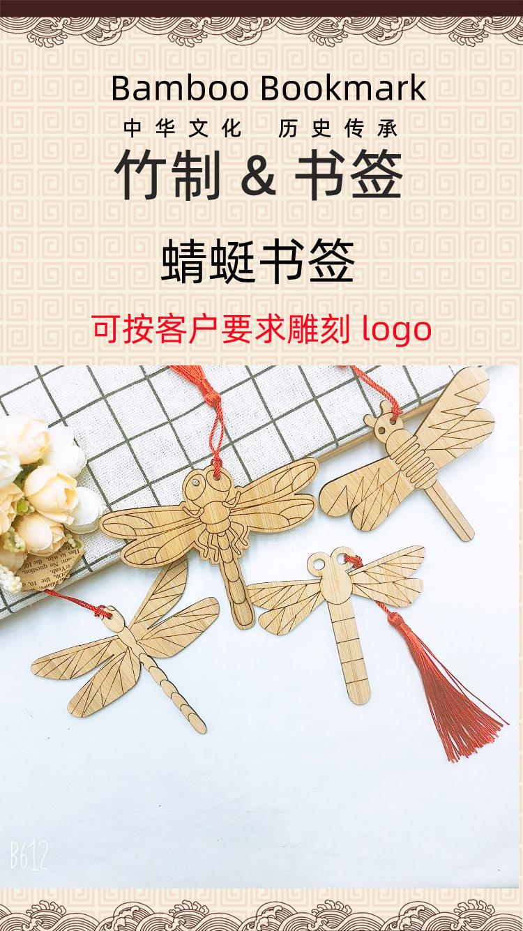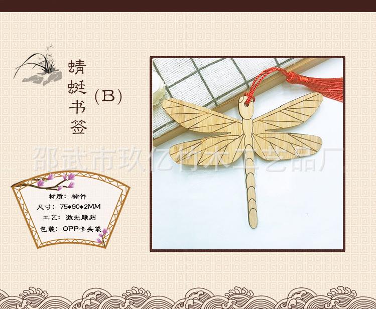 Exquisito marcapáginas de libélula de bambú, estilo chino, artesanía, regalo, campus, museo, papelería, regalo para estudiantes, recuerdo, venta al por mayor