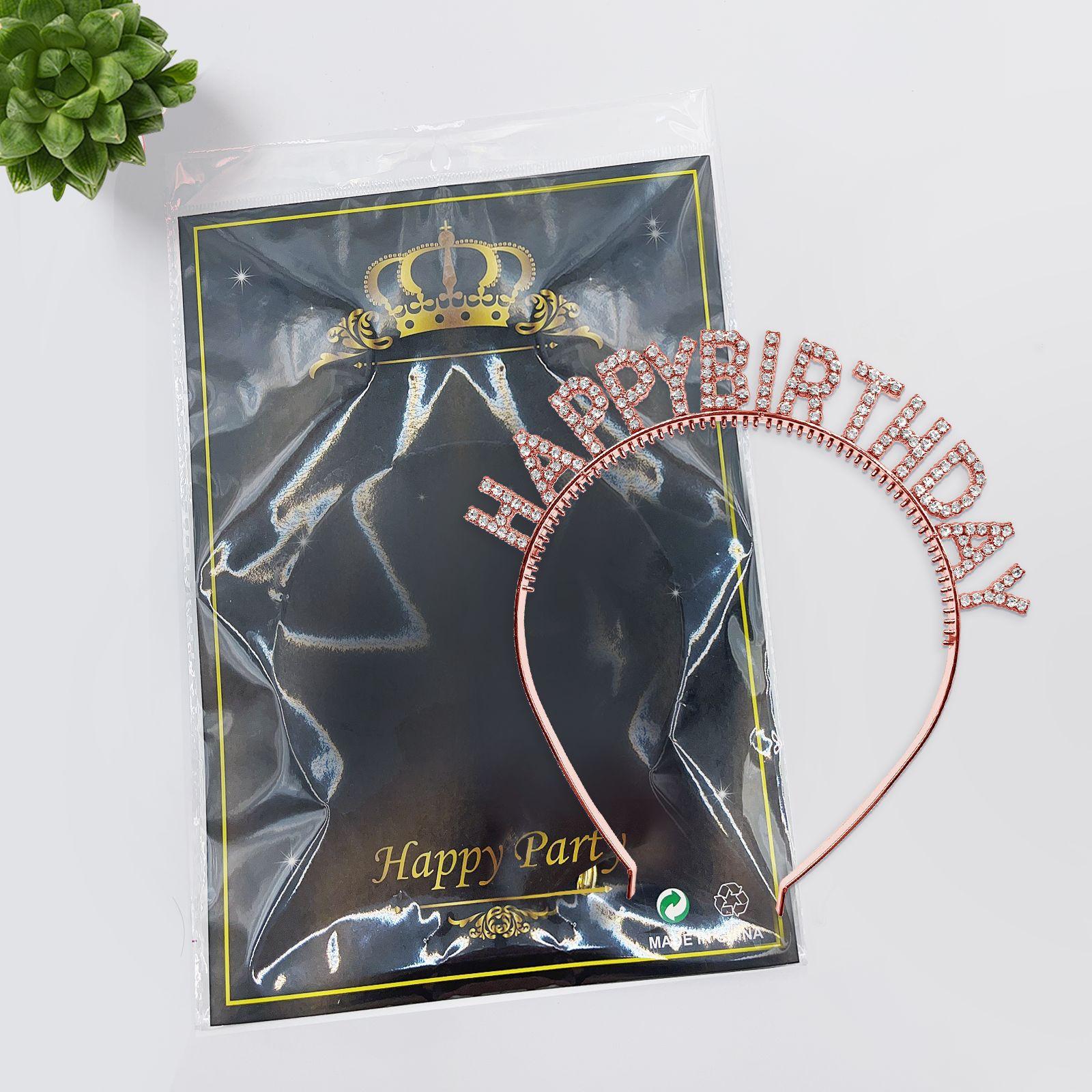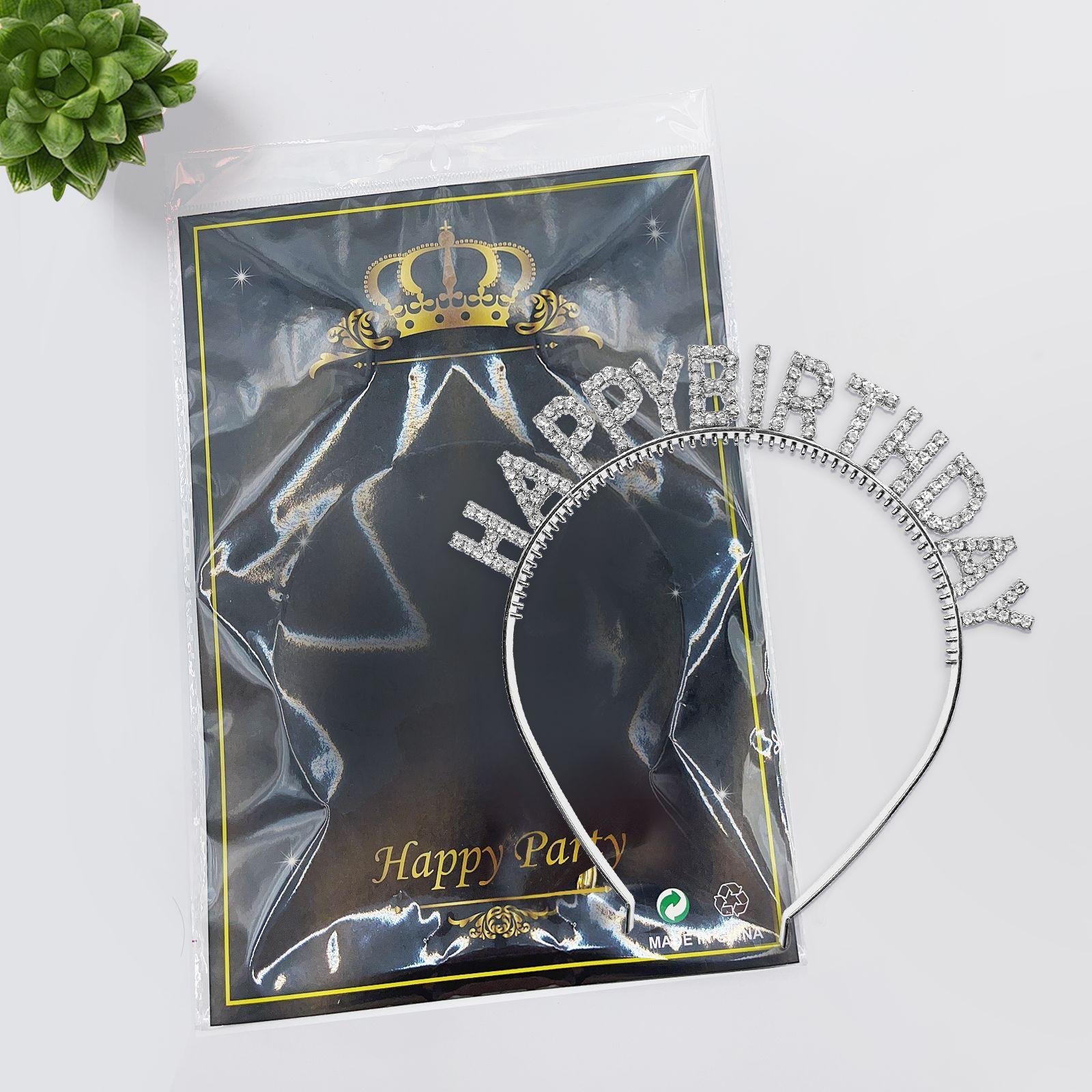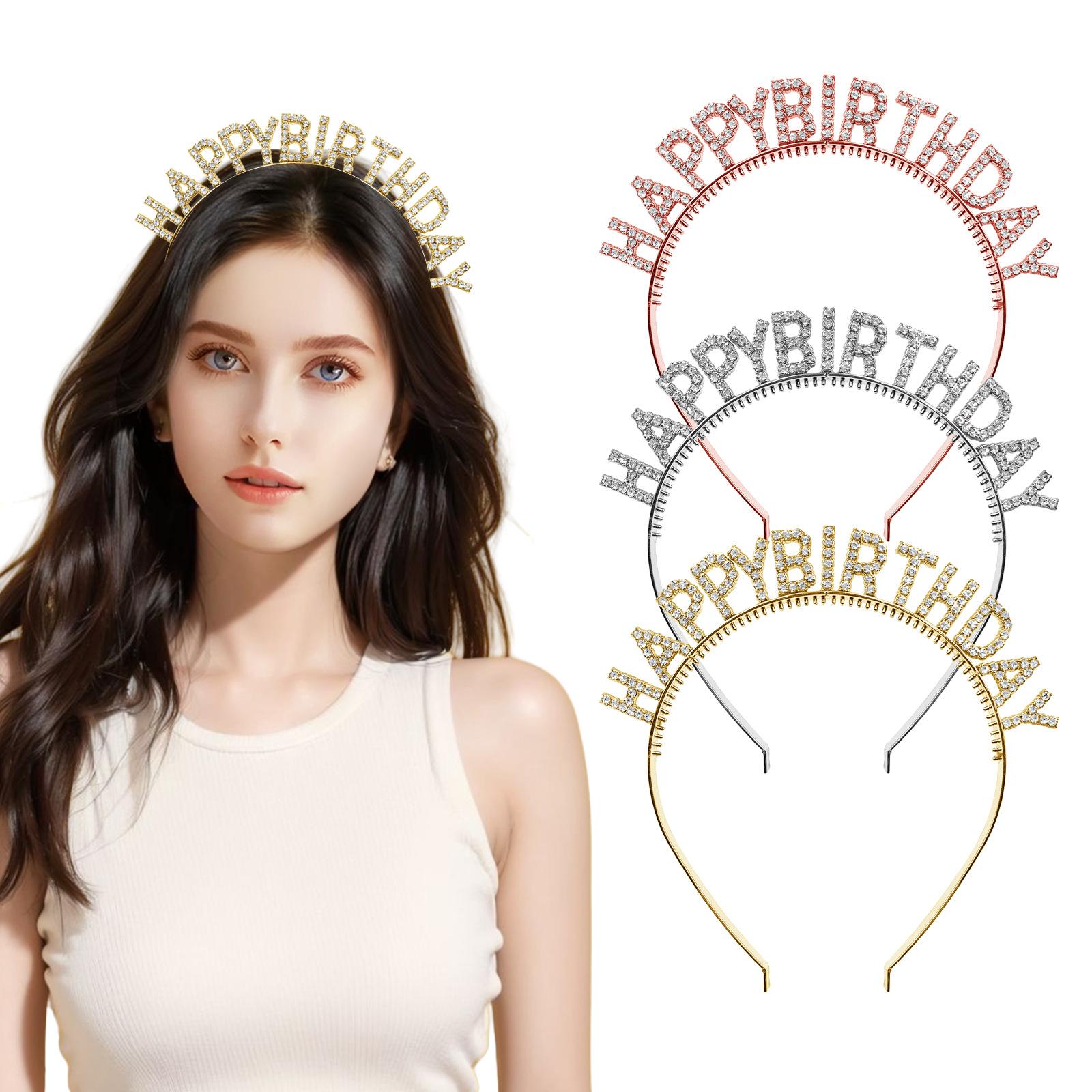 Diadema de plástico con letras de diamante y destellos de feliz cumpleaños, accesorios divertidos para el cabello de fiesta.