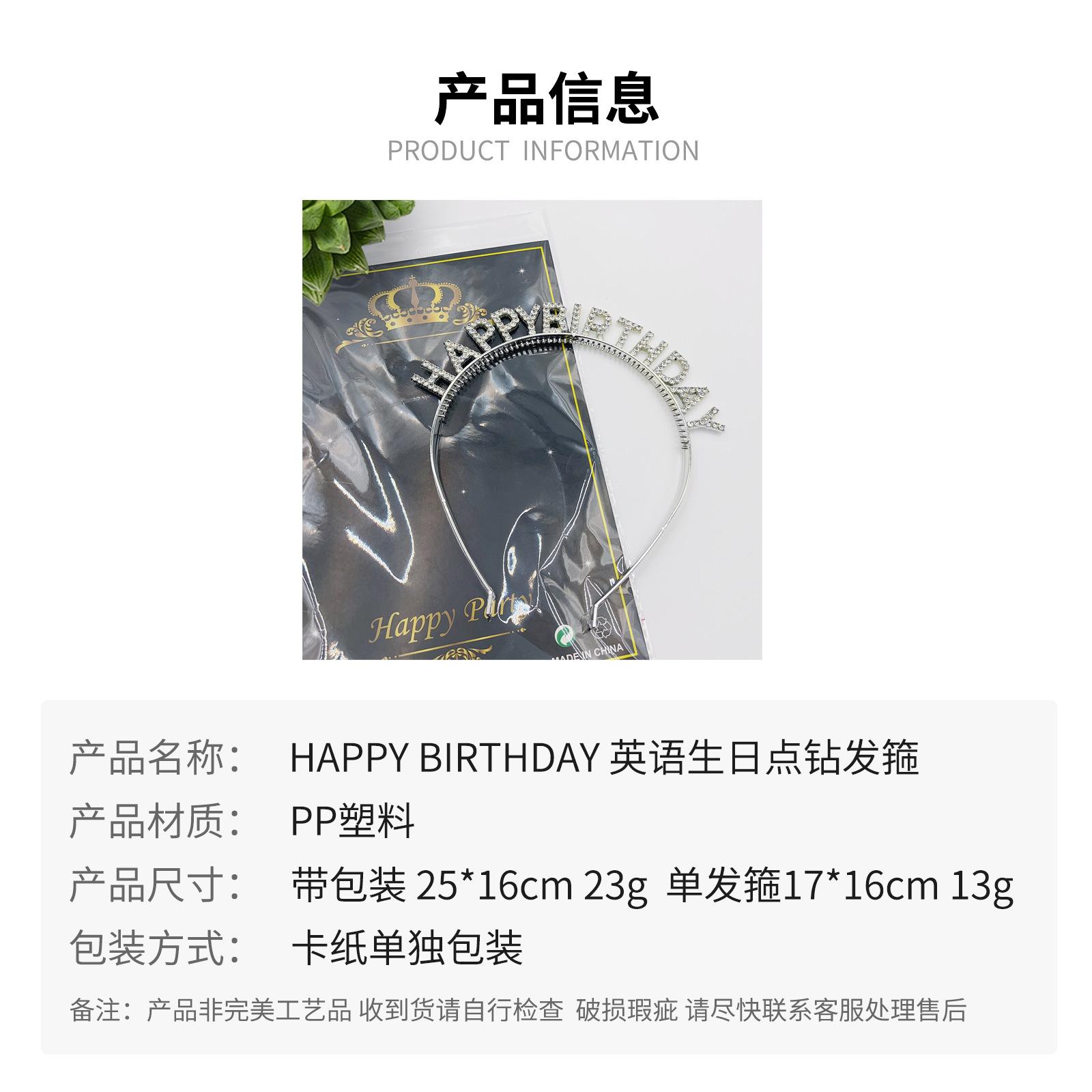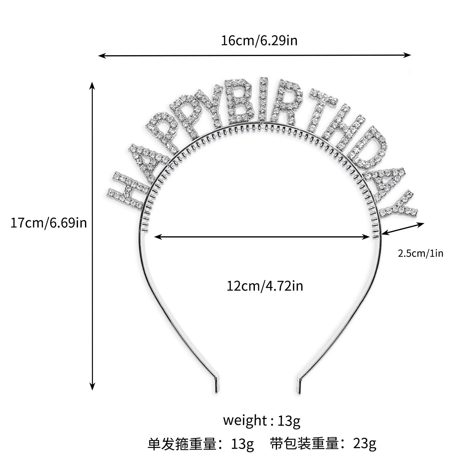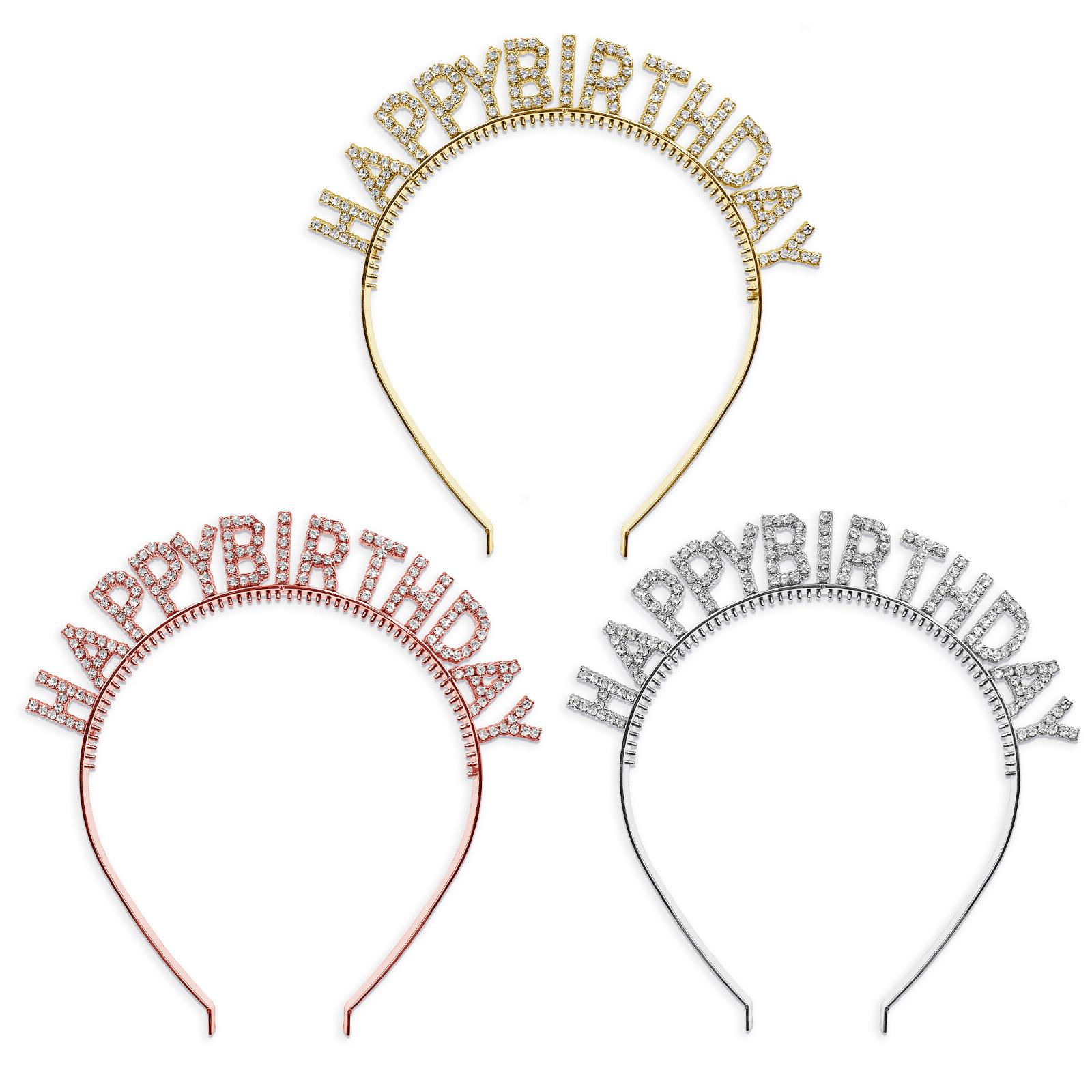 Diadema de plástico con letras de diamante y destellos de feliz cumpleaños, accesorios divertidos para el cabello de fiesta.