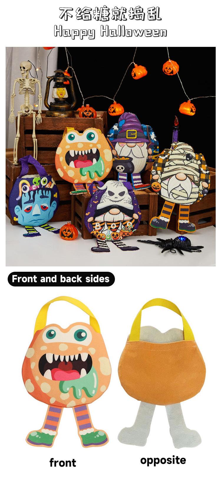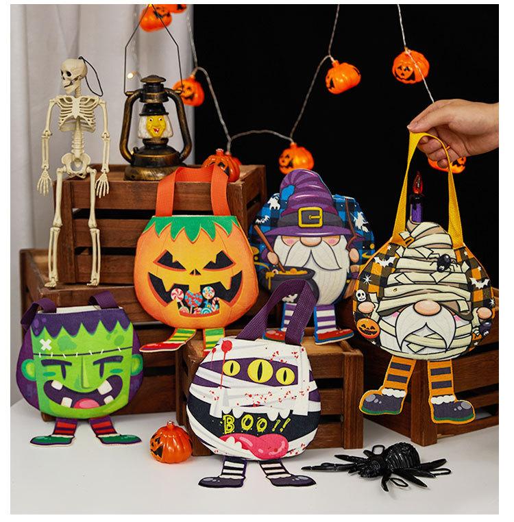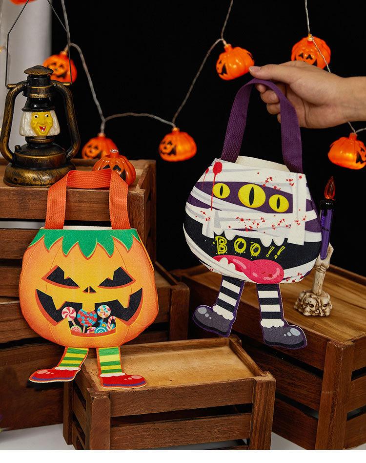 Bolsa de dulces decorativa de Halloween transfronteriza, bolsa de regalo de bocadillos de calabaza fantasma, bolsa de regalo no tejida de mano para niños