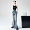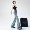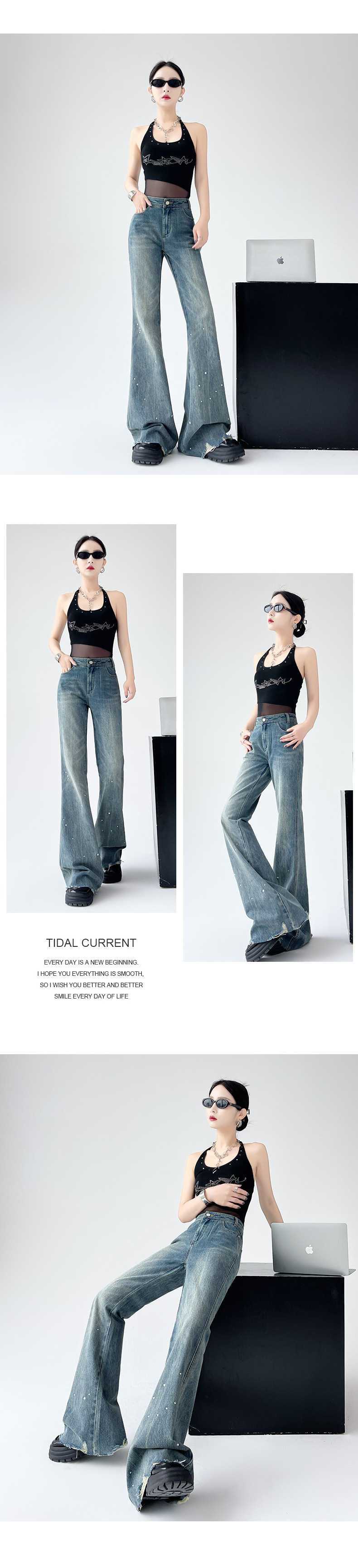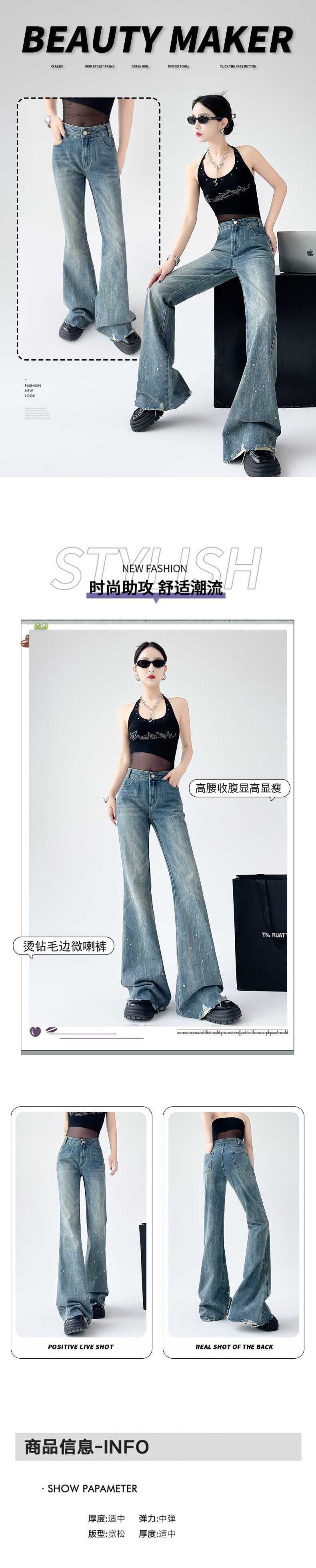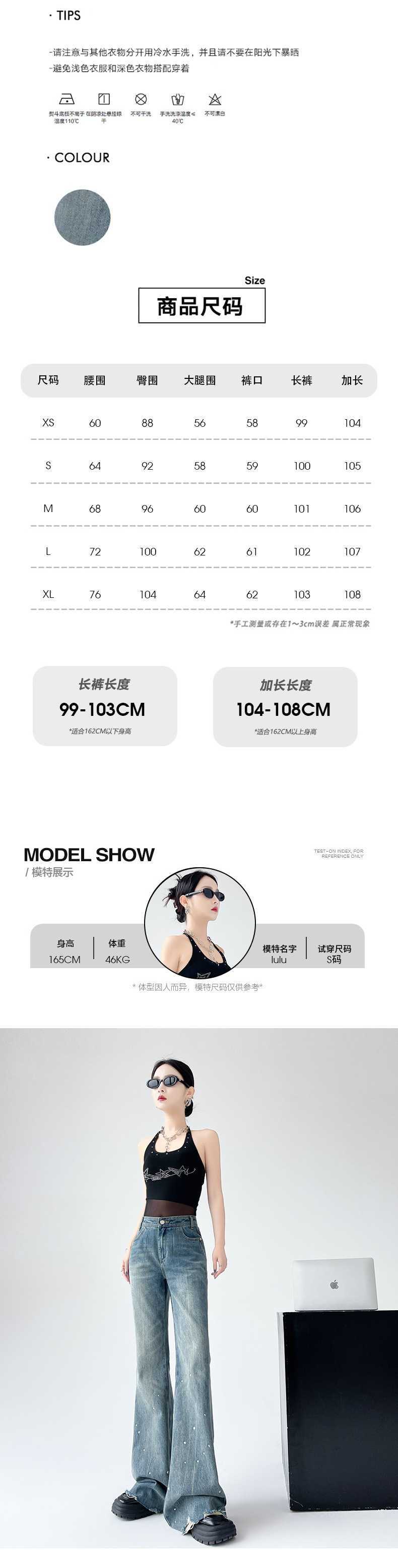 Jeans Slax Vintage de Pedrería para Mujer Pantalones Largos Holgados Adelgazantes de Pierna Ancha con Borde Deshilachado