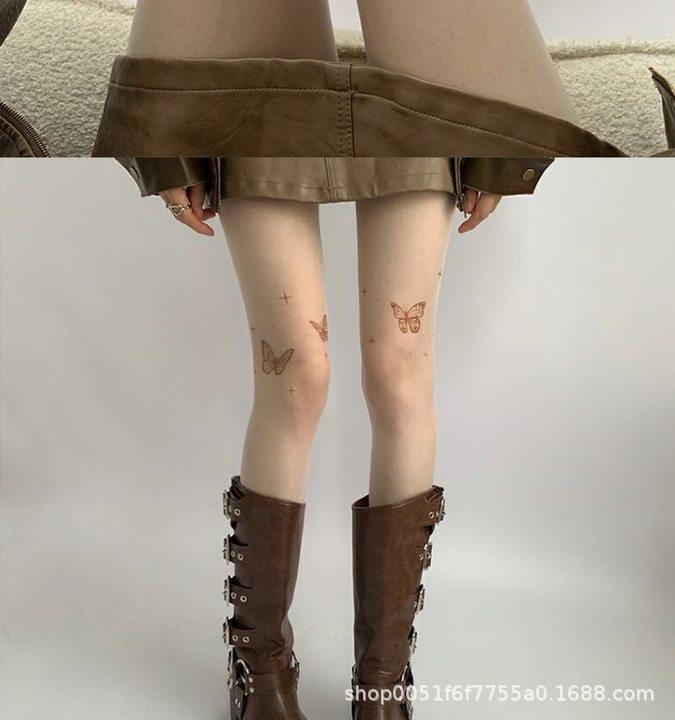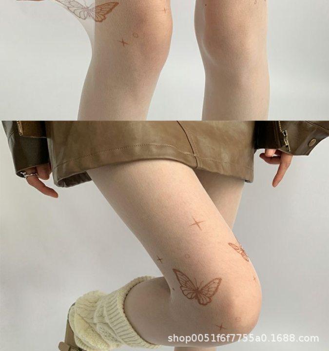 Medias blancas nuevas 2023, medias anti-gancho puras, mallas con estampado de tatuaje de mariposa para mujer, primavera y otoño