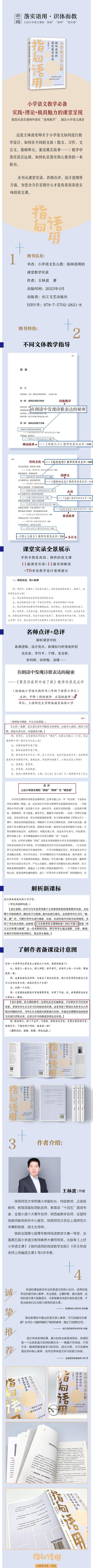 Este es un nuevo libro escrito por el Maestro Wang Linbo sobre cómo mejorar el diseño de la enseñanza para el idioma chino en las escuelas primarias, cómo implementar el uso del lenguaje en la enseñanza de diferentes géneros (ensayos, ensayos, chino clásico, unidades de estrategia, cuentos de hadas y fábulas...), y cómo implementar las competencias clave. El libro le presenta una visión completa de lo que es una clase de chino con un fuerte sabor chino, a partir de registros de aula, comentarios de profesores famosos, intenciones de diseño, etc. Recomendado para la enseñanza de chino en primaria. Registros de aula: Le enseñan cómo dar lecciones de chino eficientes y únicas paso a paso; (11 registros de aula + 11 interpretaciones de profesores famosos + más de 70 demostraciones de intenciones de diseño de enseñanza...) Comentarios de profesores famosos: Analizar la lógica de la preparación de la lección, diseñar puntos destacados y formas inteligentes de implementar los nuevos estándares curriculares; (Wu Zhonghao, Li Zhuping, Ning Feng, Long Baoxin, Yu Liming, Sun Shimei, Tang Jin...) Práctica + teoría + presentación atractiva en el aula: te enseñan a implementar la "enseñanza pragmática" en lecciones reales y a dominar la enseñanza de chino en la escuela primaria.