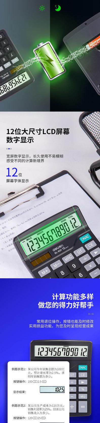 Calculadora de escritorio Deli 837, computadora de escritorio de pantalla grande, suministros de papelería de oficina, computadora de escritorio portátil