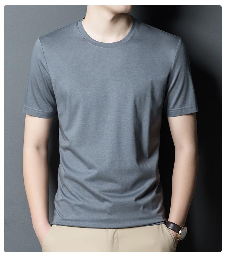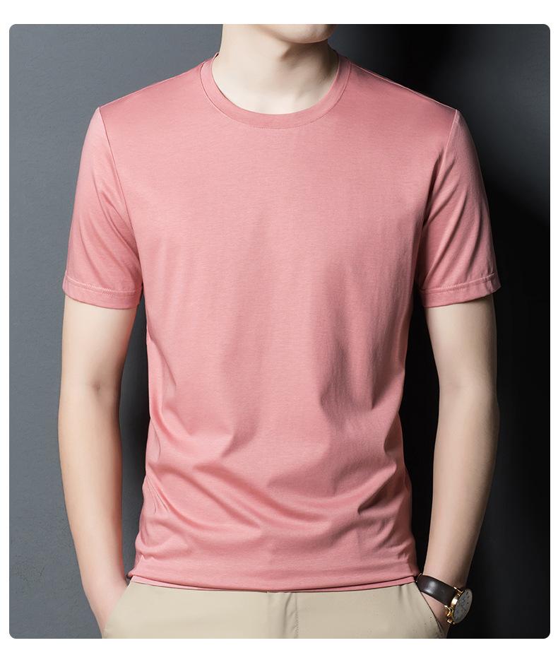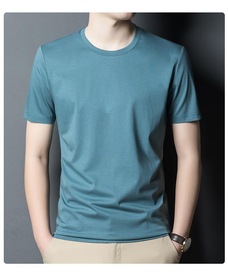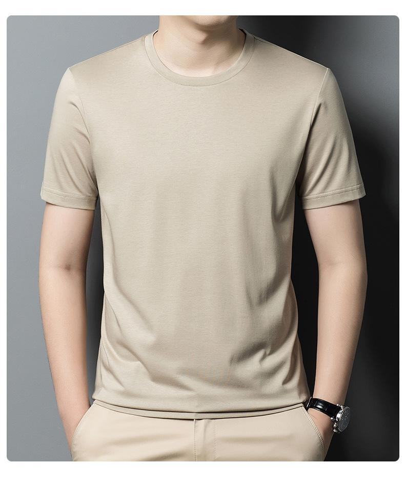 Camiseta de Manga Corta de Algodón de Fibra Larga Pesada para Hombre Verano para Hombre Color Sólido Cuello Redondo Top Suelto Versátil Camiseta Básica Ropa