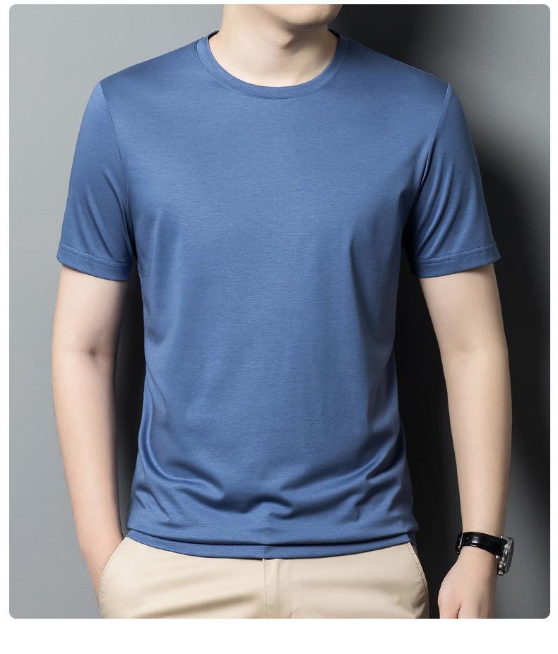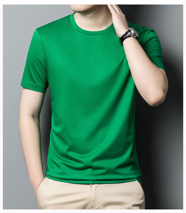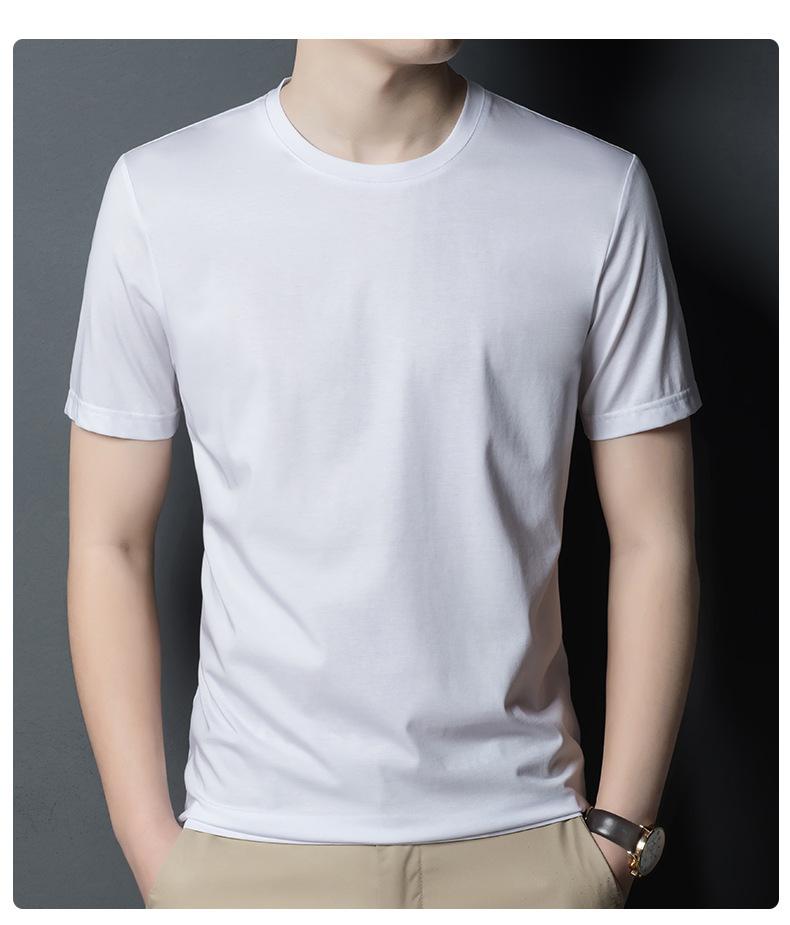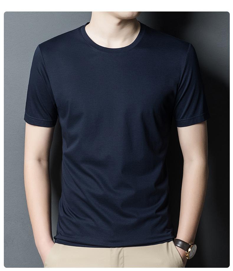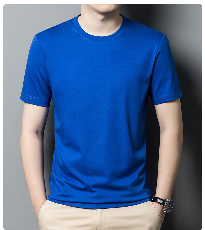 Camiseta de Manga Corta de Algodón de Fibra Larga Pesada para Hombre Verano para Hombre Color Sólido Cuello Redondo Top Suelto Versátil Camiseta Básica Ropa