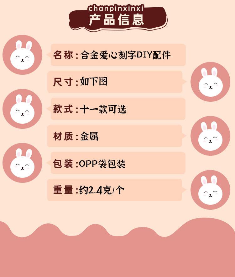 Accesorios de joyería DIY, pintura en aerosol de doble cara, letras de aleación, amor, colgante de joyería hecho a mano, colgante de aleación al por mayor
