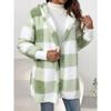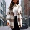 Suéter de comercio exterior de moda para mujer, cárdigan holgado de felpa a cuadros con colores a juego, abrigo europeo y americano de Amazon transfronterizo de 2024